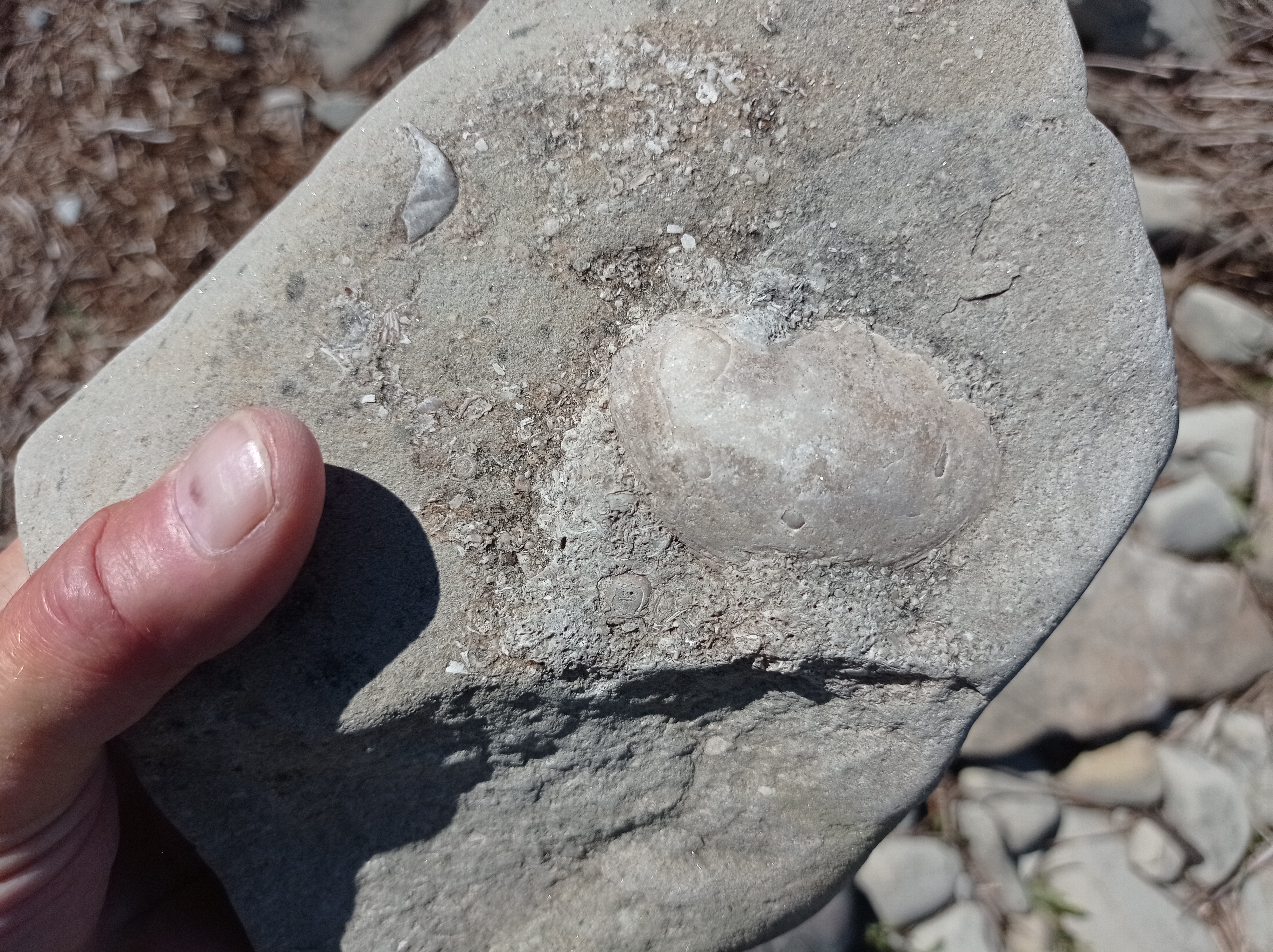 De zgn. Burgsvikformatie is één van de jongste afzettingen van Gotland, heeft een totale dikte van wel 50 meter en is alleen aan deze smalle kuststrook bij Kettelvik goed ontsloten. Mooi zijn hier de zandsteenlagen te zien; gelijkmatig afgezet onder rustige omstandigheden. Er zijn hier fossiele visresten, fossielen van kwallen en zeesterren en zelfs van (zeer vroege) landplanten gevonden (https://www.cbc.ca/news/science/oldest- ... -1.3474248), maar die waren voor ons niet weggelegd. Wel is het gelukt om in het losse materiaal van de iets jongere Burgsvik-ooliet de schelp Pteronitella te vinden en levenssporen, mogelijk van grondelende vissen en dat is toch ook leuk.