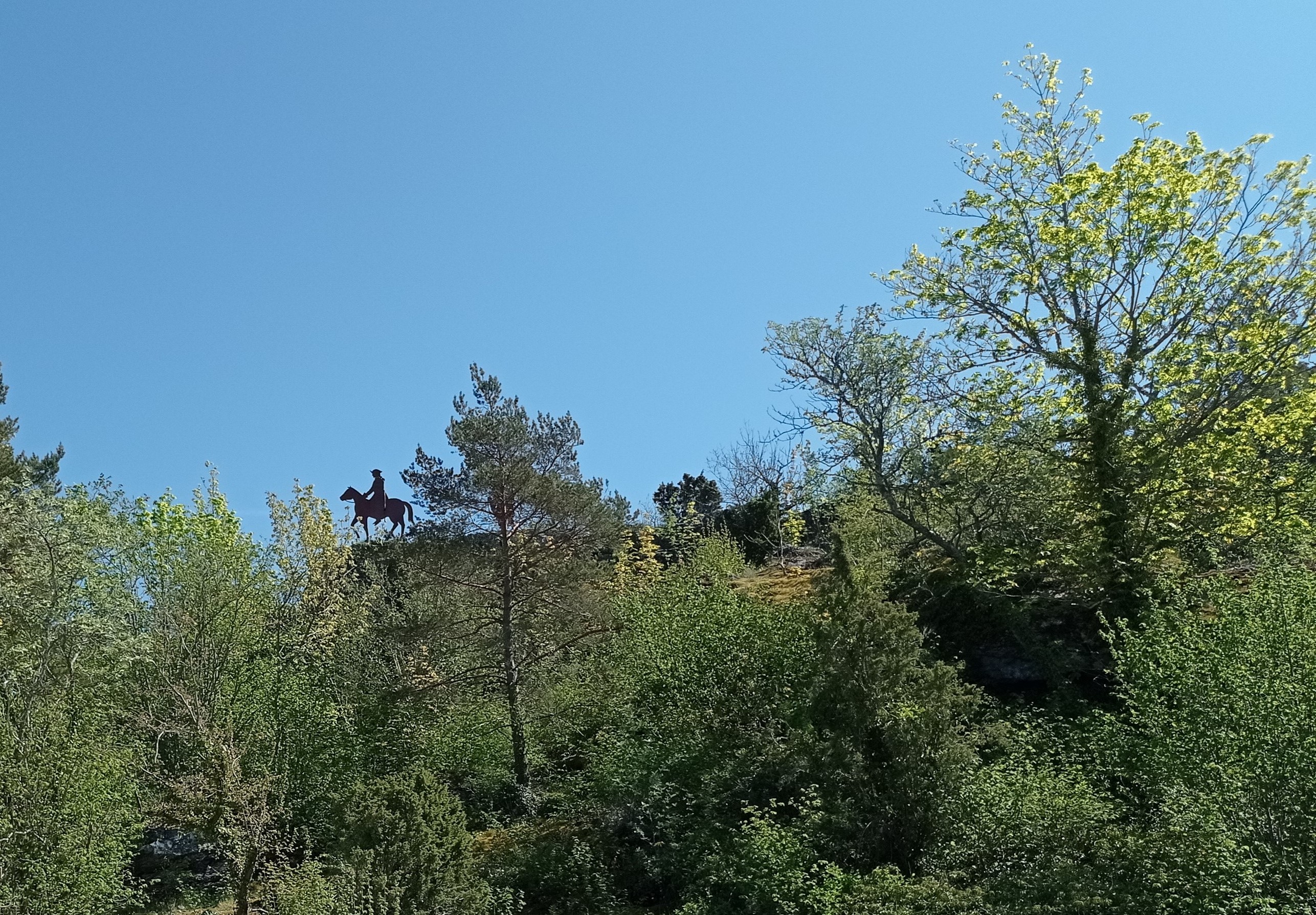 Op de terugweg wilden we nog langs een oude groeve bij Östergarn. Deze misten we in eerste instantie omdat we waren afgeleid door het schitterende kerkje. Bij het keren van de auto zag ik in de spiegel plotseling een figuur te paard bovenop de heuvel