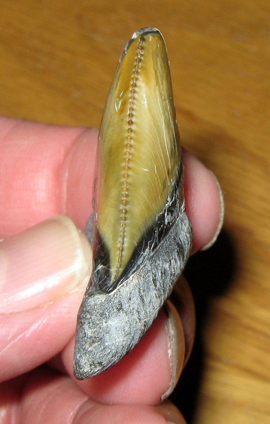 Dat is indd een erg mooie en apparte meg tand! Hij ziet er indd ook wel erg vol uit, mss heeft hij net een aantal vliegen op gegeten:).