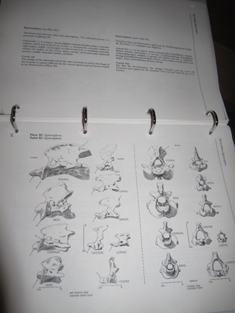 Qua wervels wordt er niet erg veel afgebeeld. Zie foto's onder dit bericht (ik kon ze hier niet aan toevoegen.. Wel atlas en draaier worden goed afgebeeld. Ik zou dit boek zeker kunnen aanraden! Er staat vanalles in ursus, canis, homo, lepus, castor, equus, ovis, etc. haha. (ik heb nog even 2 extra foto's toegevoegd van ulna en femur.)