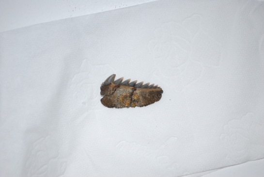 gisteren heb ik mijn eerste gave onderkaakse Hexanchus gevonden, het is te zeggen, in drie stukken. Hij is namelijk kapot gestekt door mijn schop
