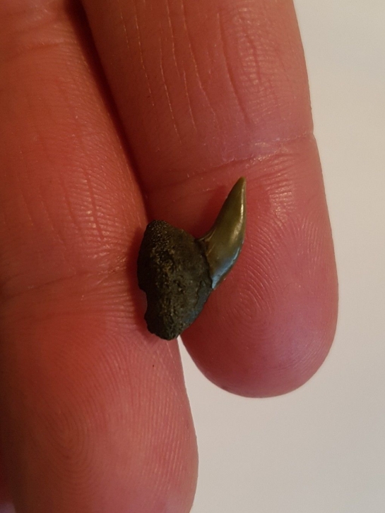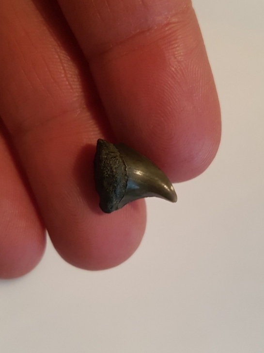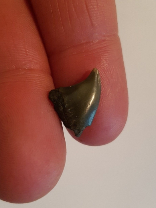 Deze tanden heb ik vandaag en gister in Antwerpen gevonden en wil graag hulp bij het determineren. Is de eerste een bovenkaakse Notorynchus (foto 1 en 2)? Foto 3, 4 en 5 heb ik nog niet eerder gezien. Een Alopias als ik zoek tussen de determinatie op het forum? Beide tanden zijn rond de 8 mm hoog en breed. Op de laatste foto nog een grappige pathologische tand.