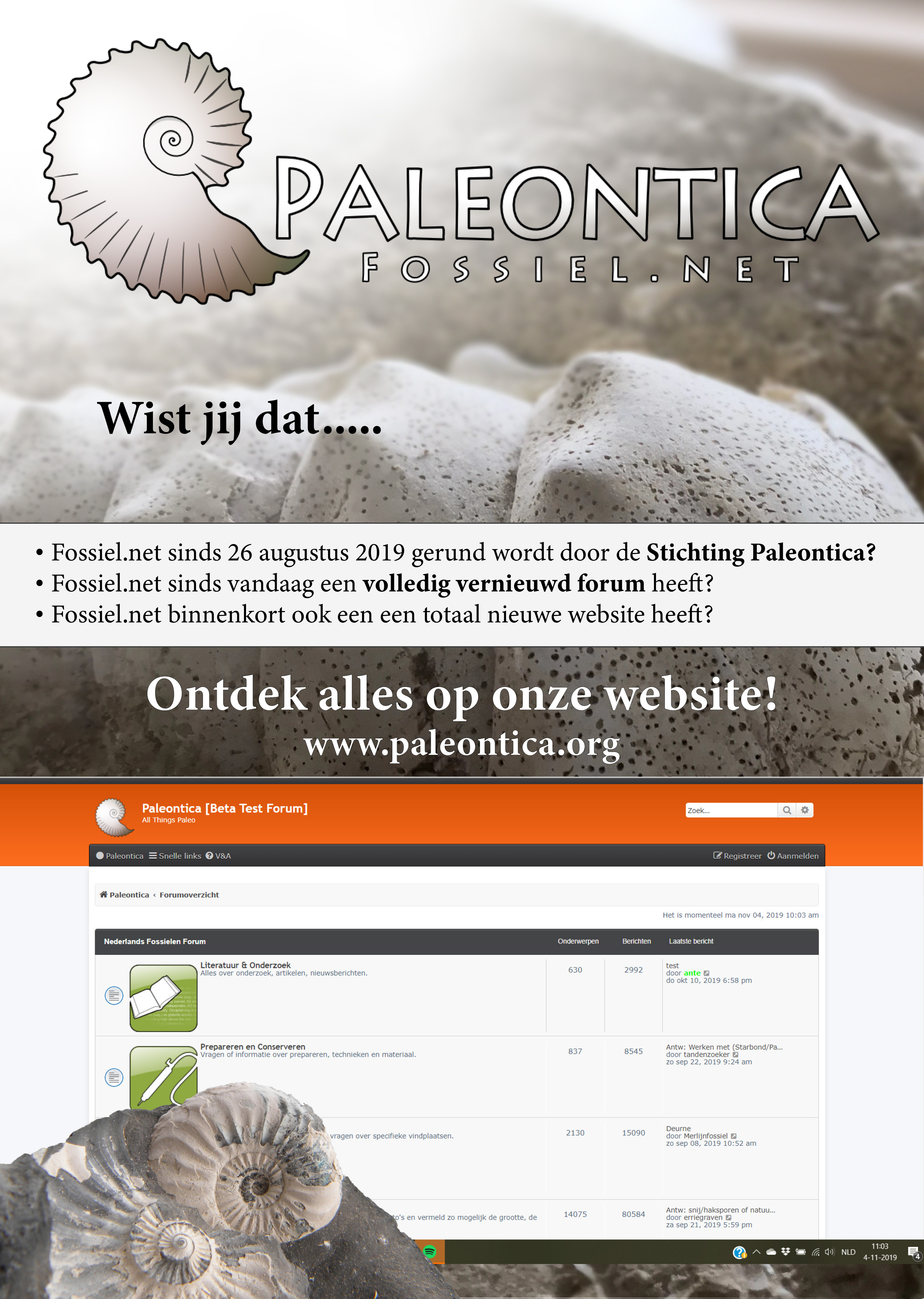 Carboon schreef: 07 nov 2019, 21:22 Ziet er niet verkeerd uit! Gefeliciteerd! Ben benieuwd naar wat jullie met de rest van de website gaan doen. De vindplaatsen- en fossielendatabases overzetten zal geen kleinigheidje zijn! Gaat het voor gebruikers tezijnertijd ook (weer) mogelijk zijn om hun bijdrages aan deze databases te beheren? Die koppeling lijkt bij de overzetting van het forumonderdeel verloren te zijn gegaan...