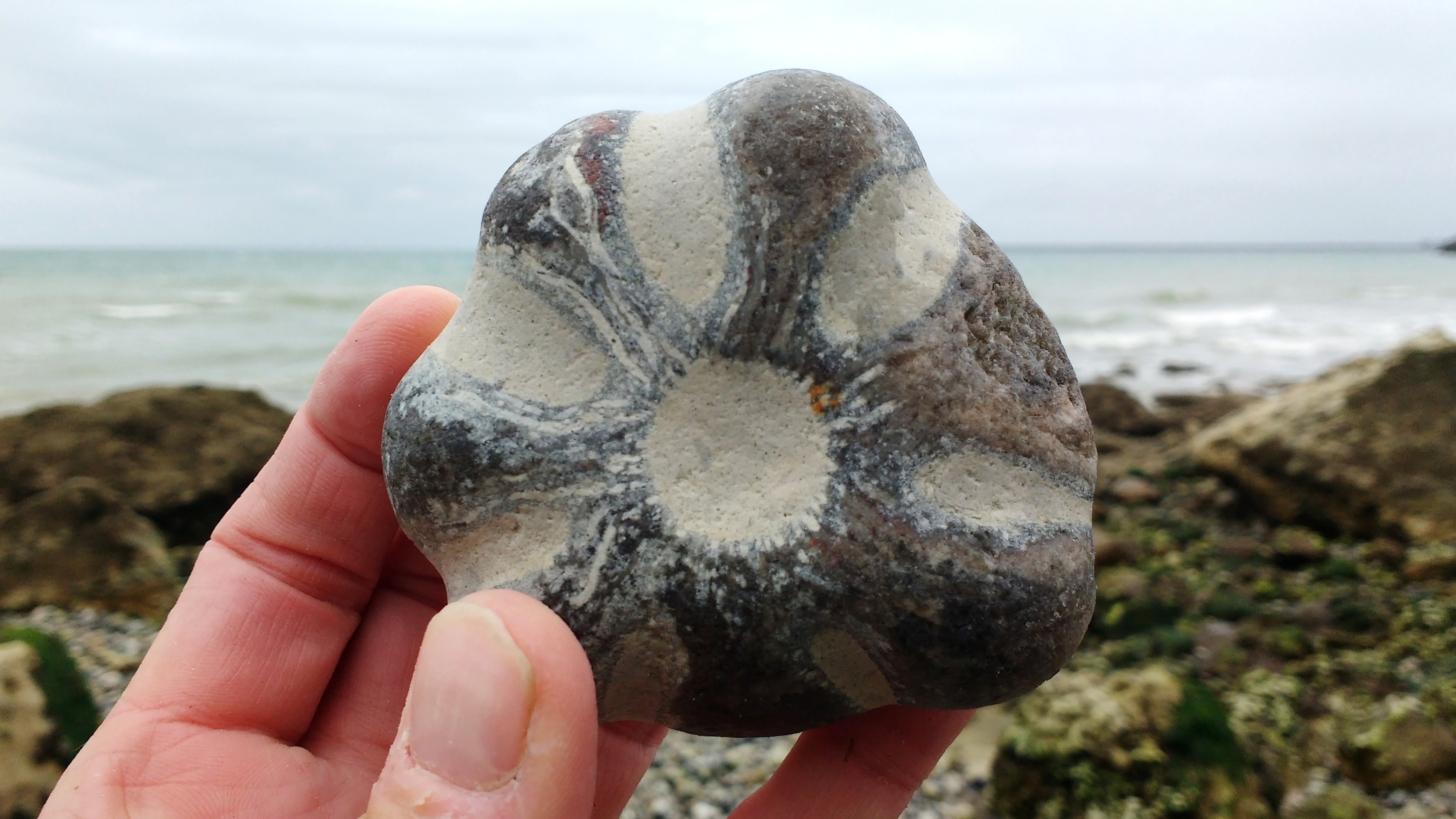 Desondanks ook fijne momenten beleefd, zoals 2x kamperen aan de Franse kust met daarbij de voor mijzelf mooiste vondst van 2019....een Hallirhoa costata uit het Cenomaan van de Normandische kust.
