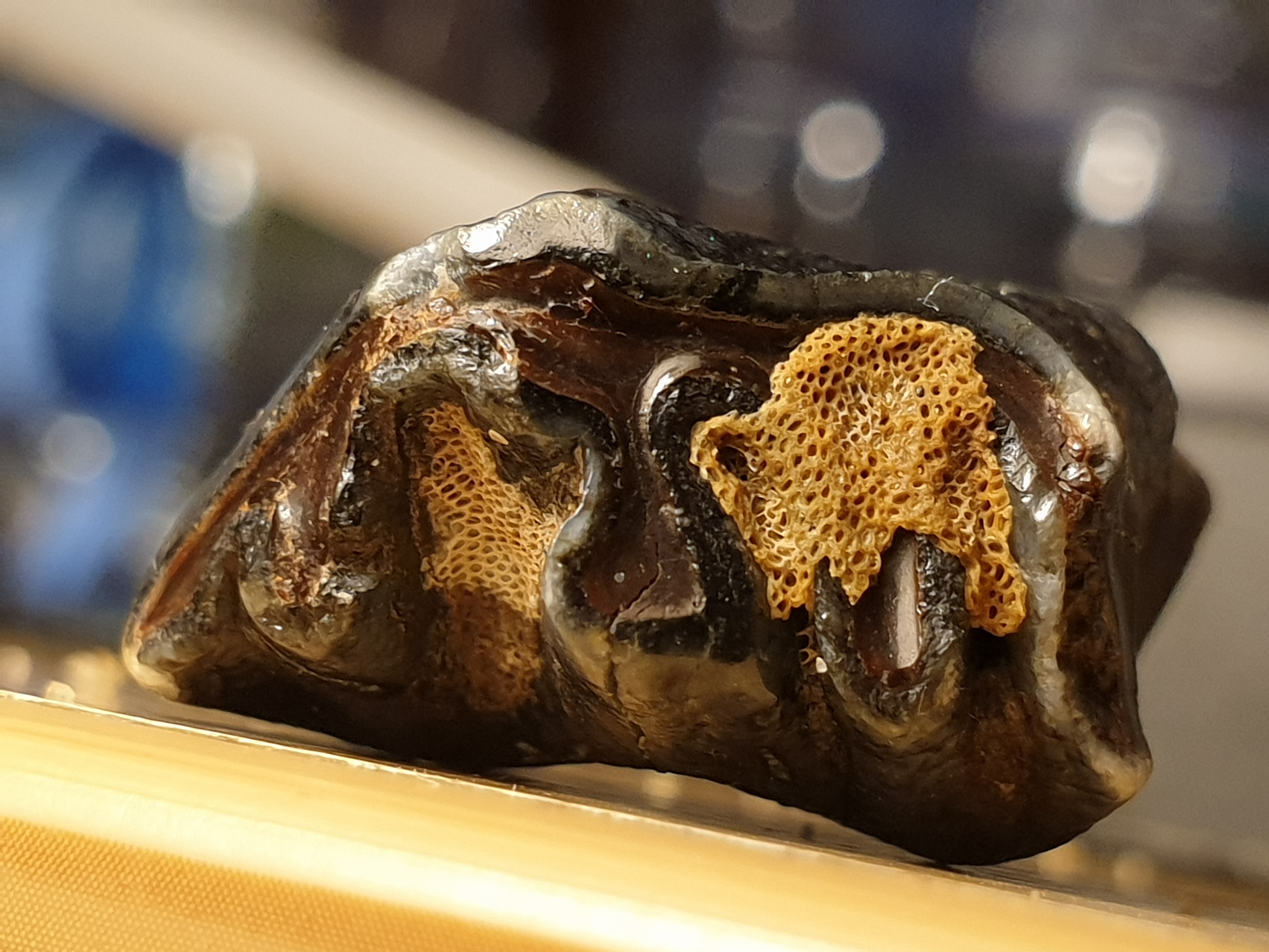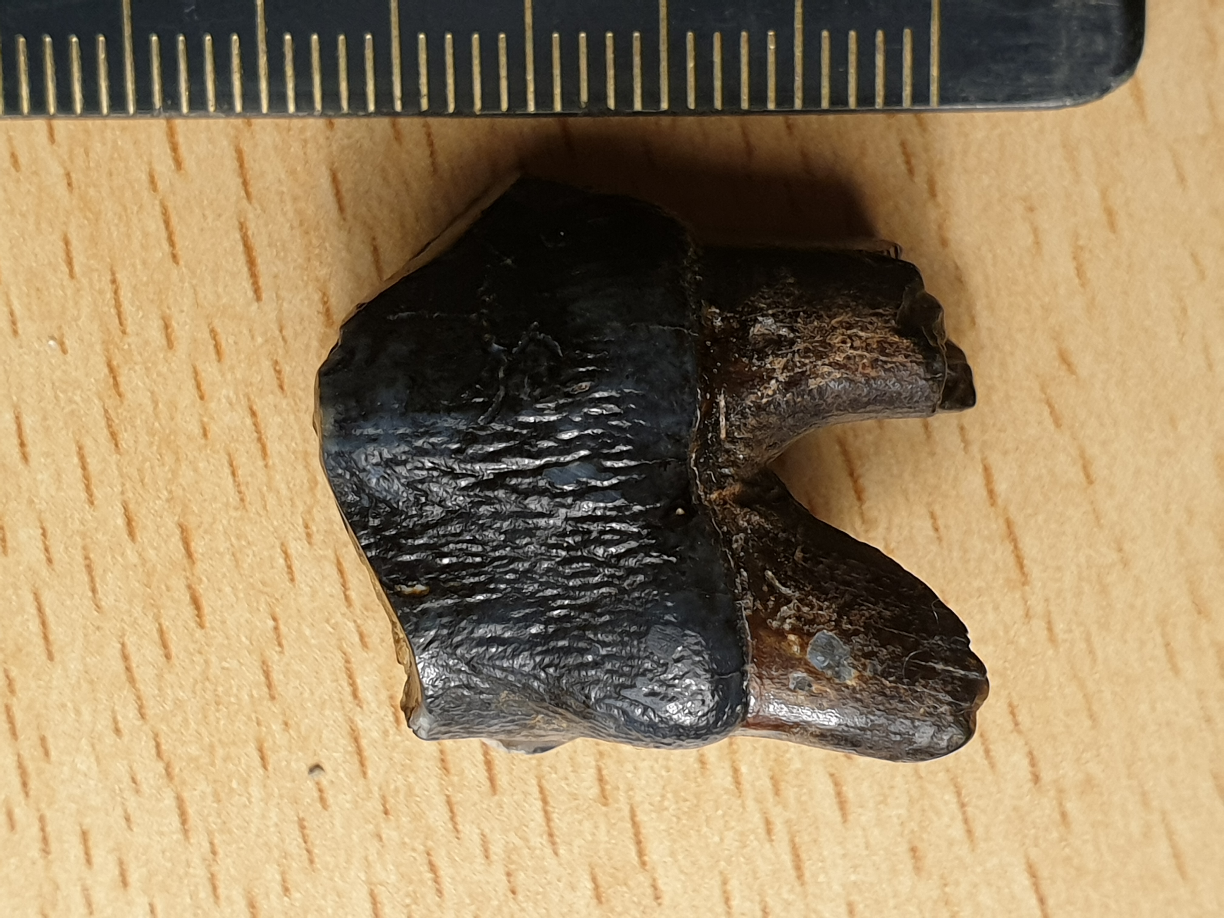 Eerste indruk is premolaar van hert of rund, onderkaak. Moet wel uit te komen zijn.