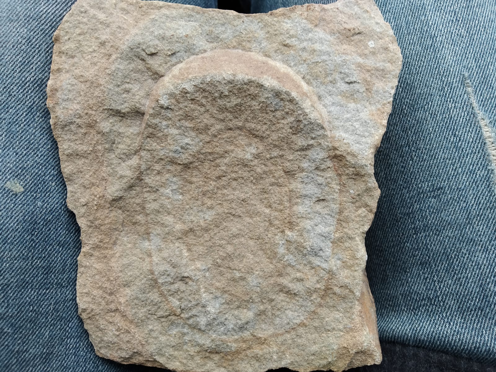 Het lijkt me een zandsteen met infiltratie-ringen van ijzeroxide.