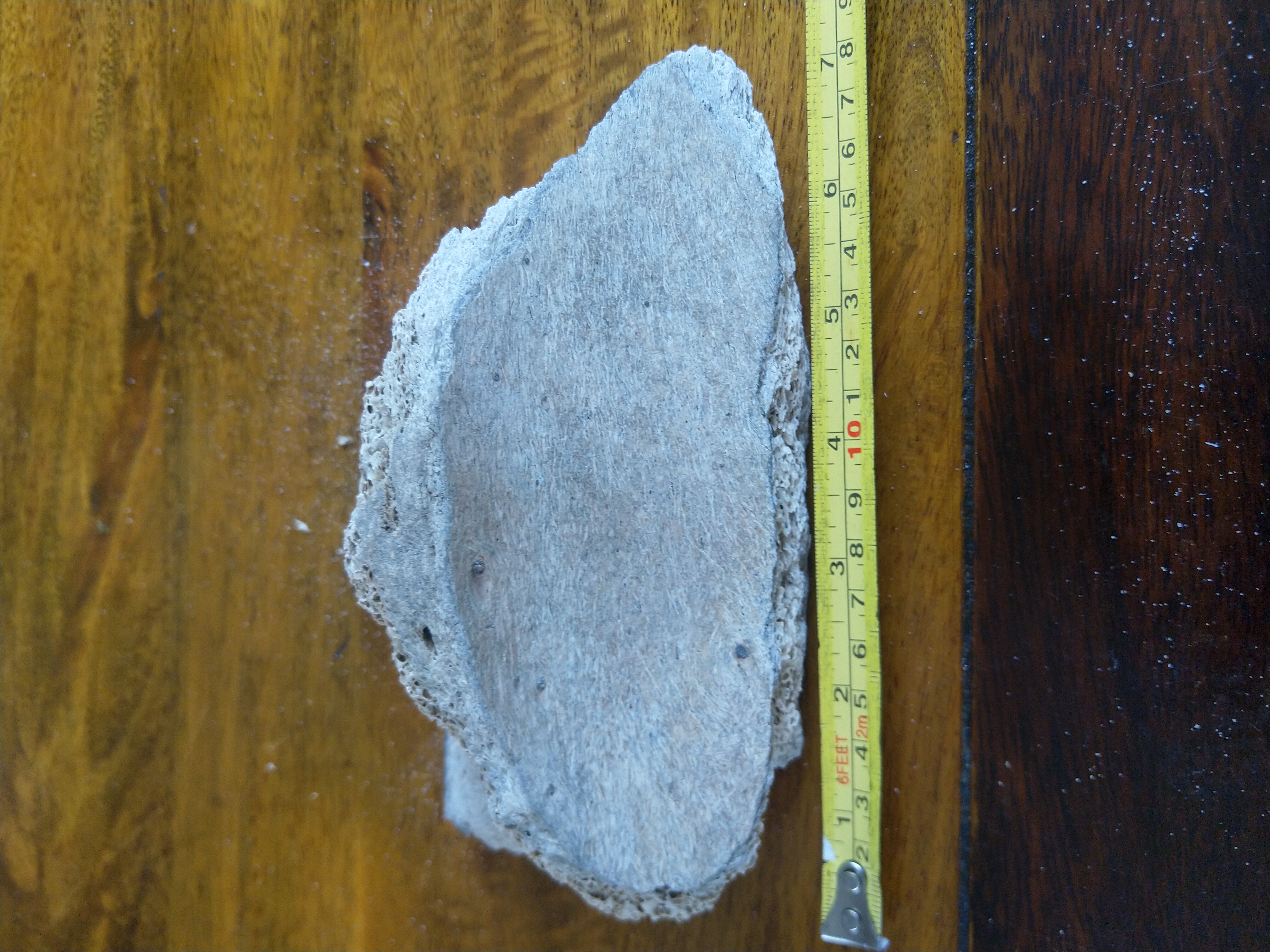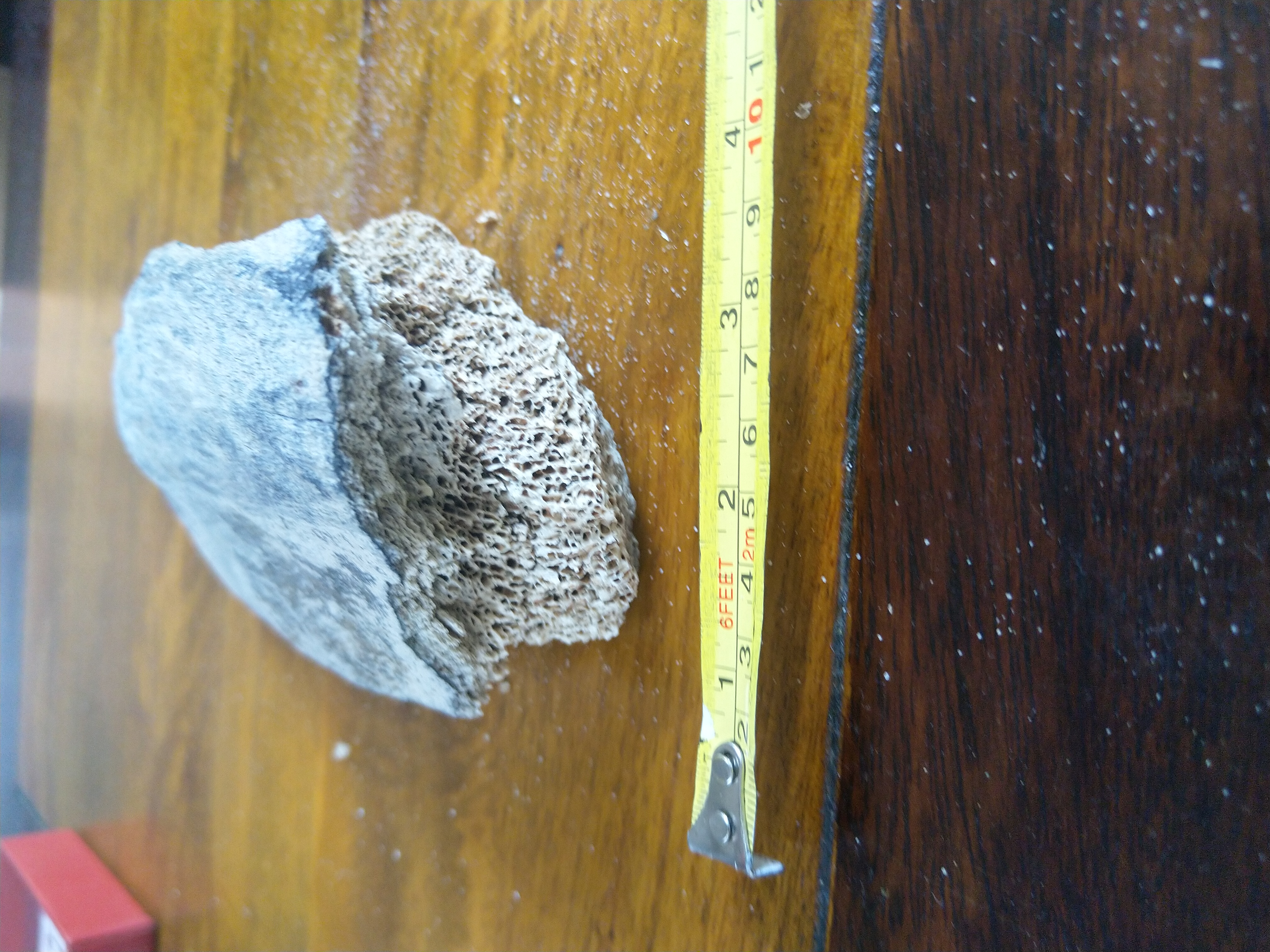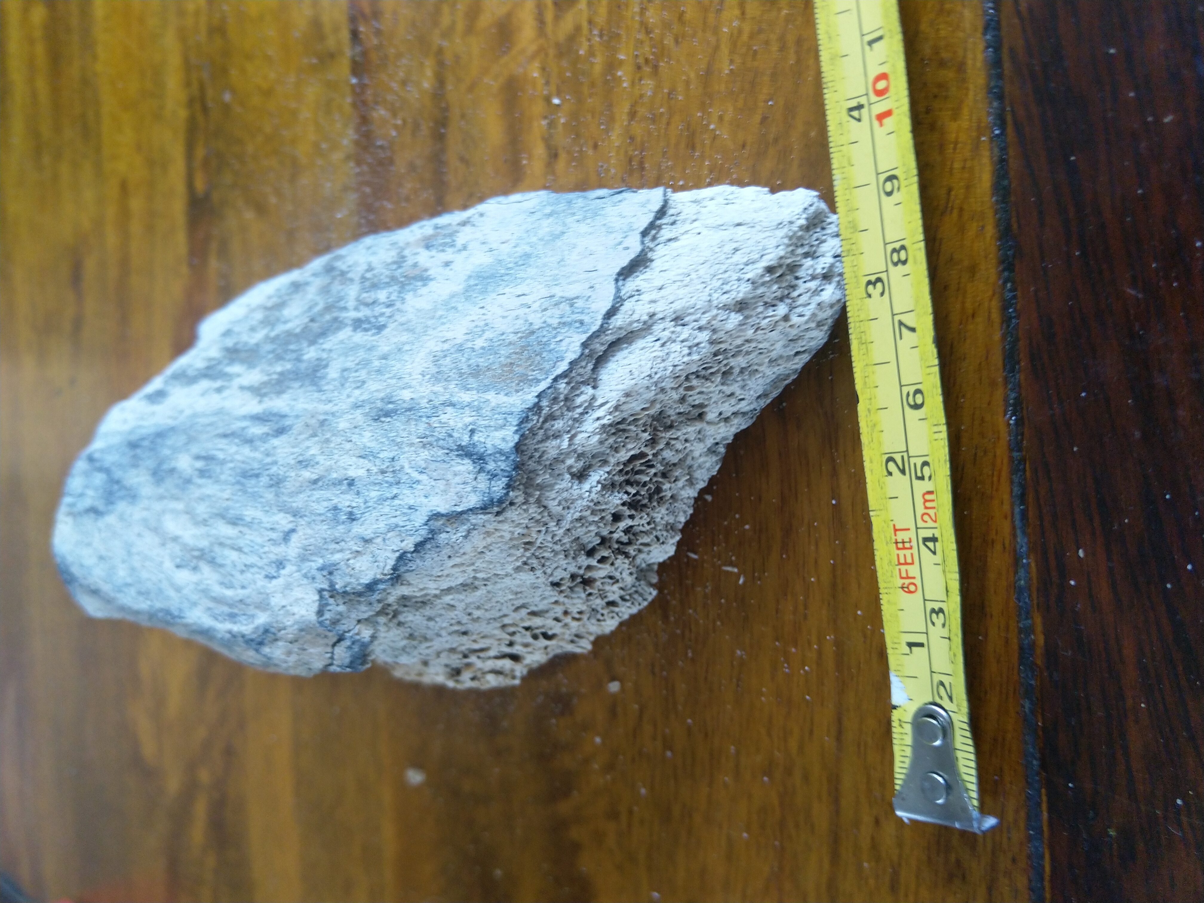 Dit soort fragmenten is een beetje gokwerk. Mijn beste gok is dat het een stukje mammoetkaak is. Dit ivm bolling en dikte.