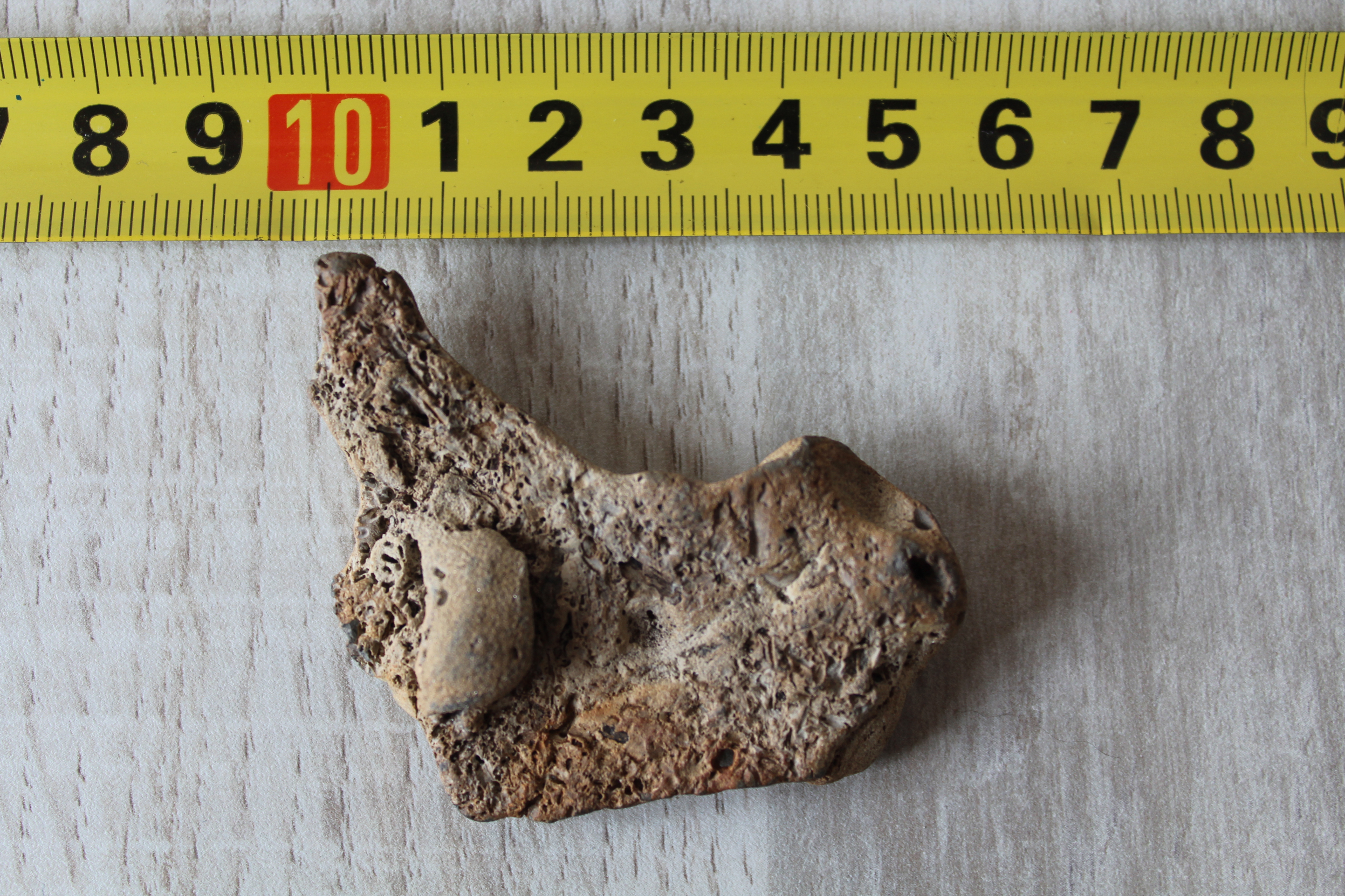 Het lijkt mij organisch van oorsprong met een botstructuur. Aan de binnenkant zit wel een vreemd "lobje" (zie foto 5).