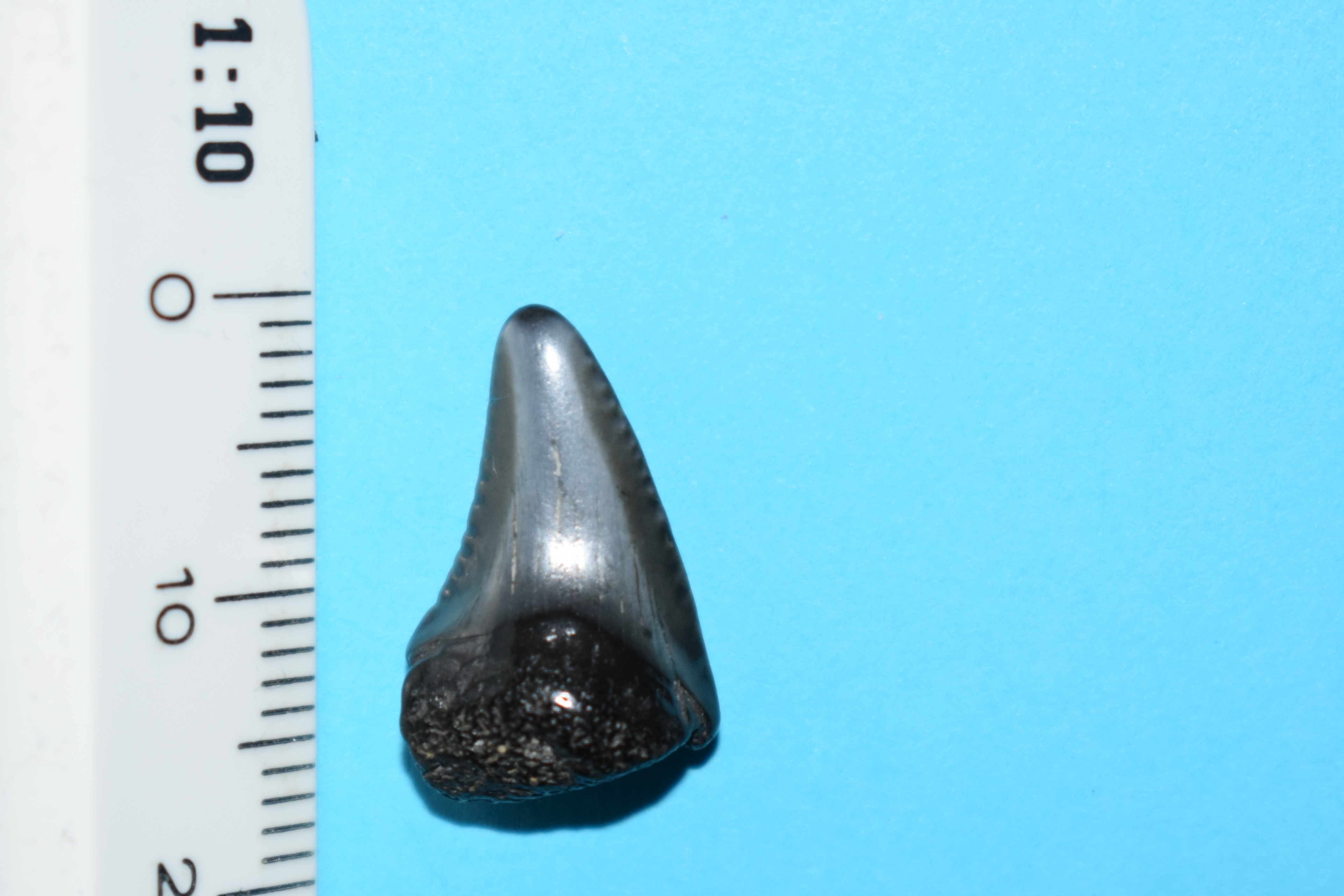 Bedankt voor jullie hulp. Ik had het stiekem gehoopt dat een determinatie mogelijk zou zijn. Dus onder voorbehoud een tand van een Otodus auriculatus. Wat wel zeker is: de tand is zwaar gerold en de wortel is zoek. Maar ik vind hem daarom niet minder mooi.