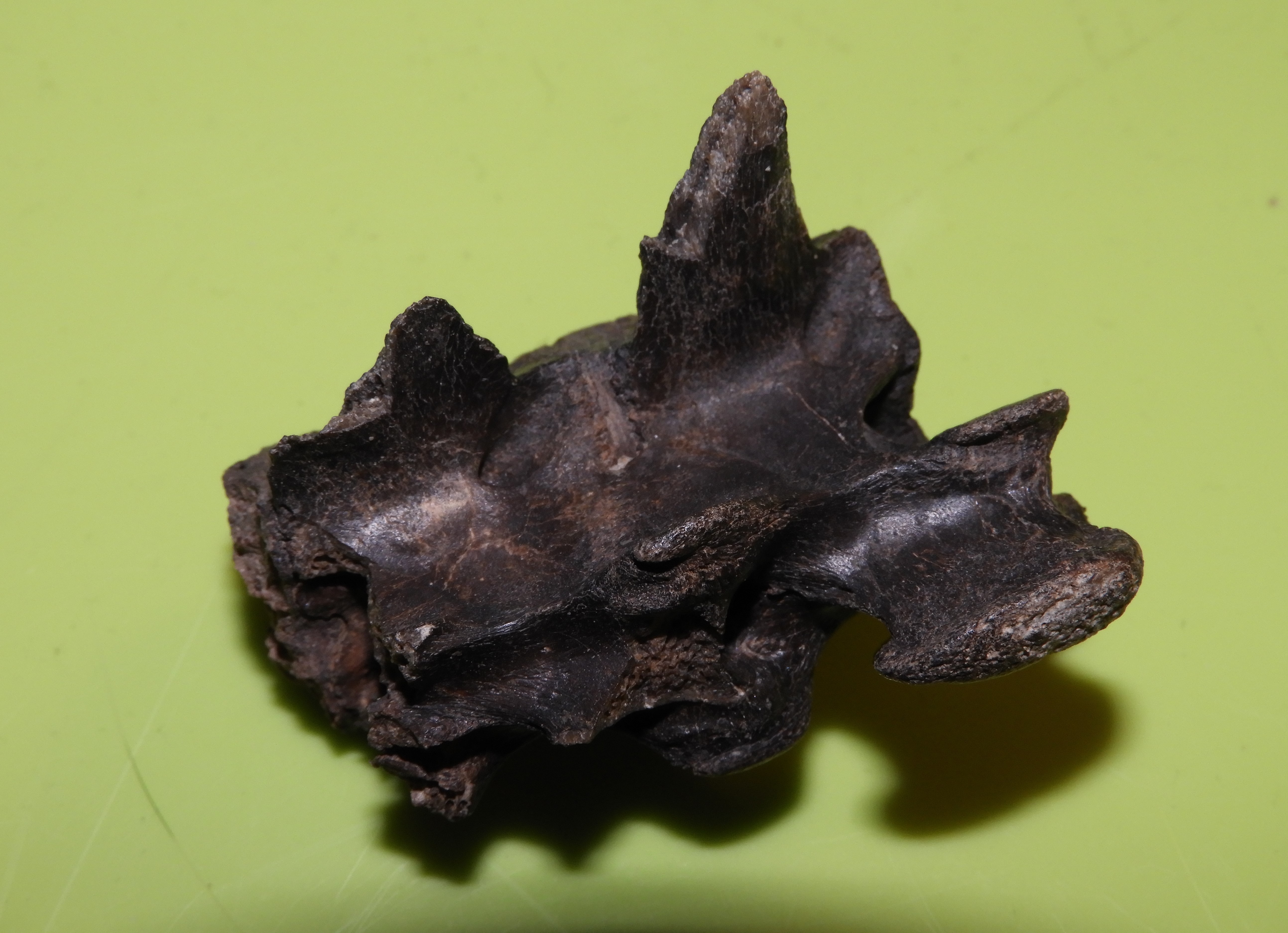 Het lijkt mij een soort werveltje te zijn. Zou het van een zeehond kunnen zijn? Ik heb werkelijk geen idee wat het is.