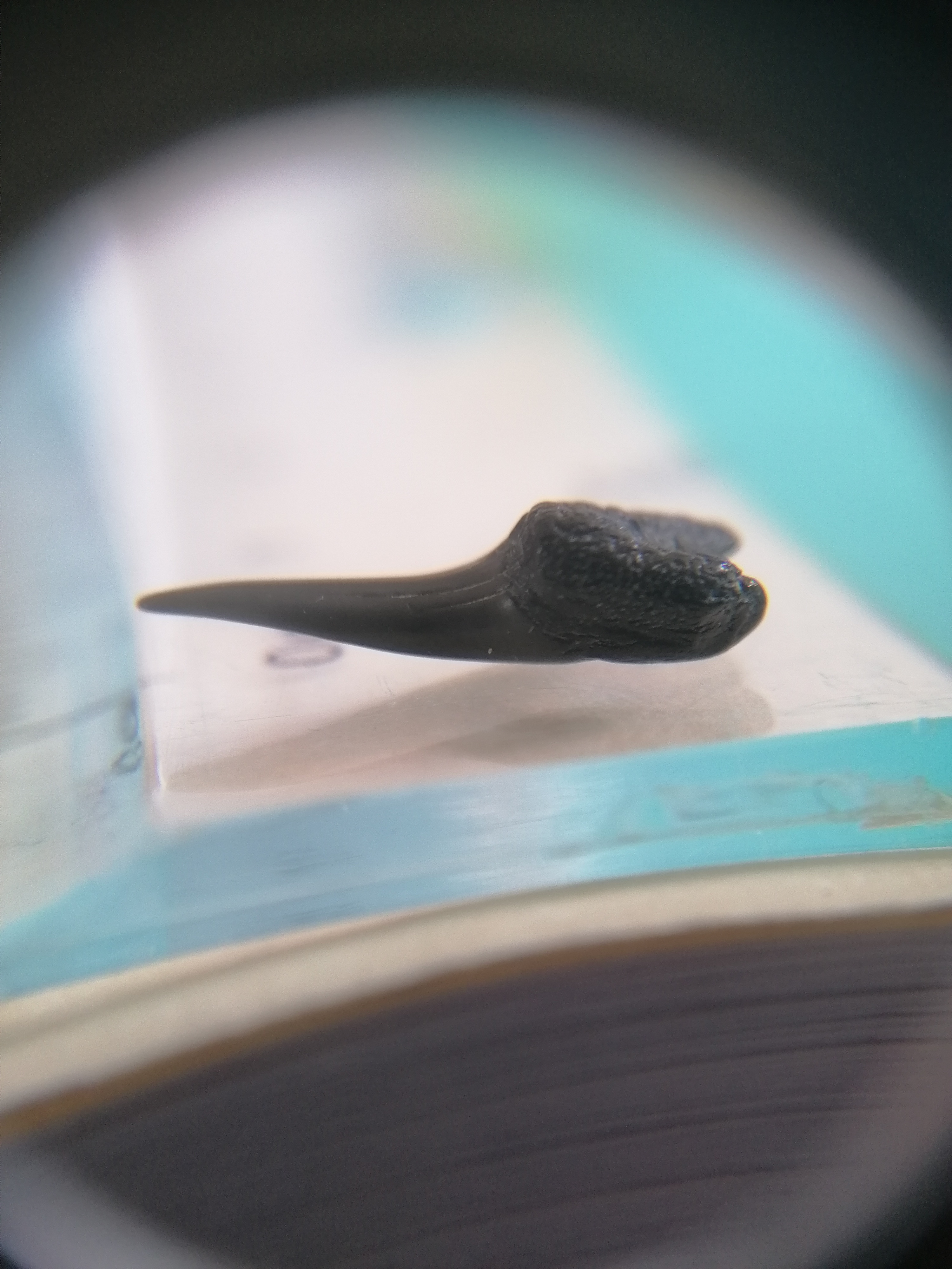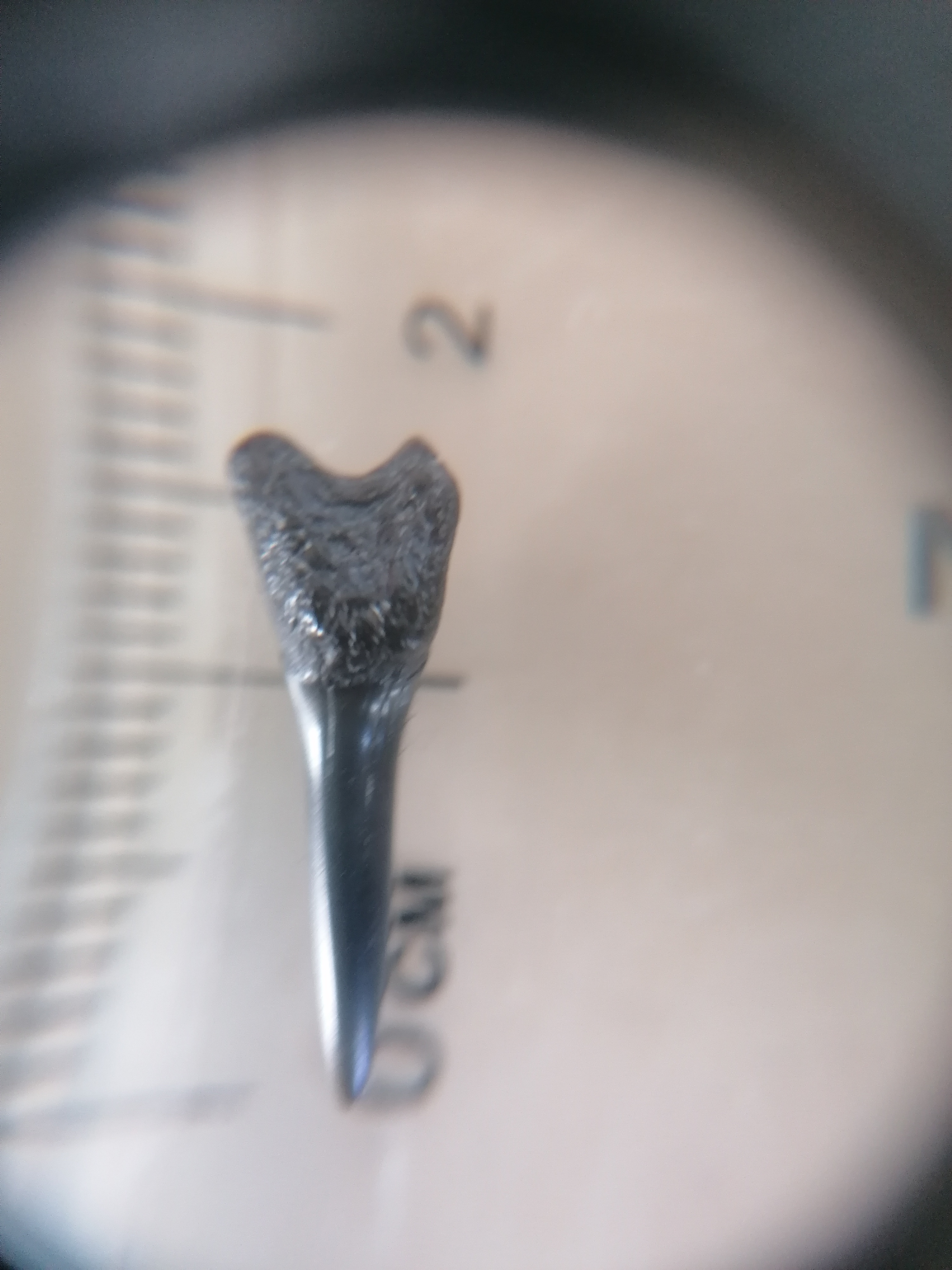 Deze haaientand vondt ik 2-1-2020 op de kaloot, ik kan hem alleen niet plaatsen. Hij heeft een rare vorm lijkt bijna wel een pathologie. Mijn beste gok is een odontaspid, maar weet het niet zeker. Dus als iemand het weet hoor ik het graag.