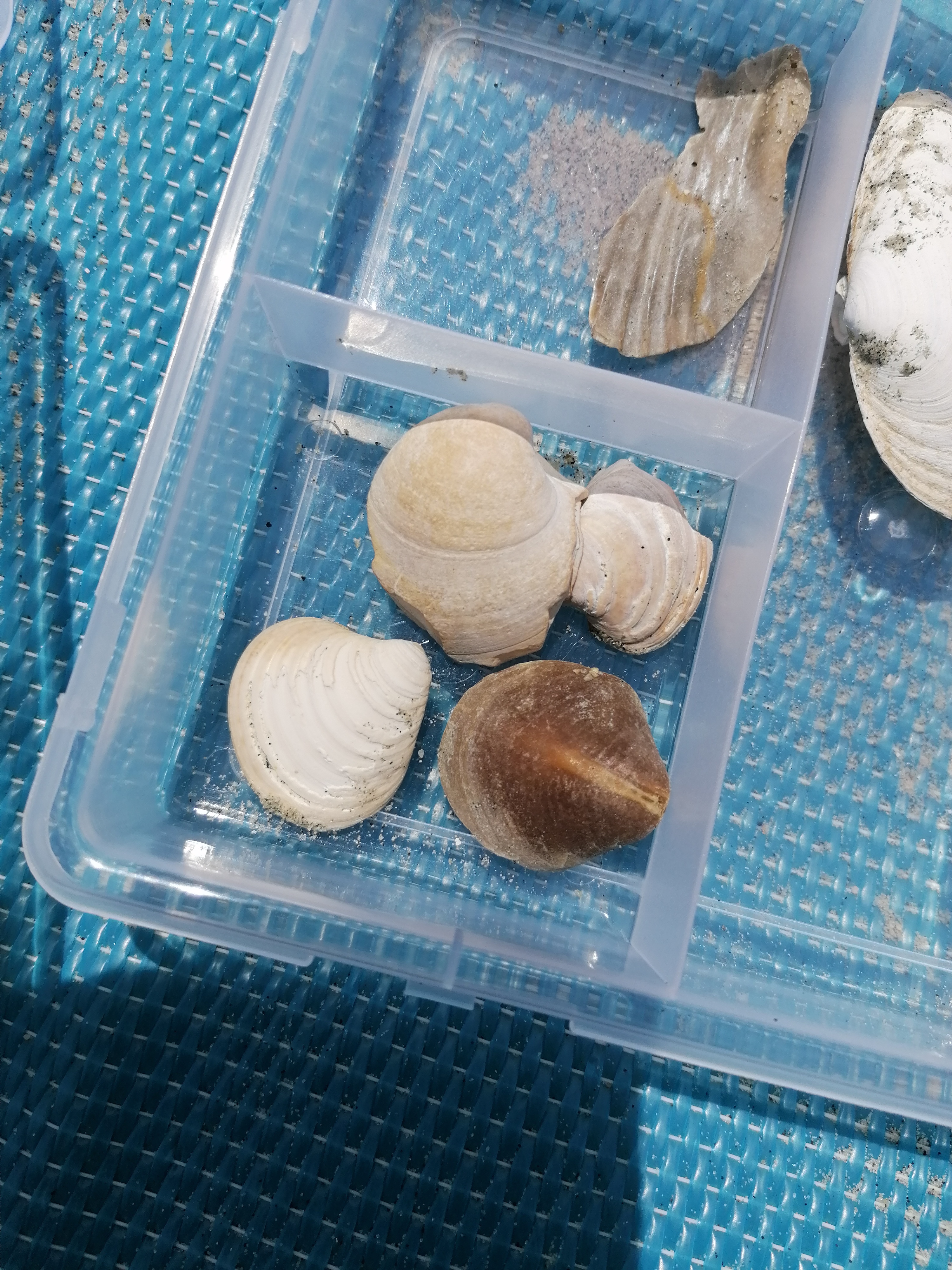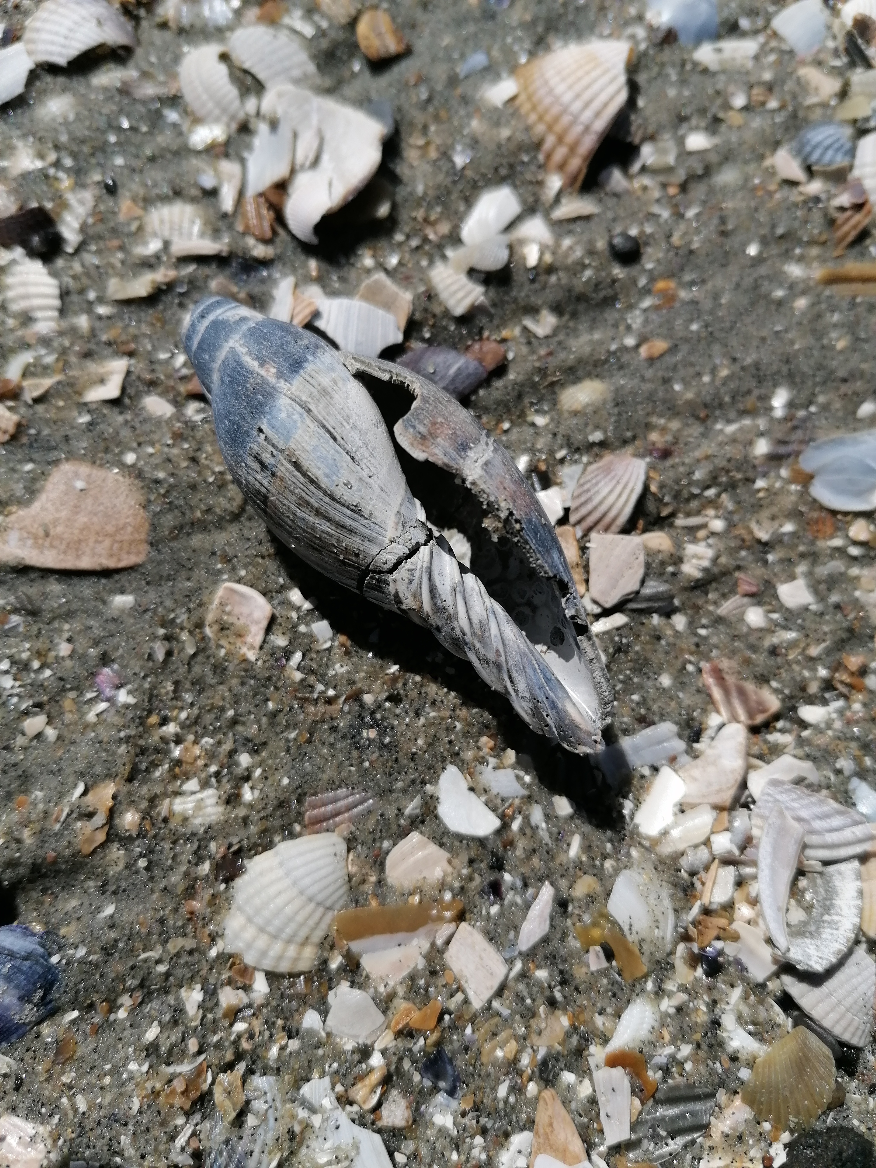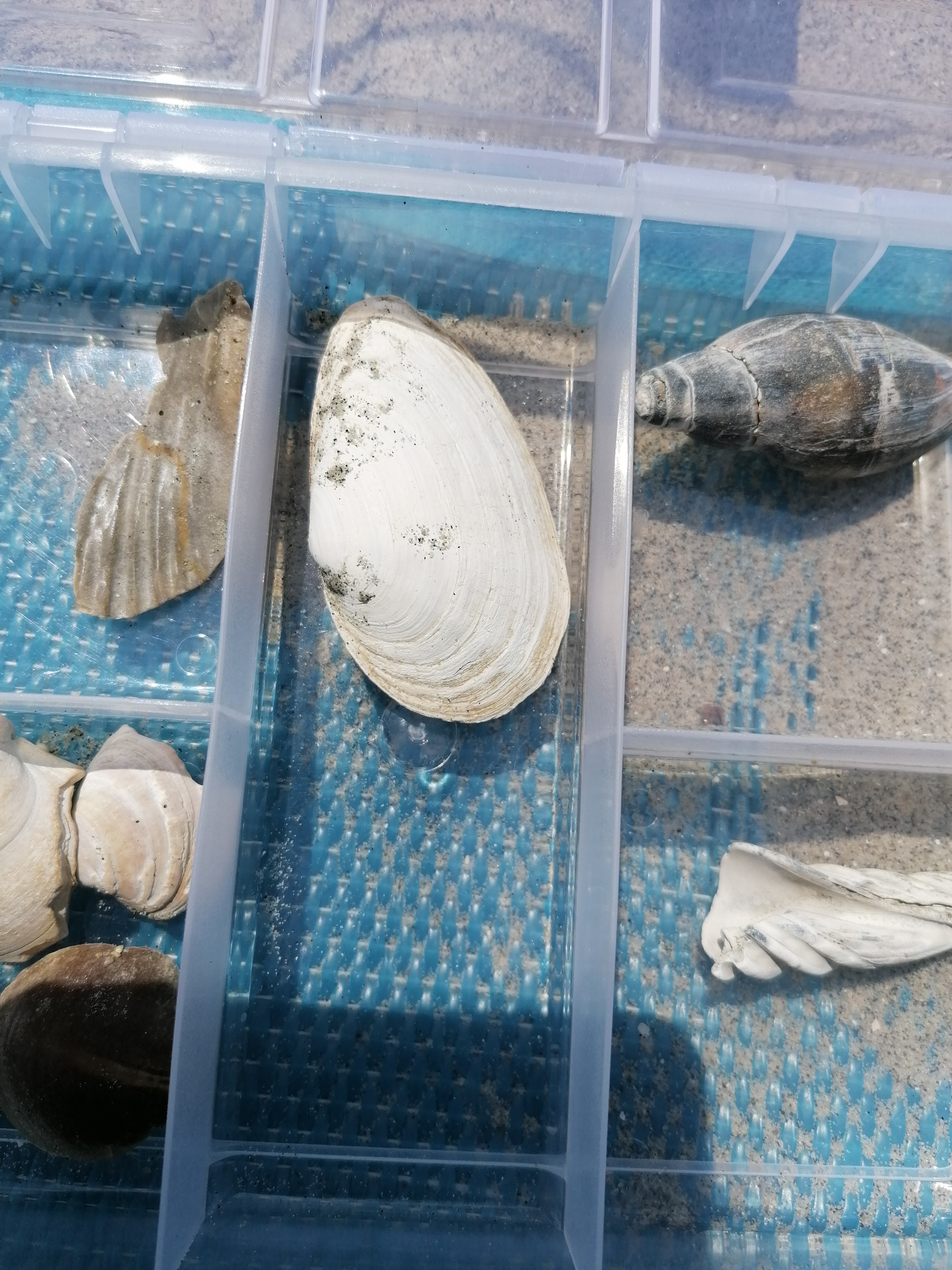 Ik ben vandaag naar de kaloot geweest en heb dit gevonden. Onder andere; een bulla van een dolfijn-achtige, complete scaphella lamberti! Een mooie zand tijgerhaaientand, forse kroon van cosmopolitodus hastalis, huidstekel van een raja clavata en verder nog wat schelpen en haaien en roggentanden, een vissentand. Ik hoop dat jullie ze mooi vinden!