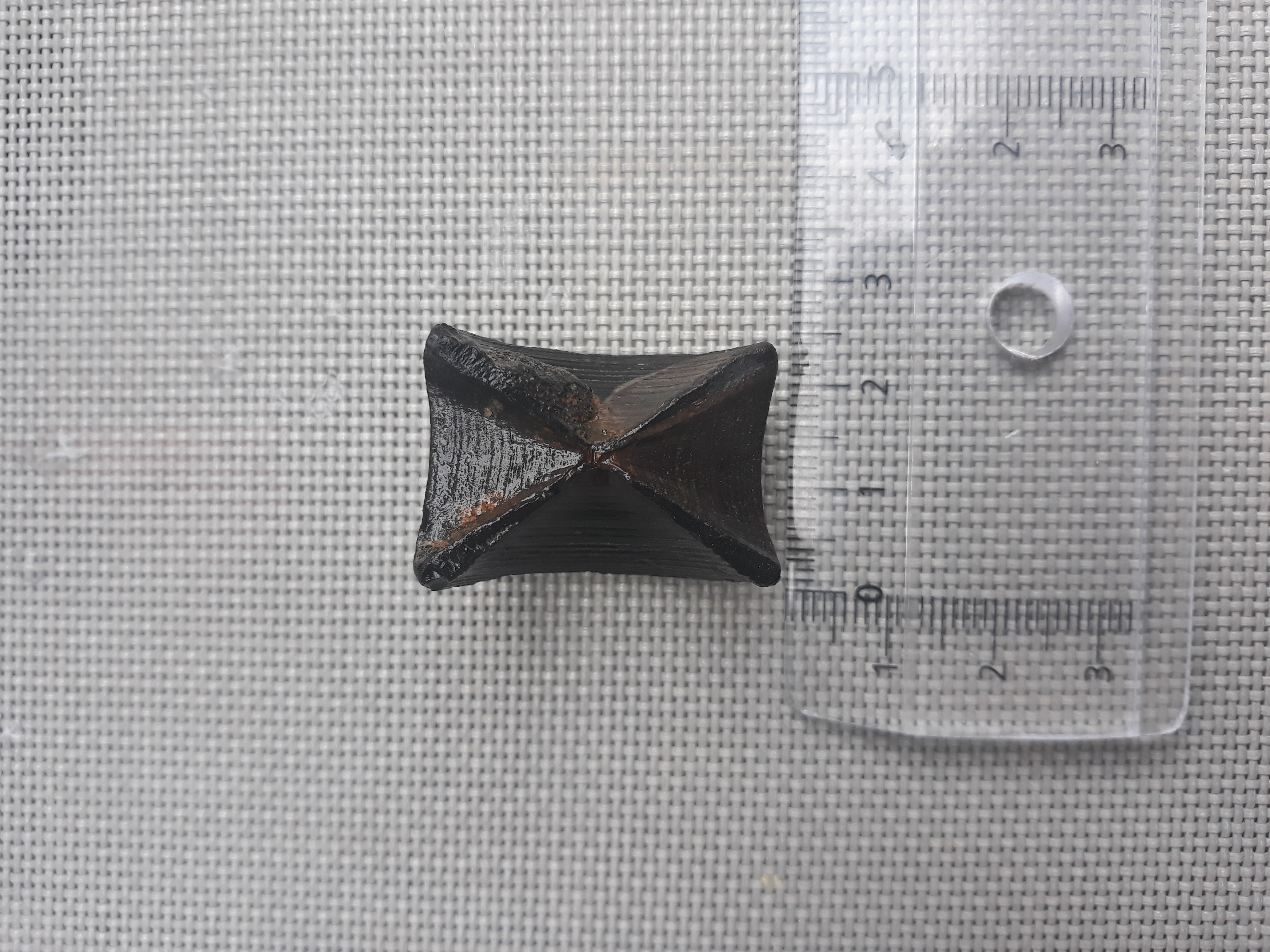 De wervel is misschien van een haai. Dit denk ik vanwege het feit dat er volgens mij geen sporen zijn van de lange uitstulpsels die normaal op een wervel van een beenvis wervel zit. Dit is ook niet zo gek als je bedenkt dat de schelde en westerschelde veel neogene fossielen bevat. Ik denk dat het een wervel is van een carcharhinide haai.