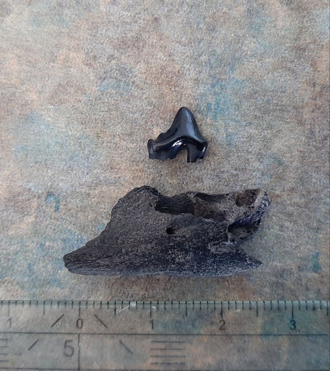 Deze vond ik vanochtend op de zandmotor een stuk onderkaak met een tand erin. Omdat de tand helemaal in de kaak was gezakt heb ik hem er met veel spoelen en gepeuter uitgehaald. Lijkt me van een otter? En hoe zijn andere marterachtige of (pool)vos uit te sluiten? Groet Johnny de Zeeuw