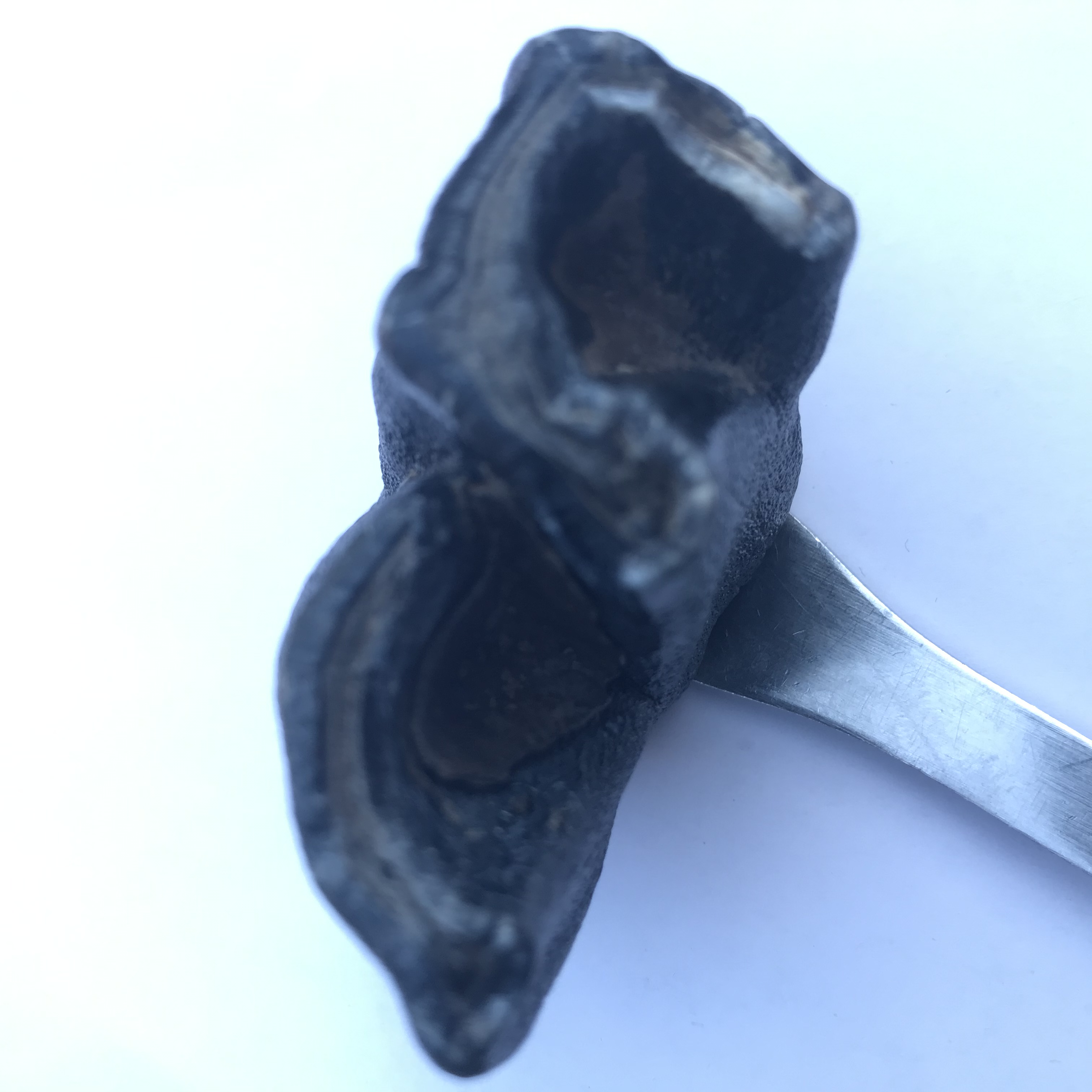 Afgelopen zaterdag heb ik twee vreemde stenen gebonden op het strand van Monster. Het lijkt best een beetje op een tand of kies.