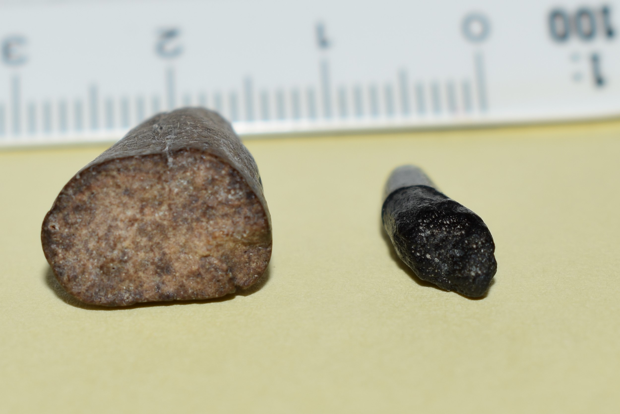 De linkse bruine is volgens mij niets. de rechtse zwarte kan eventueel een tand zijn maar ik weet niet van welk dier, vermoedelijk van een vis?