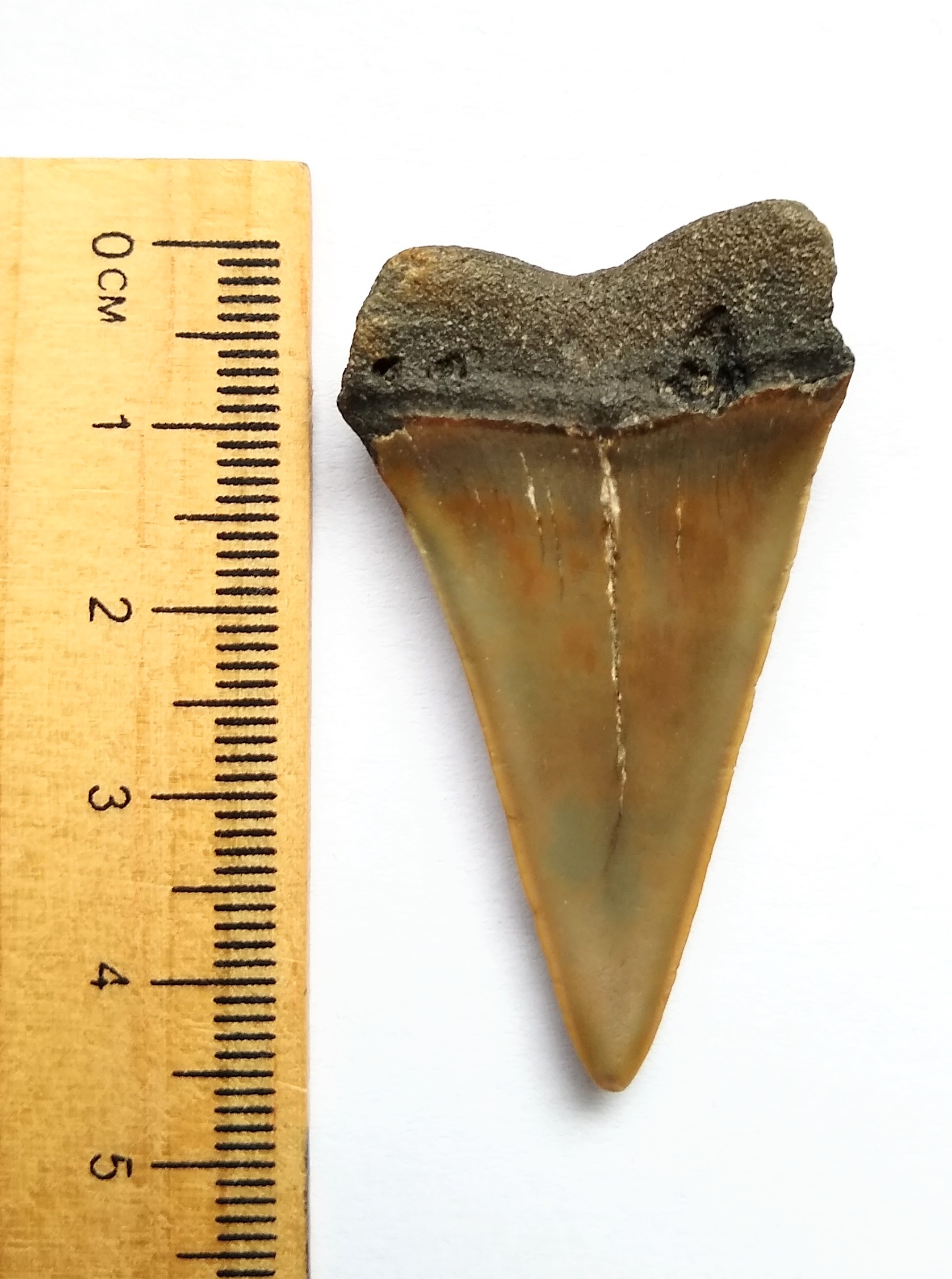 Dit is volgens mij een gewoone Cosmopolitodus hastalis voortand uit de bovenkaak.