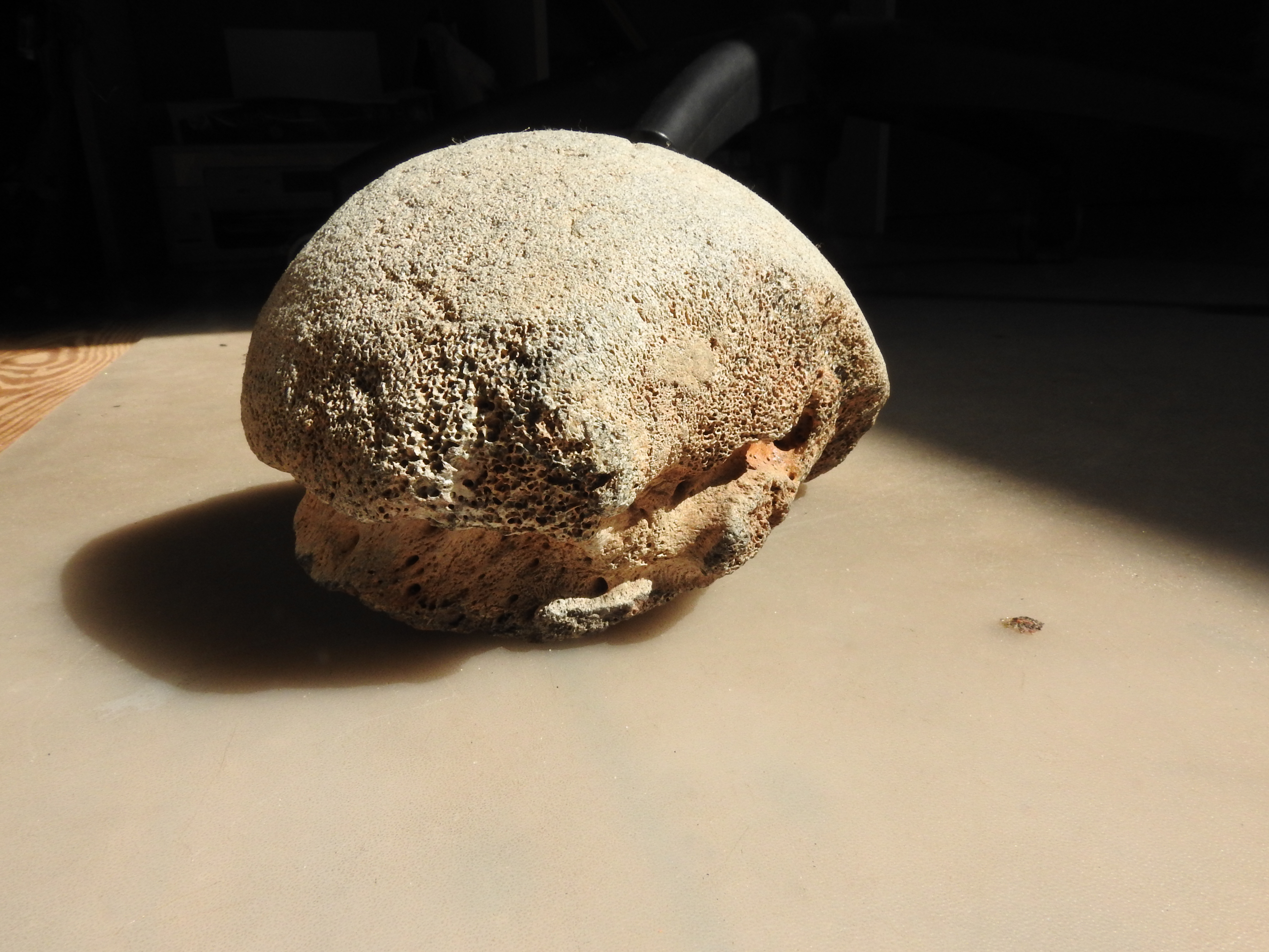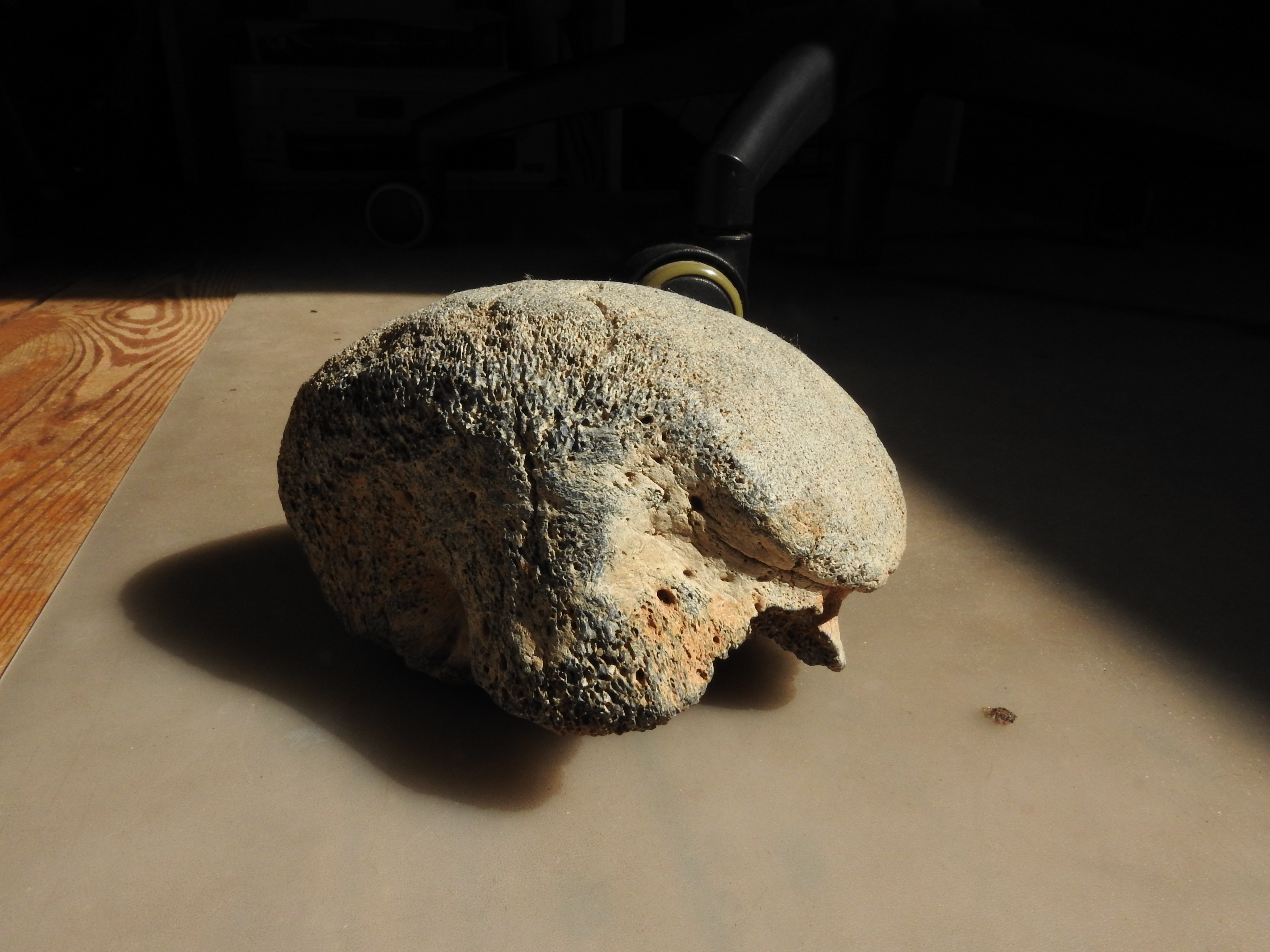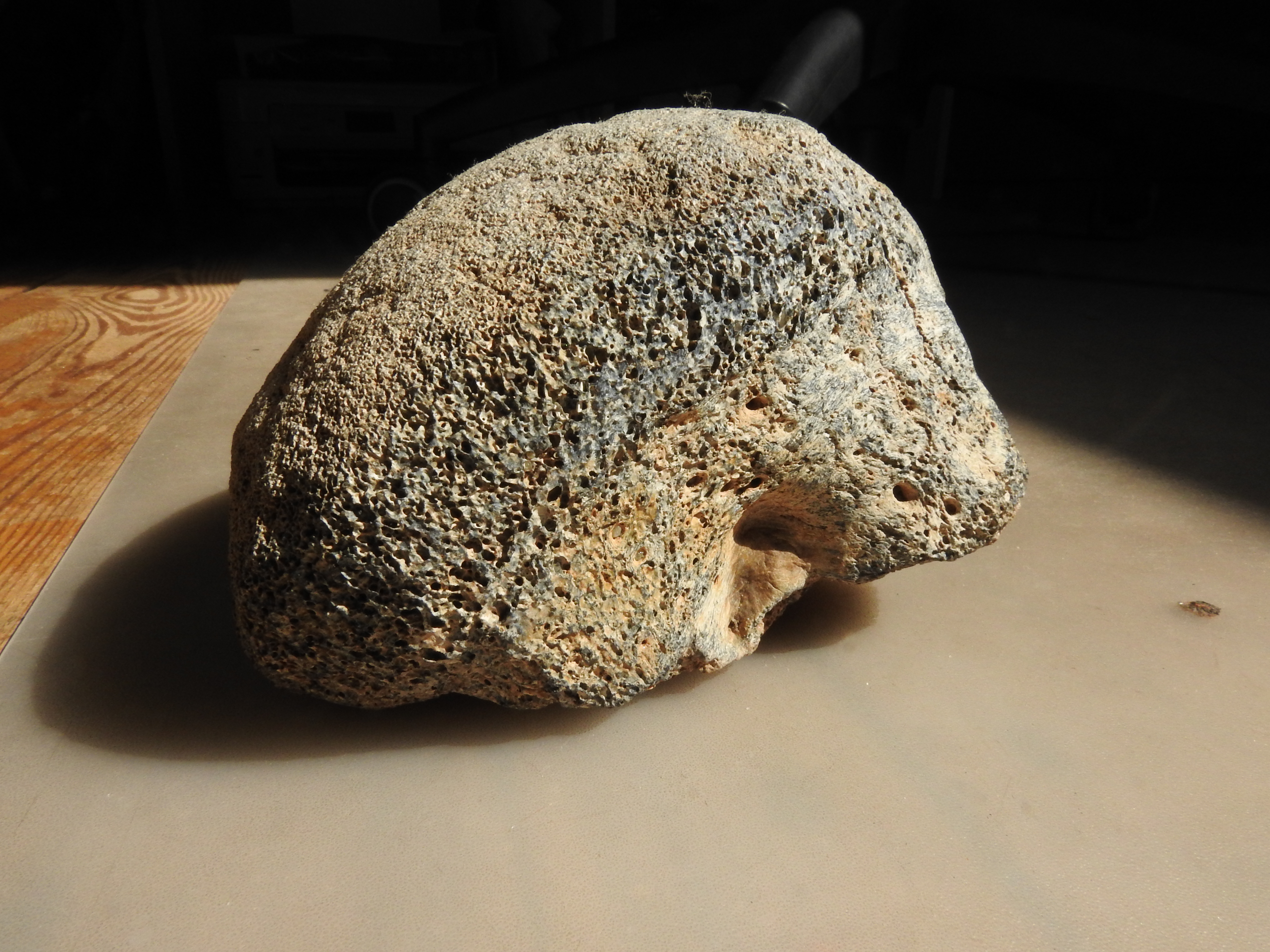 Zelf denk ik dat het misschien een deel van een opperarmbeen van een kleinere mammoetsoort kan zijn vanwege het formaat en de bolle/ronde vorm, maar ik ben hier absoluut niet zeker van.