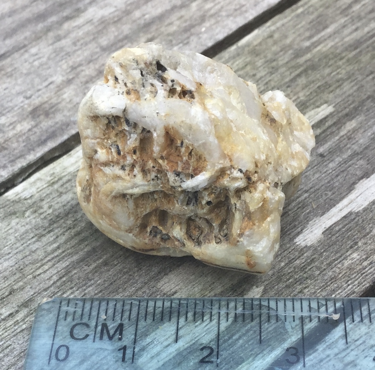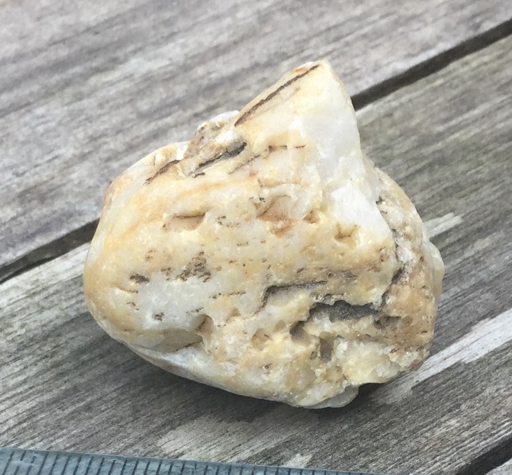 Dit steentje hebben we in de tuin gevonden, in Houthalen. Wat kan het zijn? Kwarts, calciet,...?