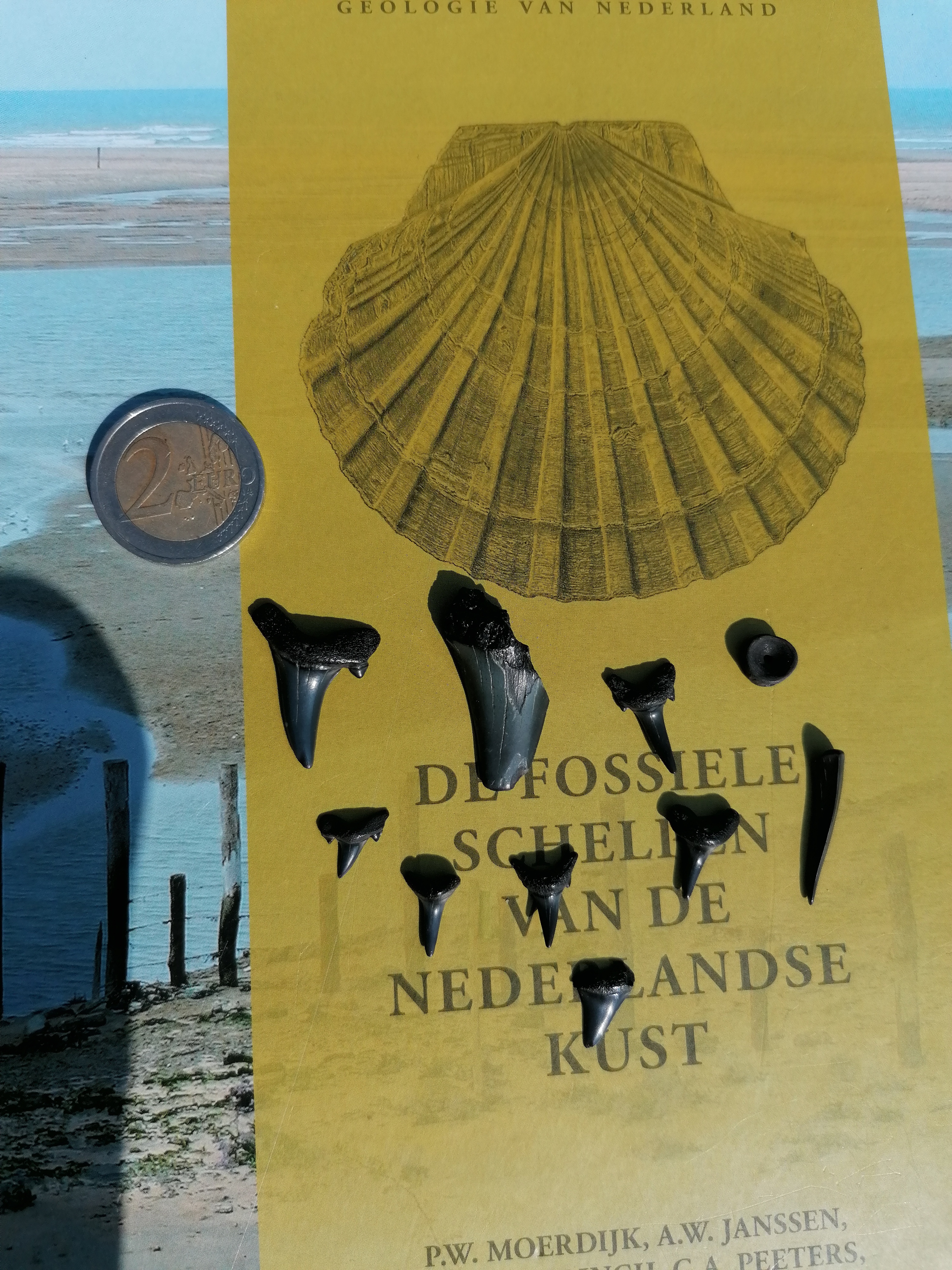 Ik ben met mijn familie een week naar het zwin gegaan, daar ben ik als gebruikelijk weer het strand opgegaan om fossielen te zoeken! De dag van aankomst was het hoogwater maar ik ben toch eventjes gegaan, maar heb wel een interessant botje en een klein haaientandje gevonden was verder niet veel. De ochtend erop heb ik veel interessante zaken gevonden zoals 2 grotere haaientanden, veel kleinere haaientanden en een "zwinwachter" spons. Morgen ga ik mischien naar de zwarte polder vanwege de jaarlijkse hardloop wedstrijd in de zwingeul, waardoor ik waarschijnlijk niet terecht kan in de zwingeul. De vondsten zullen blijven stromen totdat we vrijdag 25 September terugkeren naar huis en ik blijf ze posten, so stay tuned! Dinsdag ga ik waarschijnlijk ook een dagje naar zoutelande om (vroeg) pleistocene schelpen te zoeken.