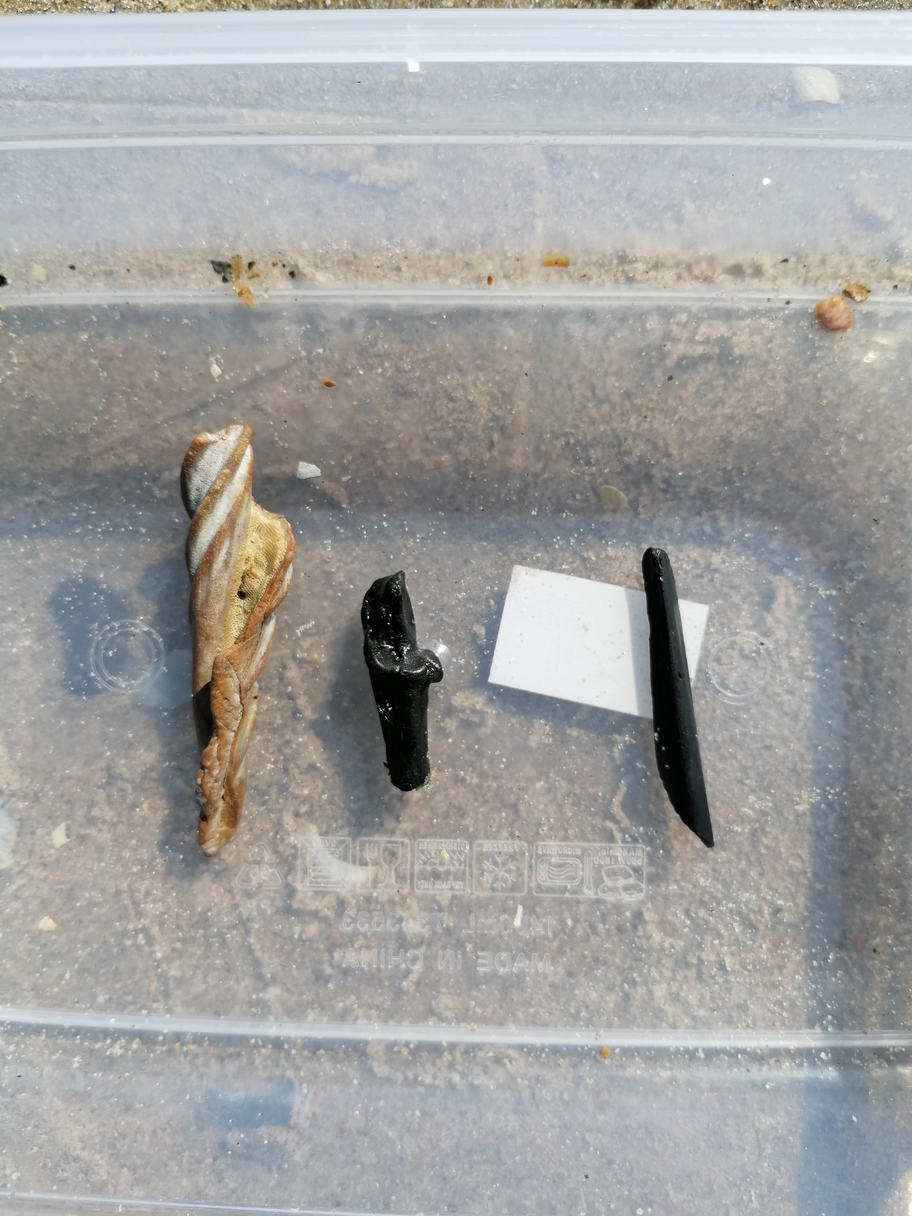 Vandaag weer wat leuke dingen gevonden, zoals een een paar goed bewaarde s. Macrota's en een leuk vissentandje tussen het gruis.