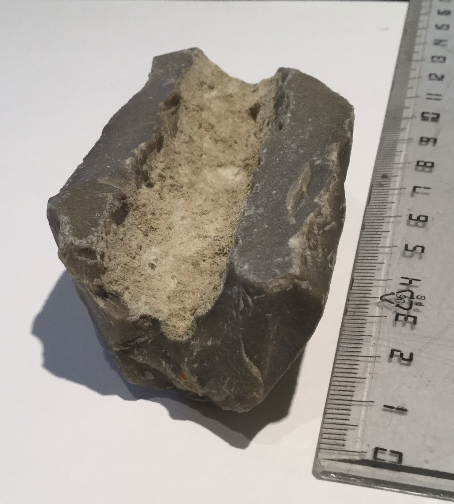 Daar vond ik deze. Ik dacht eerst een stuk buis, maar het bleek vuursteen. Is dit de befaamde kreeftengang? Zo groot?