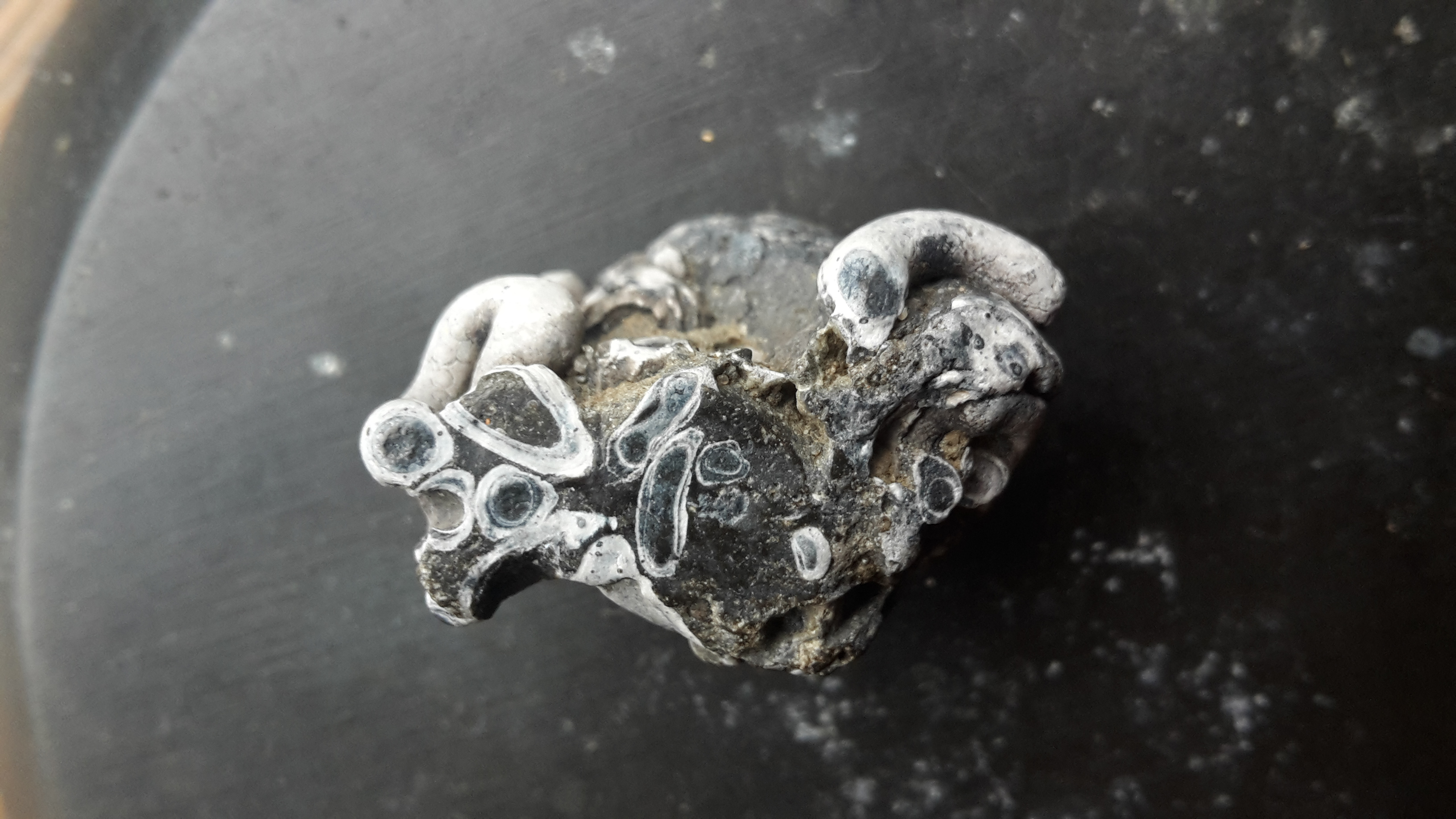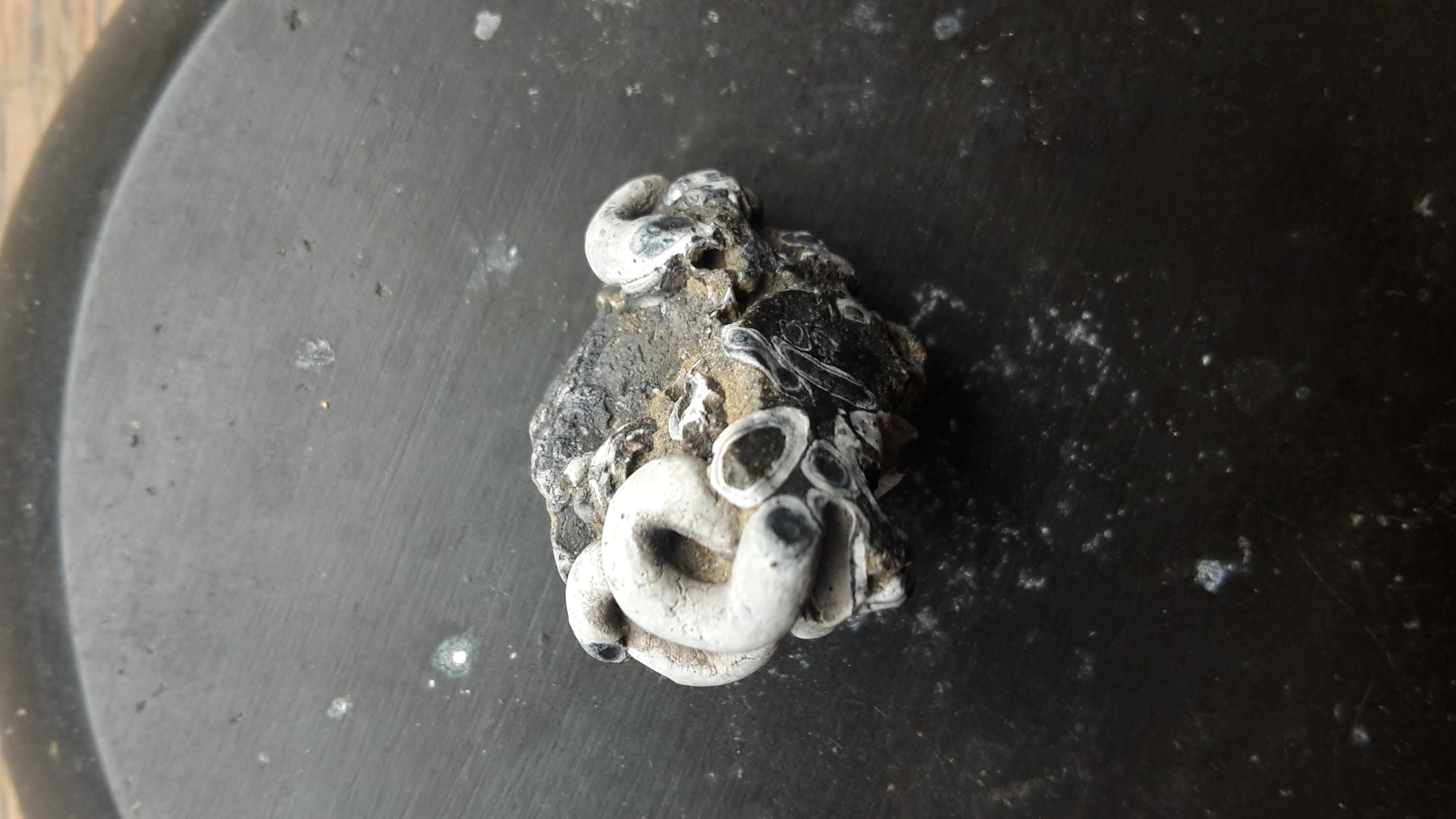 Vandaag heb ik dit brokje steen van het Zandmotor strand opgeraapt. Het meet 3x2cm. Ik dacht aan een worm fossiel. Zit ik in de buurt? Hoe oud is zoiets?