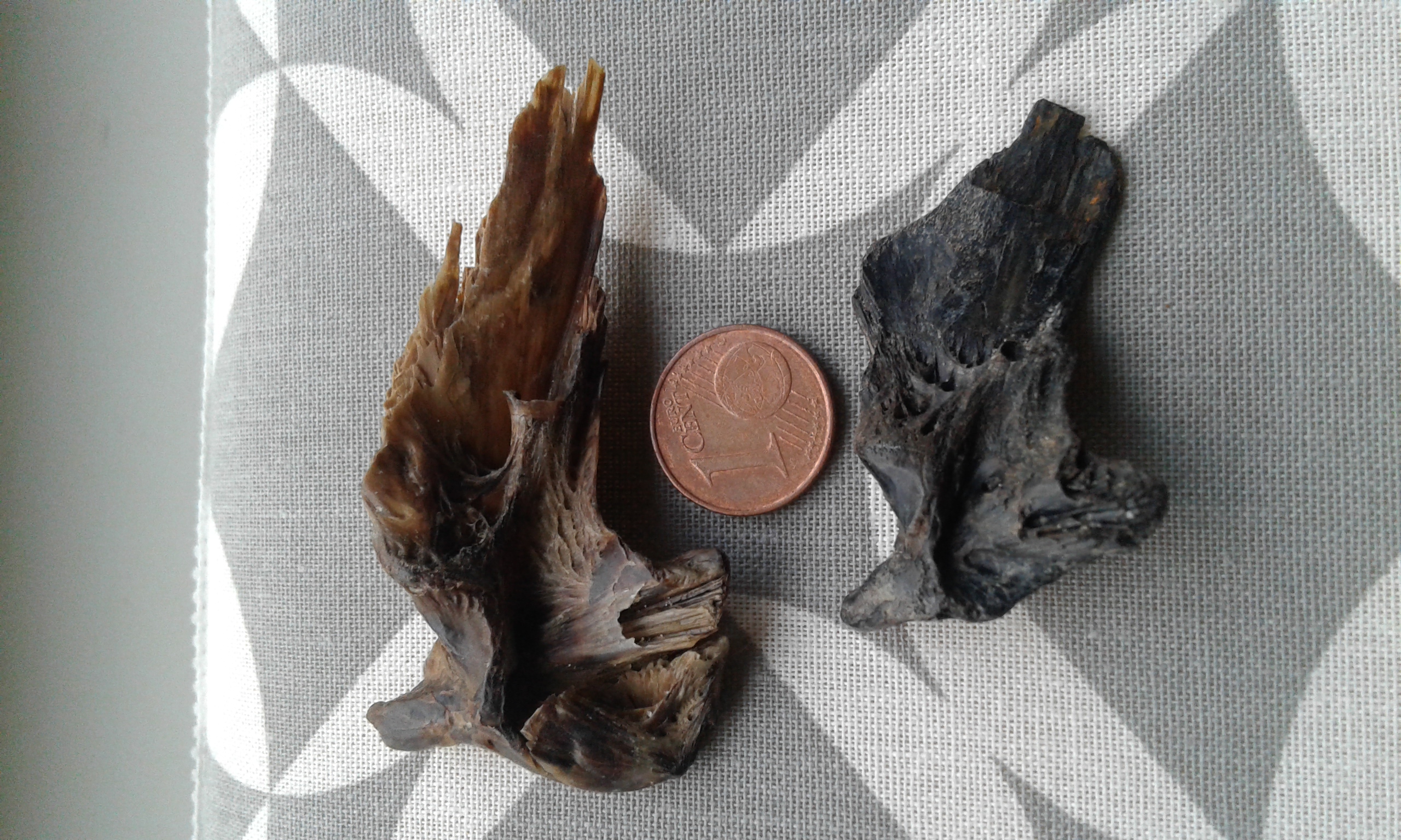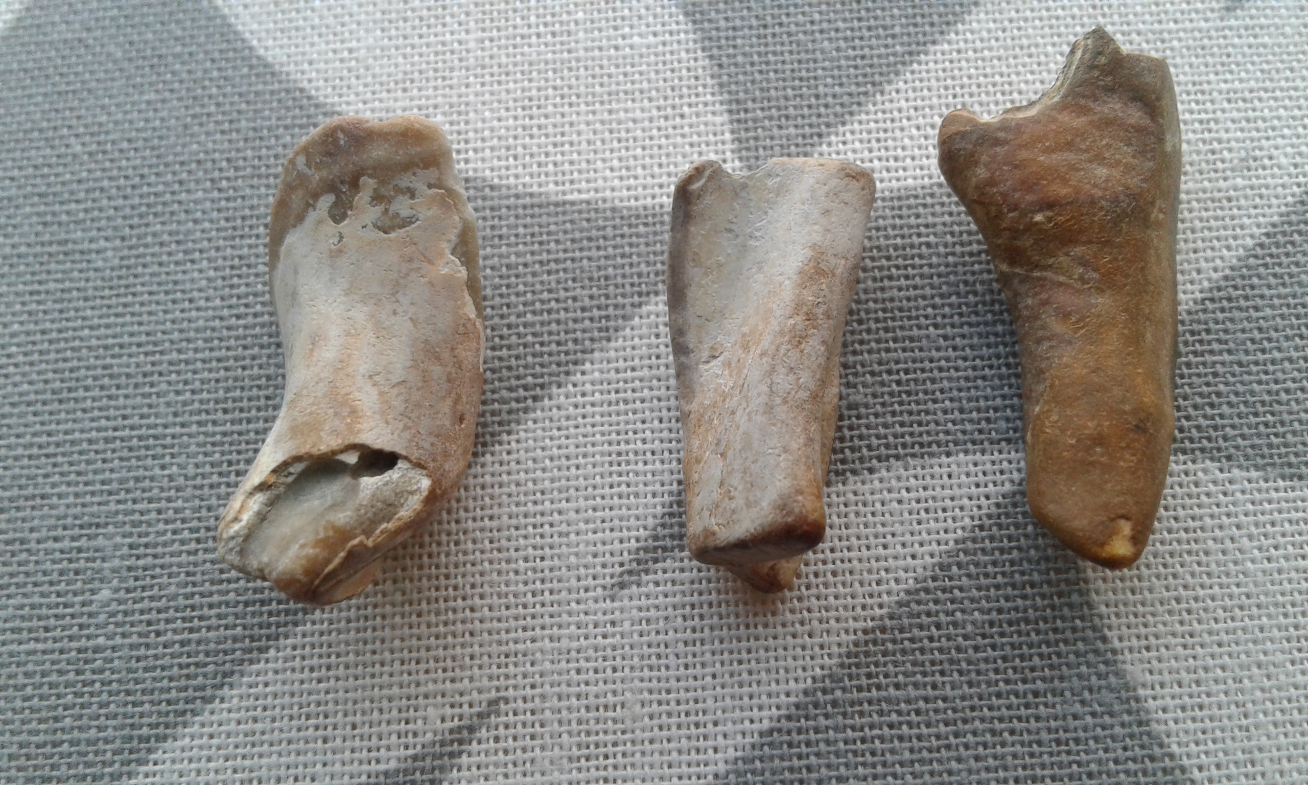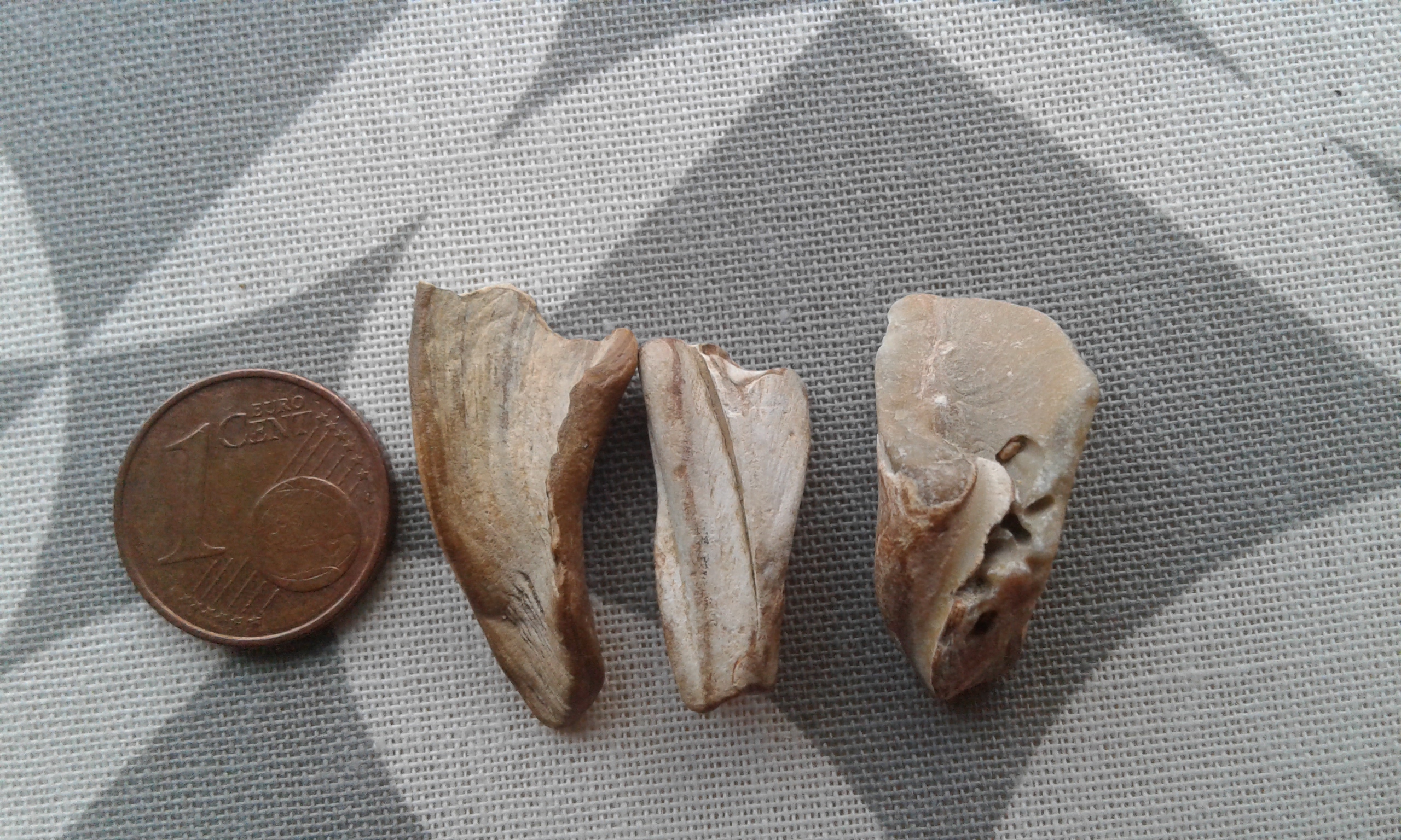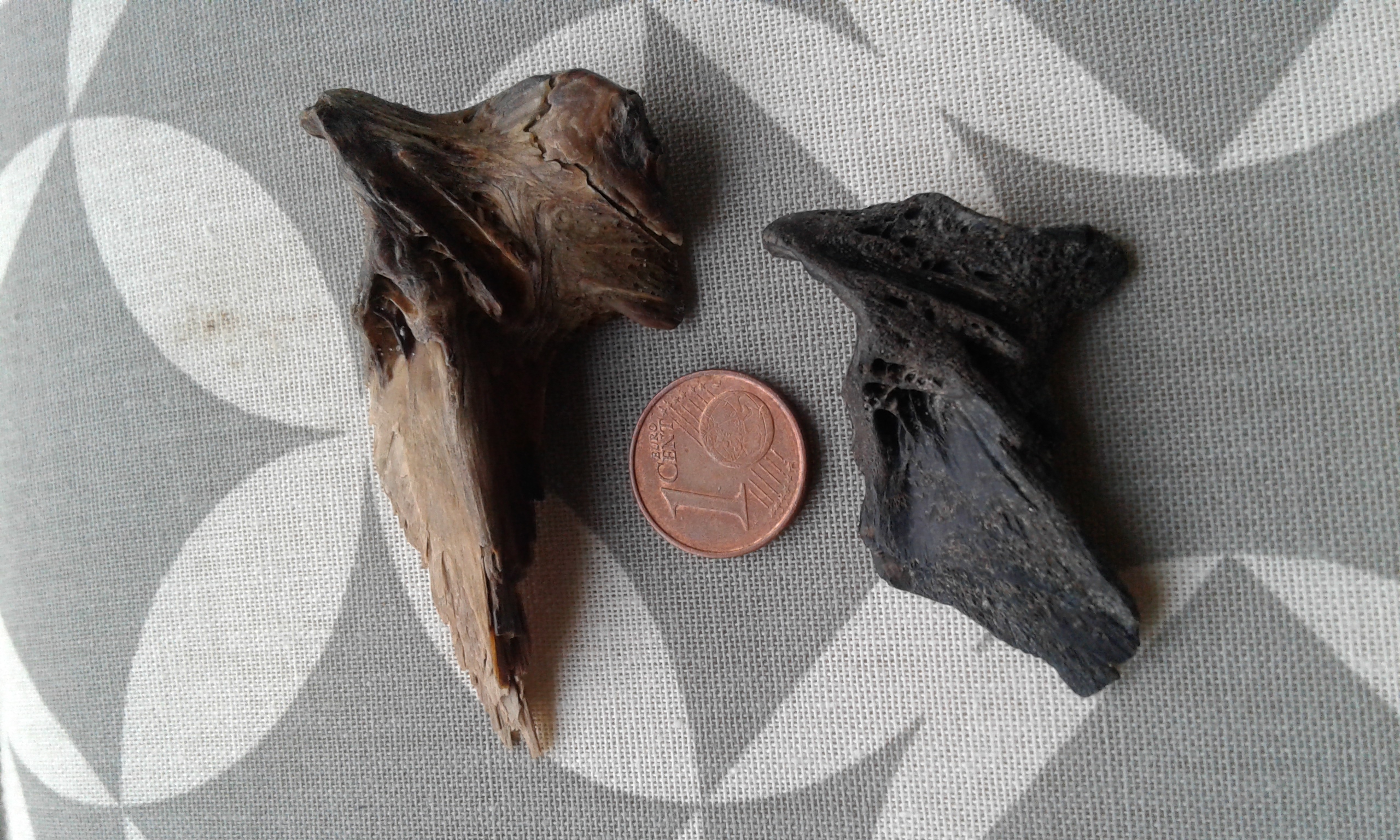 4. 2 kleine, zeer vergelijkbare botten. Iets afgebroken aan de onderkant, de lichtere, grotere erg zacht en broos