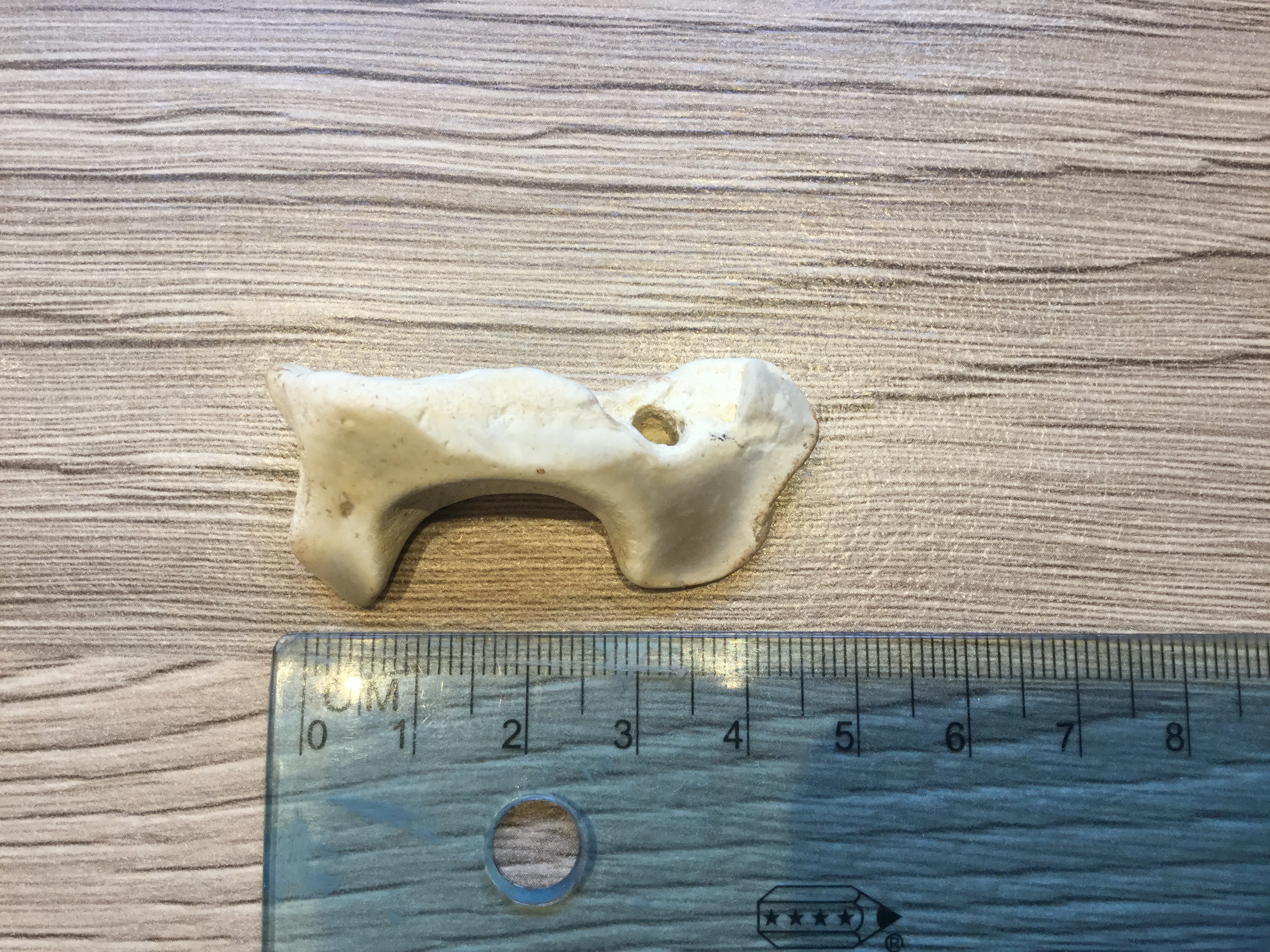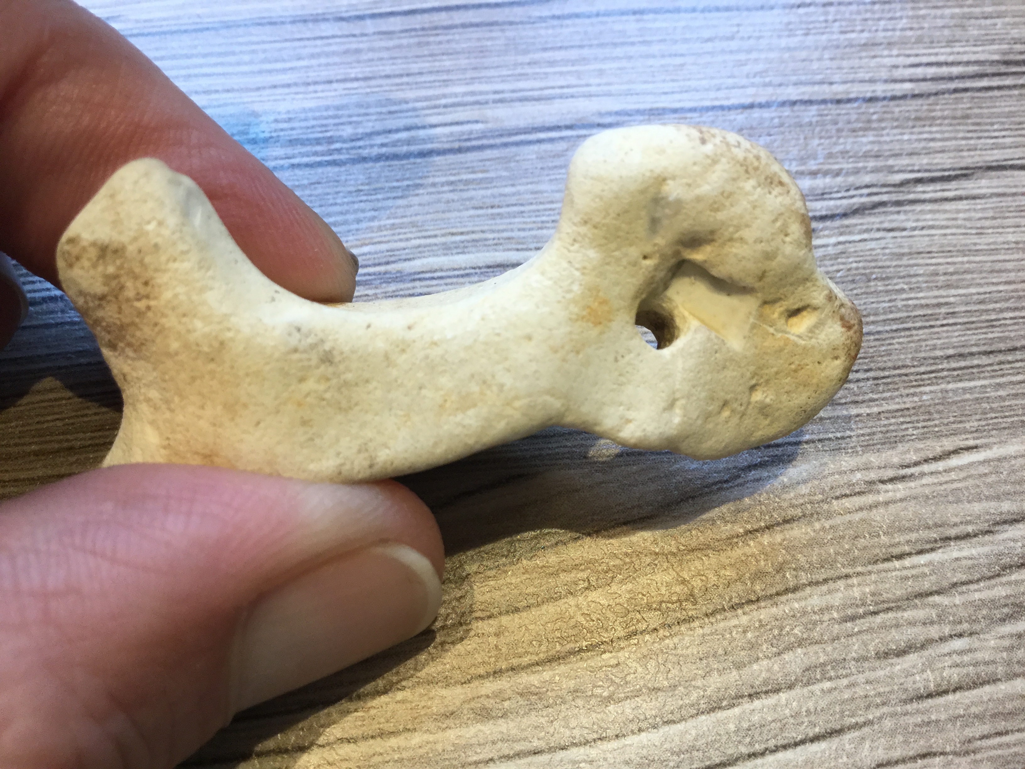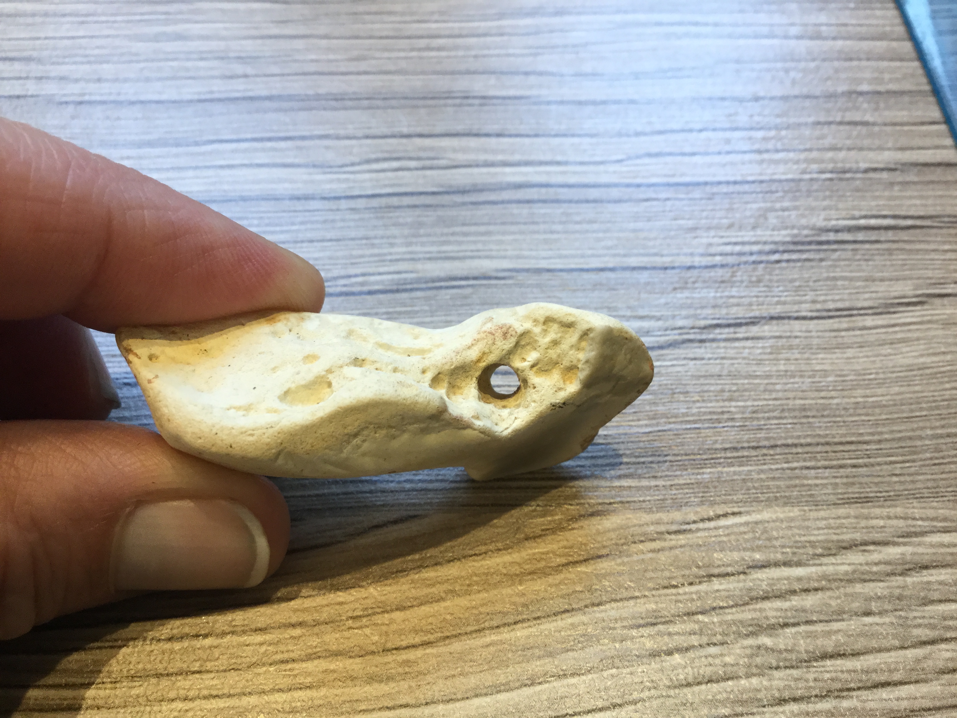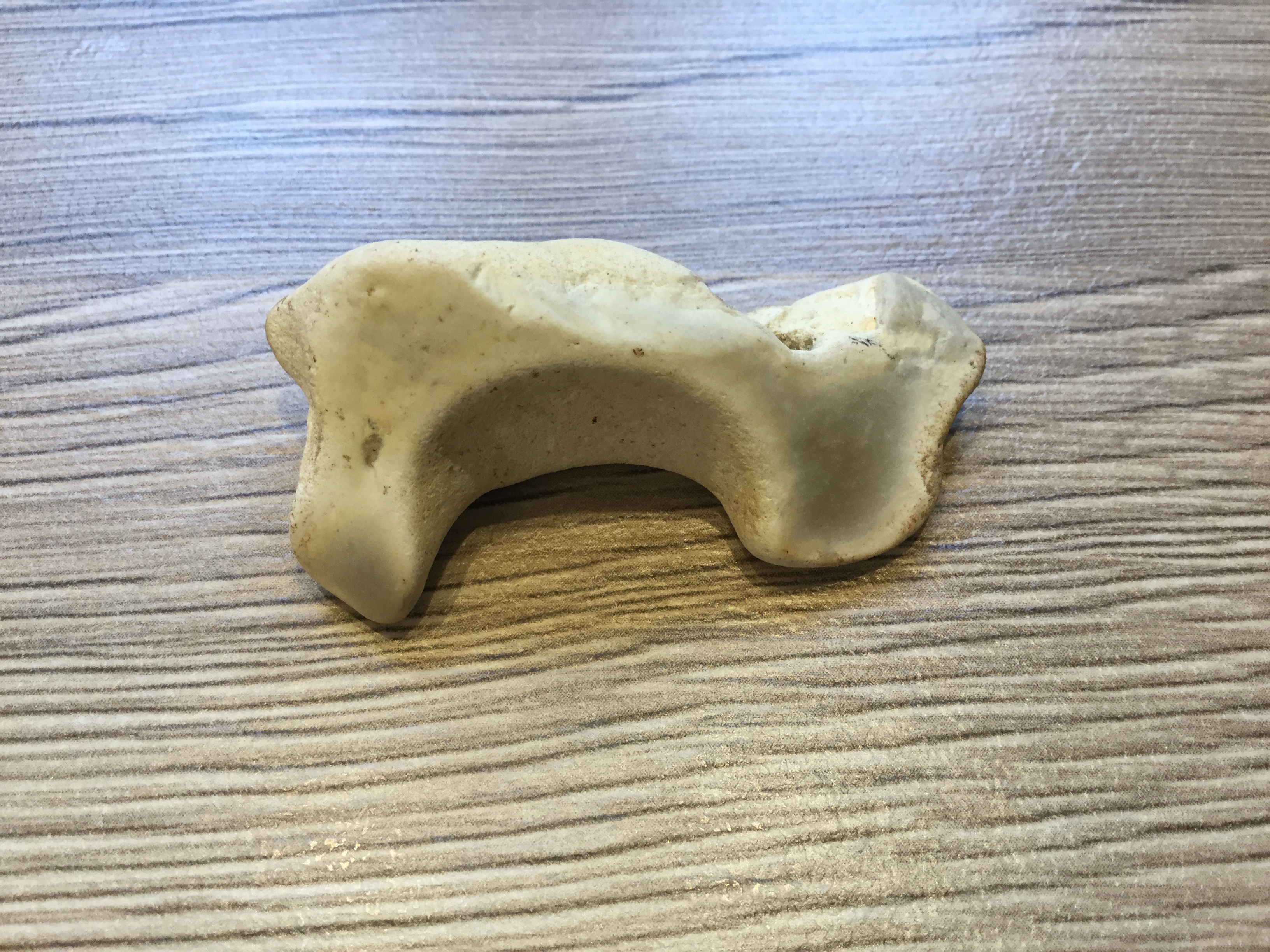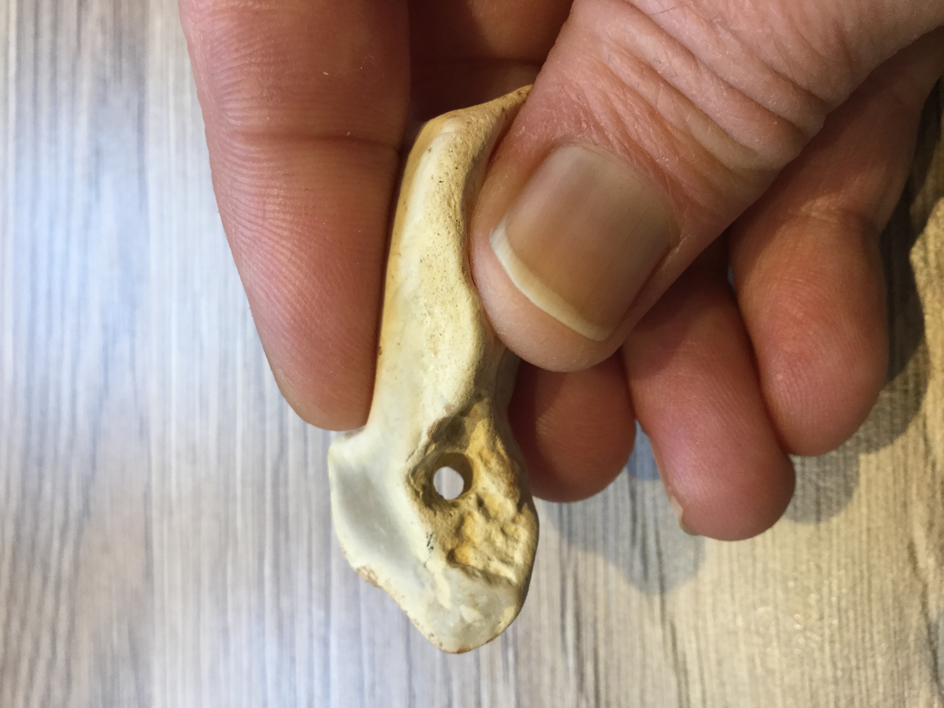 Verschillende jaren geleden hebben we dit gevonden. We dachten dat het een botje was... maar nu nog eens uitgehaald en het is vuursteen.