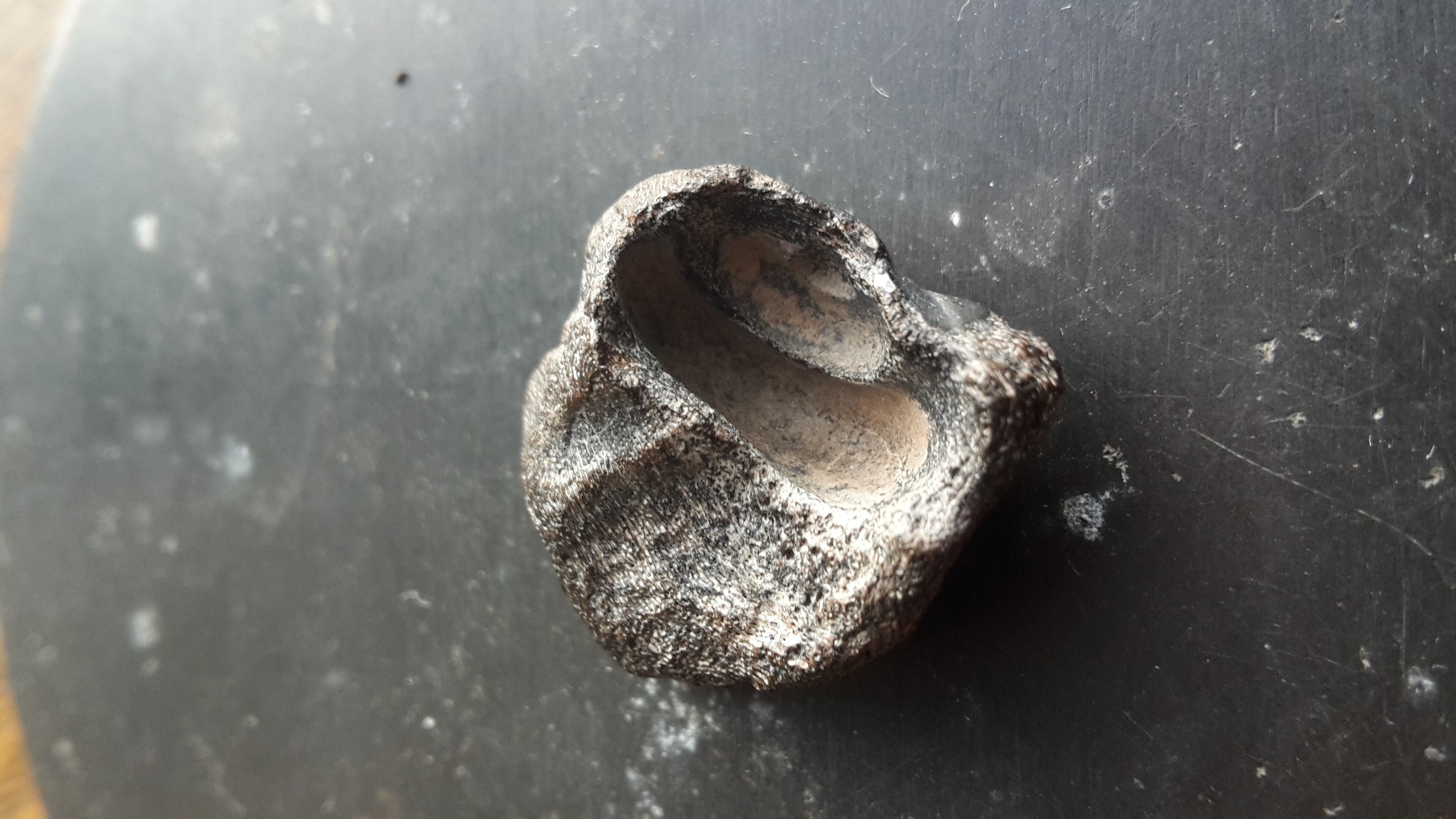 Ja, nu ik het zo uitvergroot zie ben ik het met jullie eens. Dit is geen tandje maar een botje. Ik heb me teveel gefocust op het gat en het streepjes patroon. Gaan we voor de suggestie van Cedric. Dank allen!