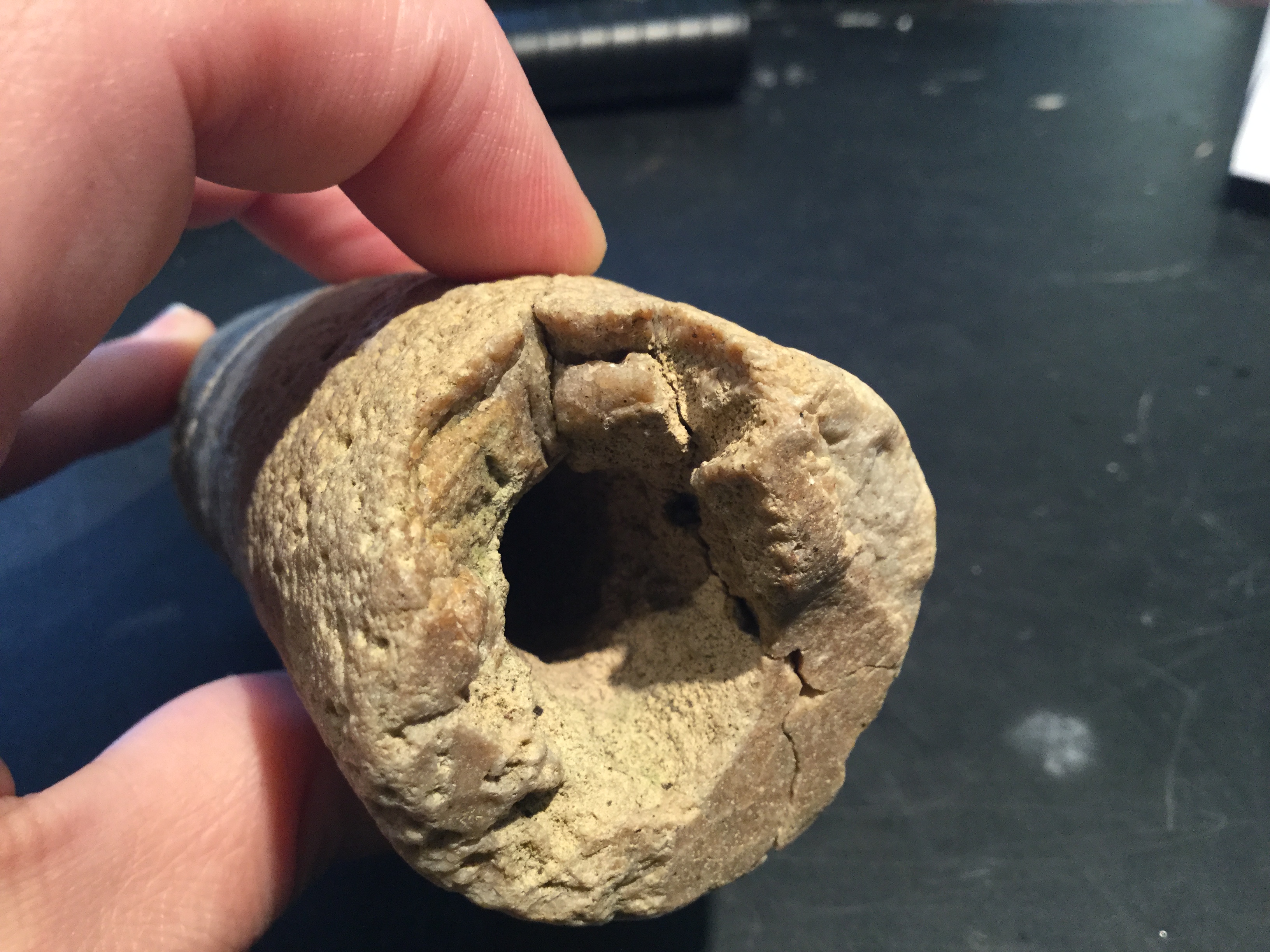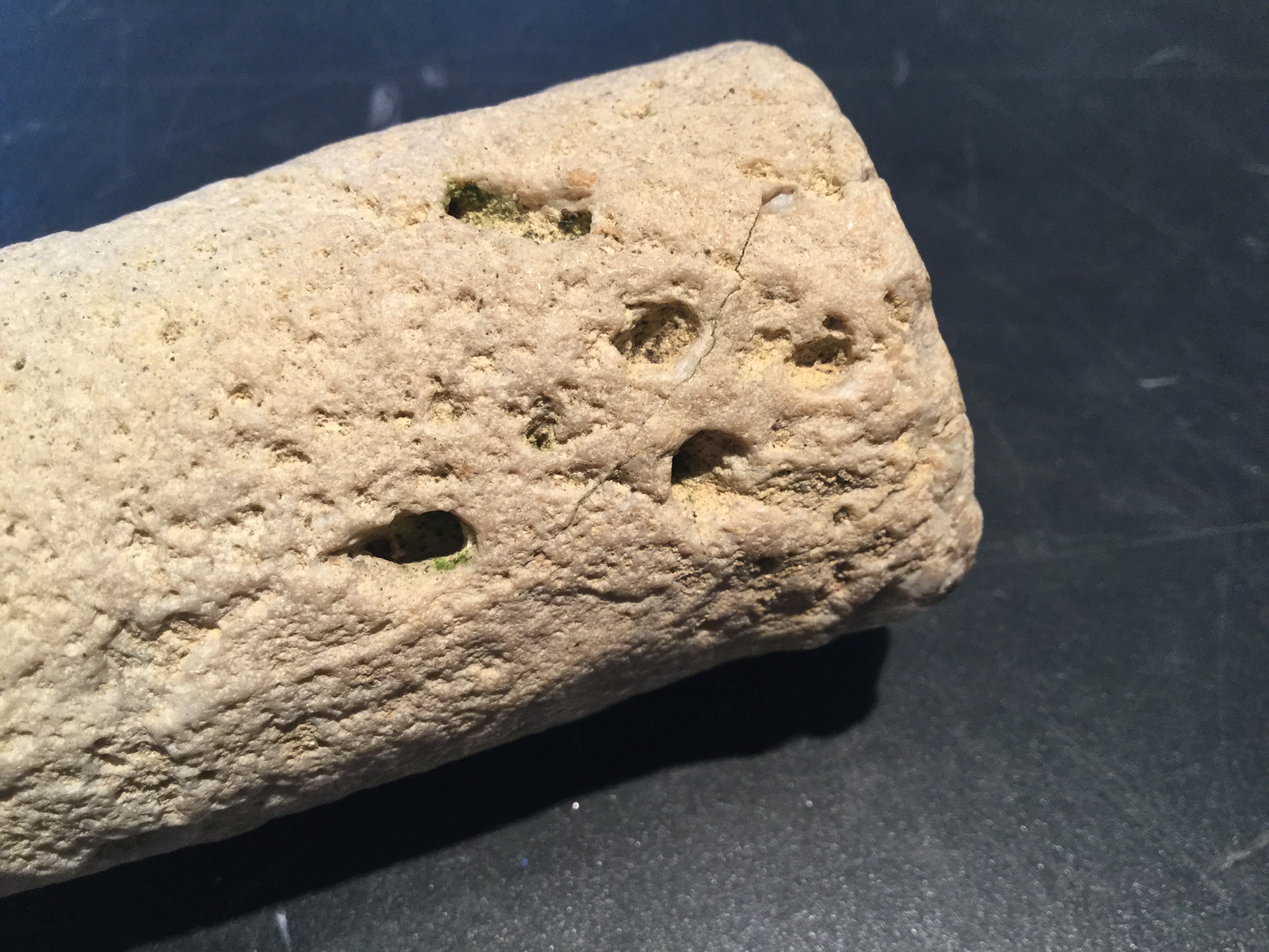 Ik ben direct gaan controleren... lijkt me toch steen hoor. Er zitten vele gaatjes in. Aan de andere kant meer dan hier te zien is. En de binnenkant is heel ruw. Ik zal morgen proberen wat betere detail foto’s te maken.