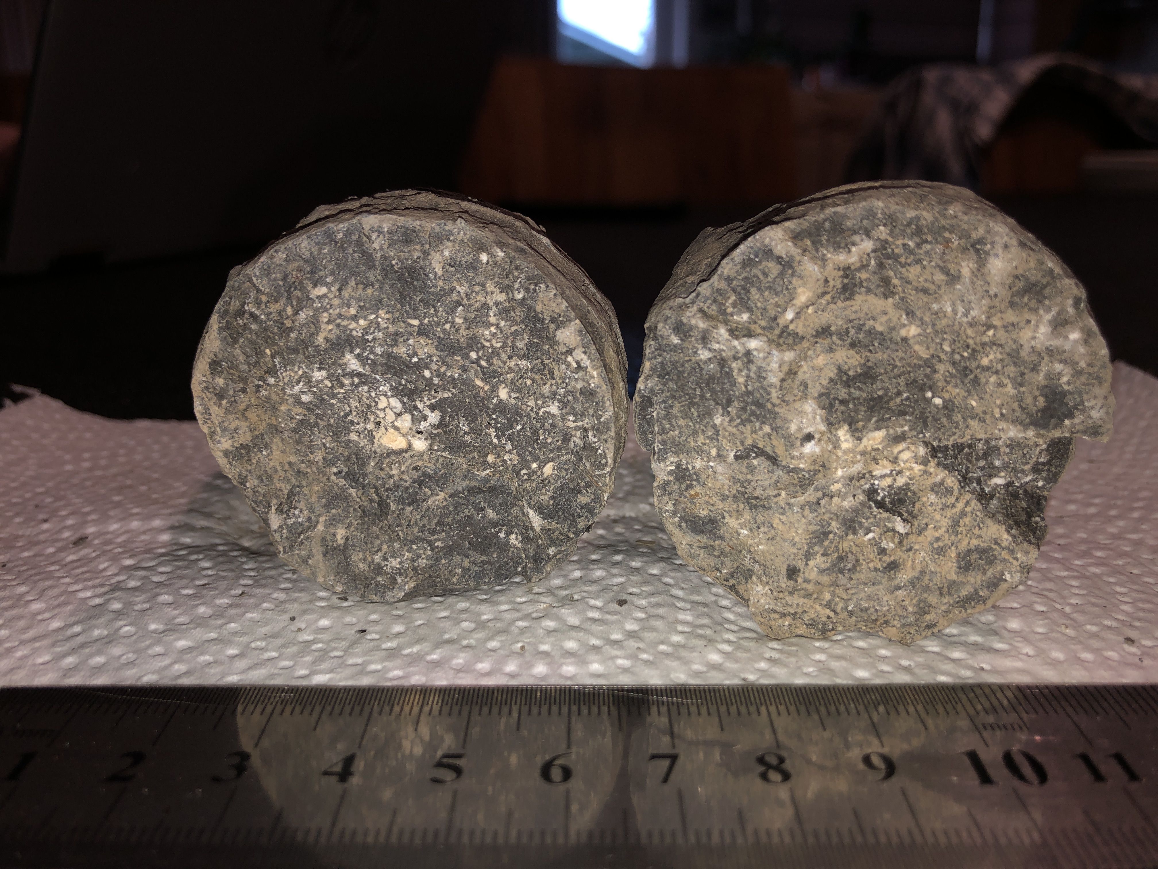 Maak ook eens foto's terwijl het stuk nat is, specifiek van de kopse kant en van de doorsnede . Soms geeft dat iets meer duidelijkheid.
