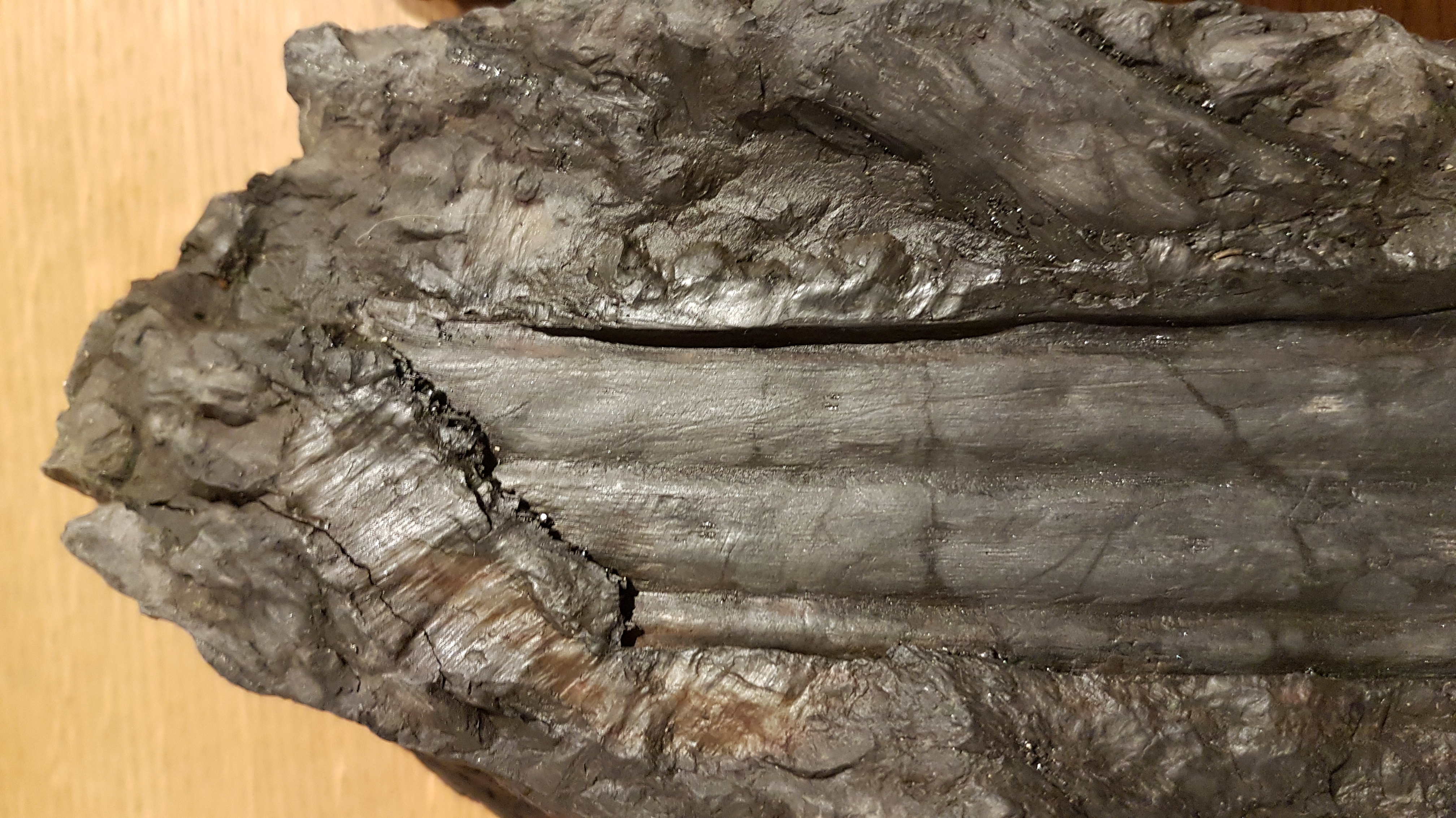 Ben bang dat dit stuk niet meer op soortniveau te determineren valt. Hoewel de ribben van Sigillaria nog duidelijk zichtbaar zijn, zijn de bladkussens niet bewaard gebleven.
