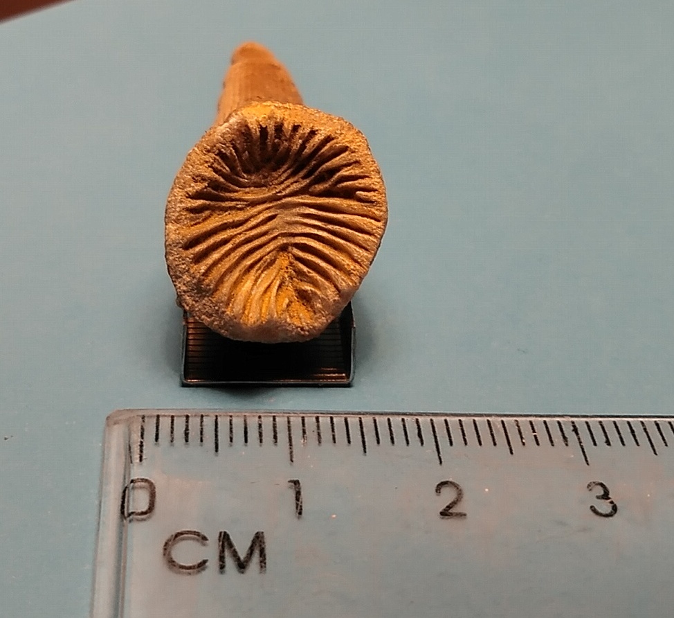 De tweede, die Stereolasma rectum, die vind ik nergens met een zicht op de kelk. Daar kan ik niets over zeggen. Het is wel een mooi koraaltje!