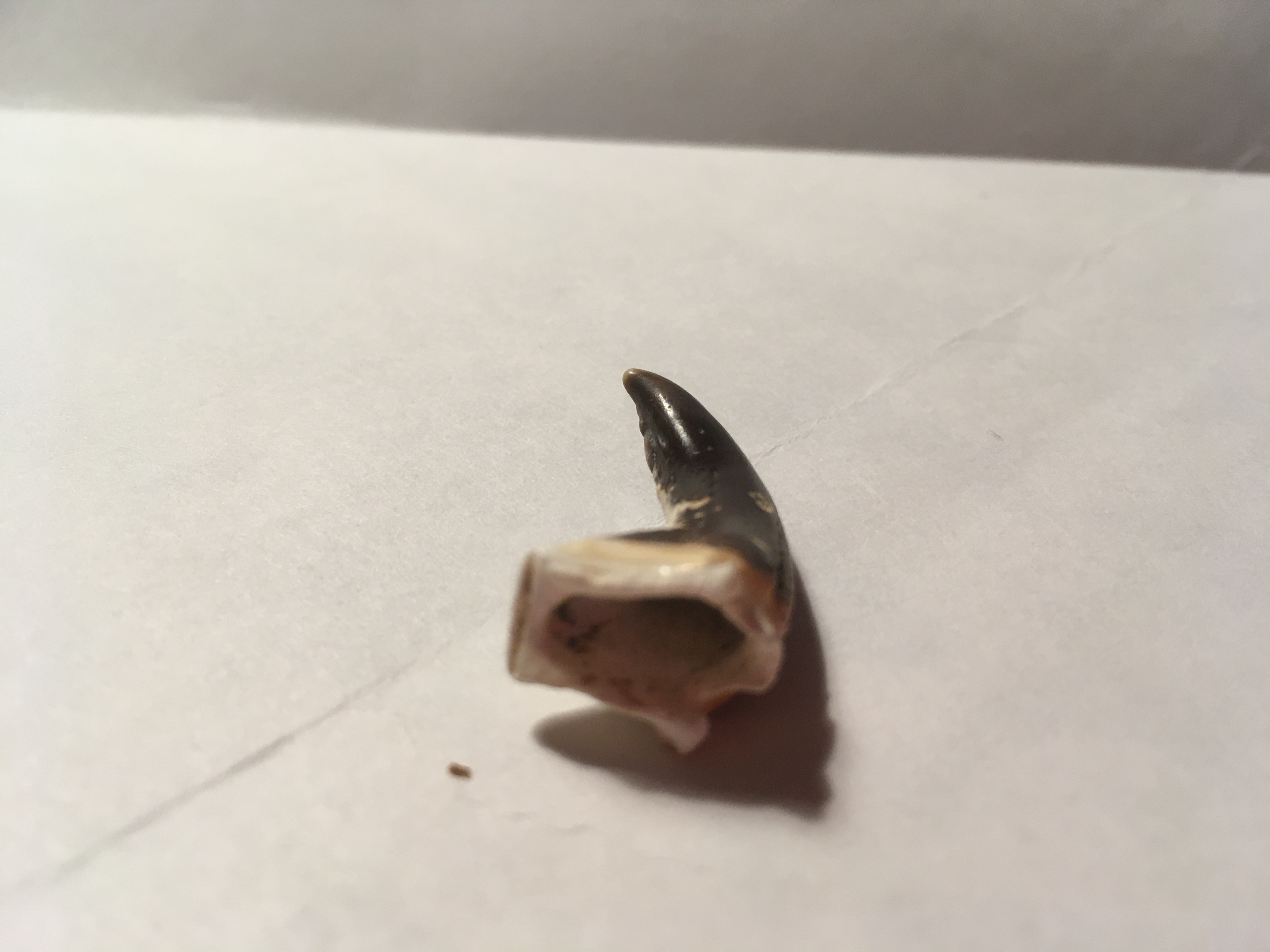 Ik heb deze tand gevonden op sardinie op het strand, alleen vind ik de onderkant niet lijken op een haaientand. Weet iemand van welk dier deze tand is? Ik ben gewoon nieuwsgierig.