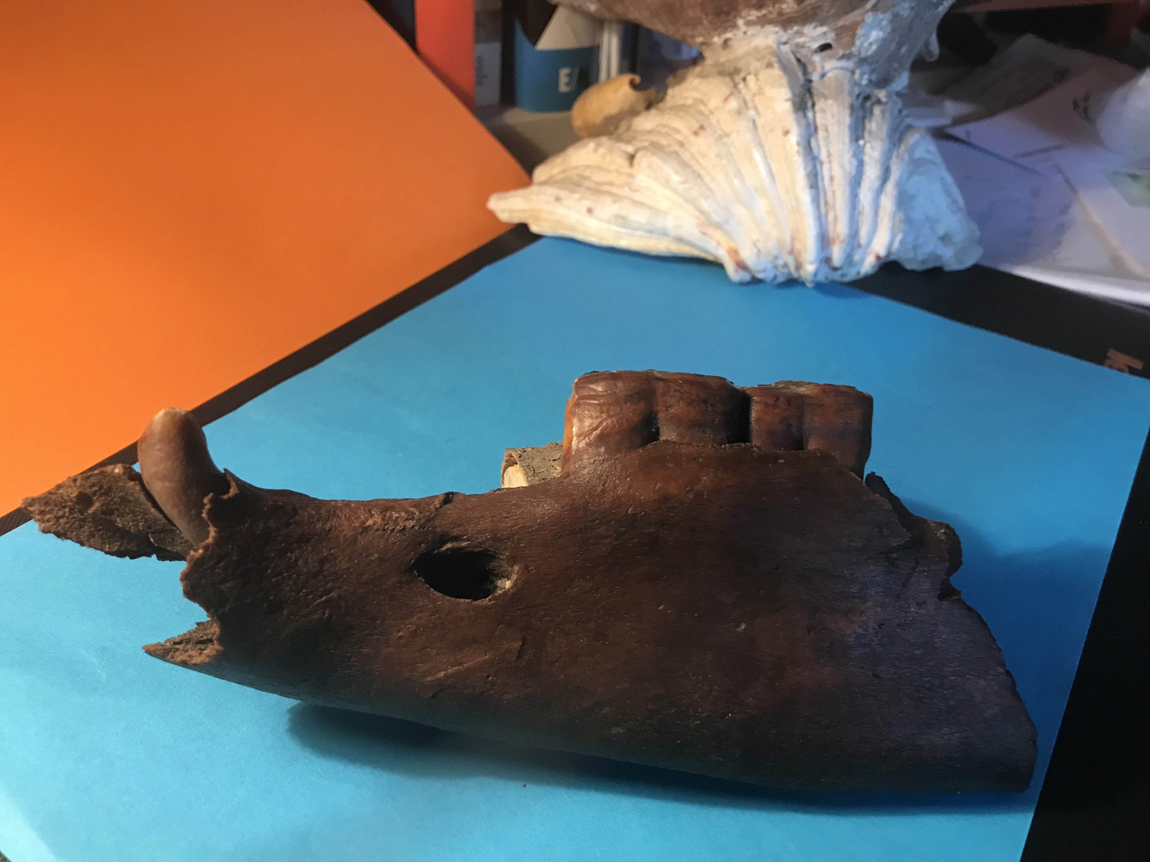 Ik vond begin dit jaar een groot aantal botfragmenten van vermoedelijke een sauropode. Op de foto komt het helaas niet zo mooi over, maar het is een indrukwekkend groot stuk bot. Ik doe er nog wat structuur foto's bij. Er zijn nog veel meer fragmenten. Ik ben nog steeds bezig de boel schoon te maken en bij elkaar te plakken. Ik ben er mee naar Naturalis geweest en we denken aan een stuk van het dijbeen van een grote dinosaurus. Geheel duidelijk is het allemaal nog niet. Ik sluit een wervel ook niet uit. Wordt vervolgd. Deze komt ergens van de Noord Franse kust. Exacte vindplaats houd ik voor mij.