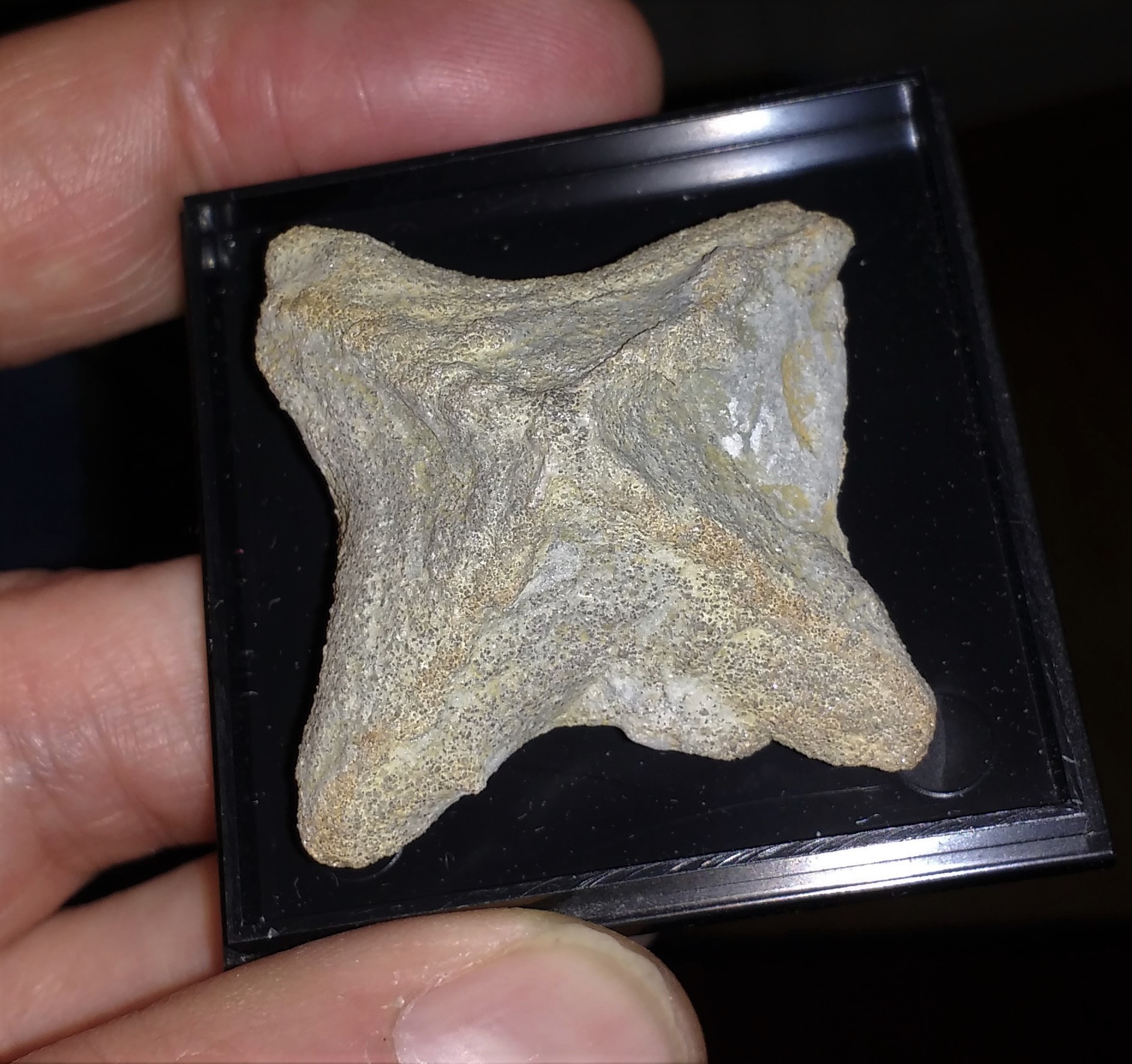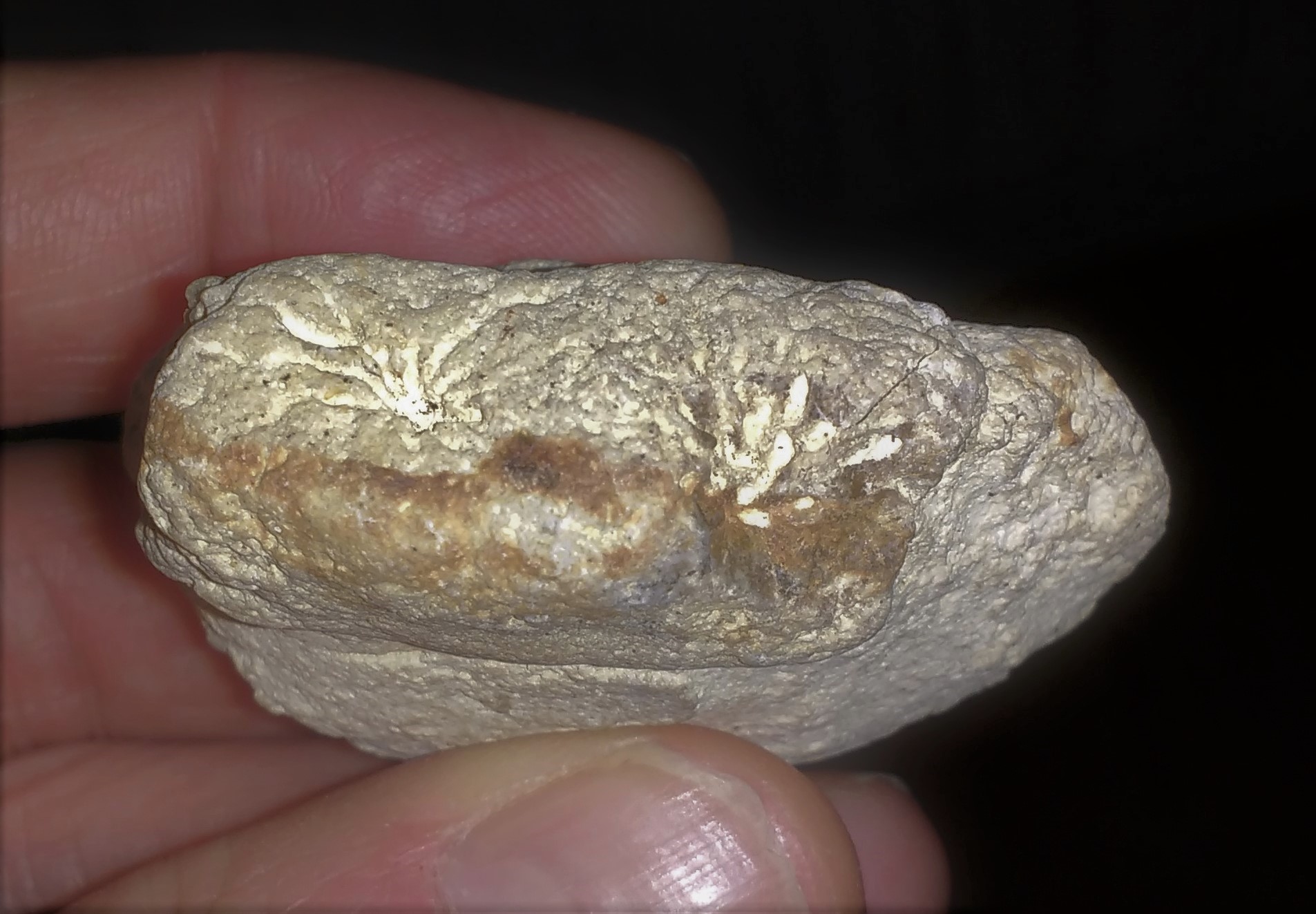 Mijn meest interessante (zeker niet de mooiste) was een eigenlijk onooglijk overblijfsel van (volgens mij) Placonella perforata; een megamorine spons, dus familie van de bekende Doryderma uit het WWW-gebied. Ooit in 1826 al eens beschreven als Achilleum tuberosum door Goldfuss in zijn Petrefacta Germania en later uit de Jura (!) door Hinde in 1883.