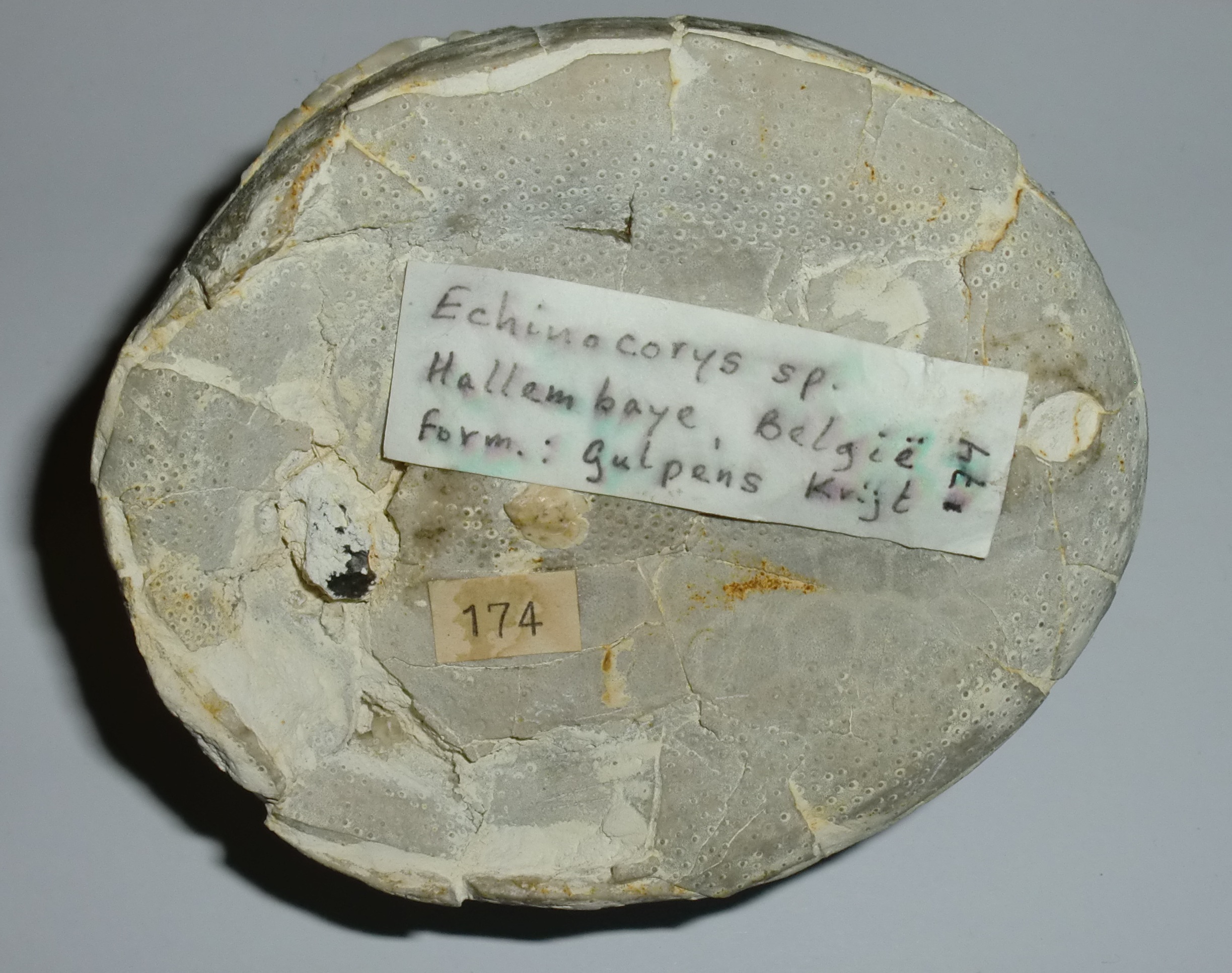 Er is een verscheidenheid aan taxonomische concepten in de omloop, maar ik zou ze lumpen tot Echinocorys ex gr. scutata. Als je Jagt 2000 volgt kom je waarschijnlijk uit bij Echinocorys gr. conoidea
