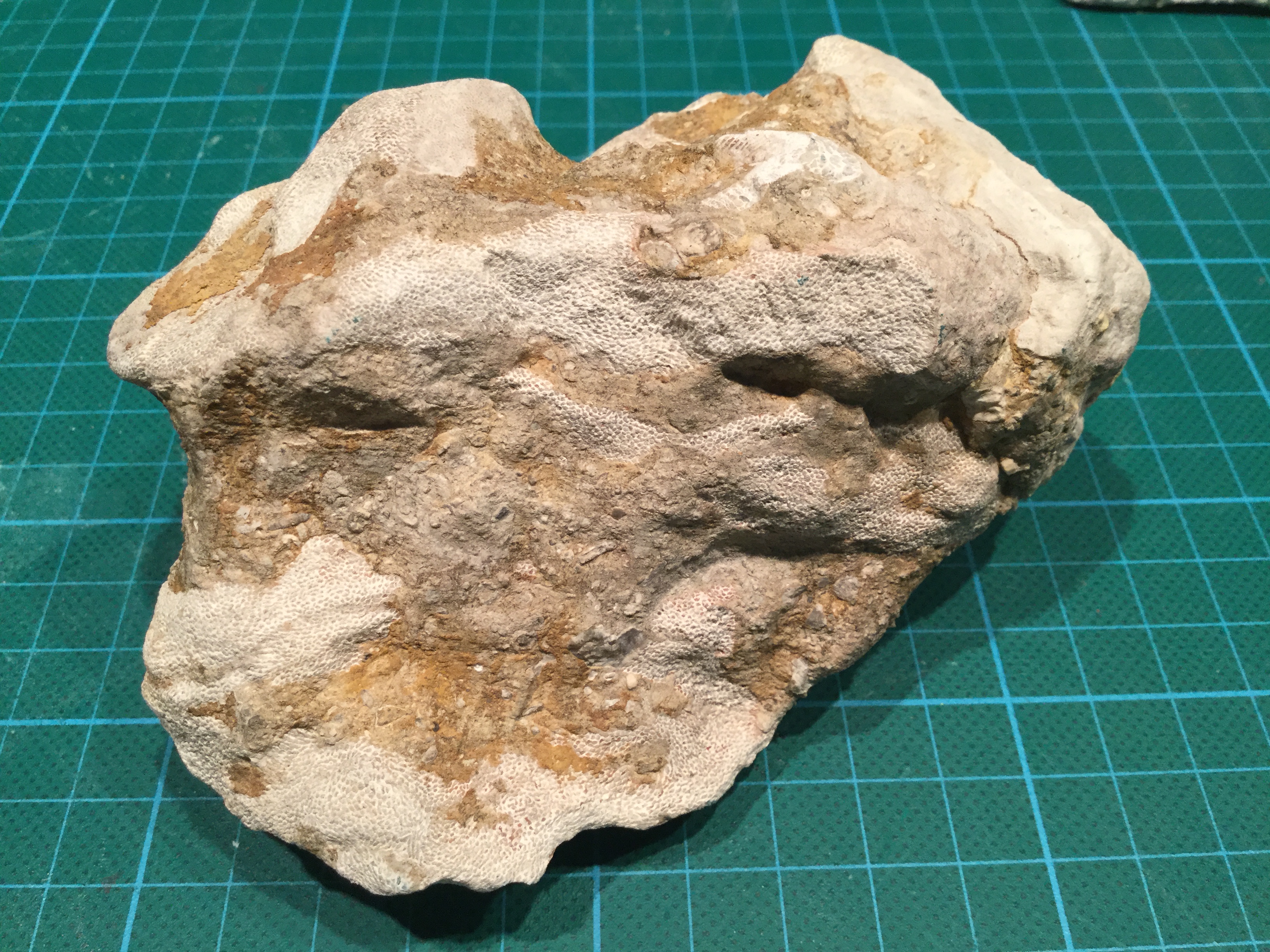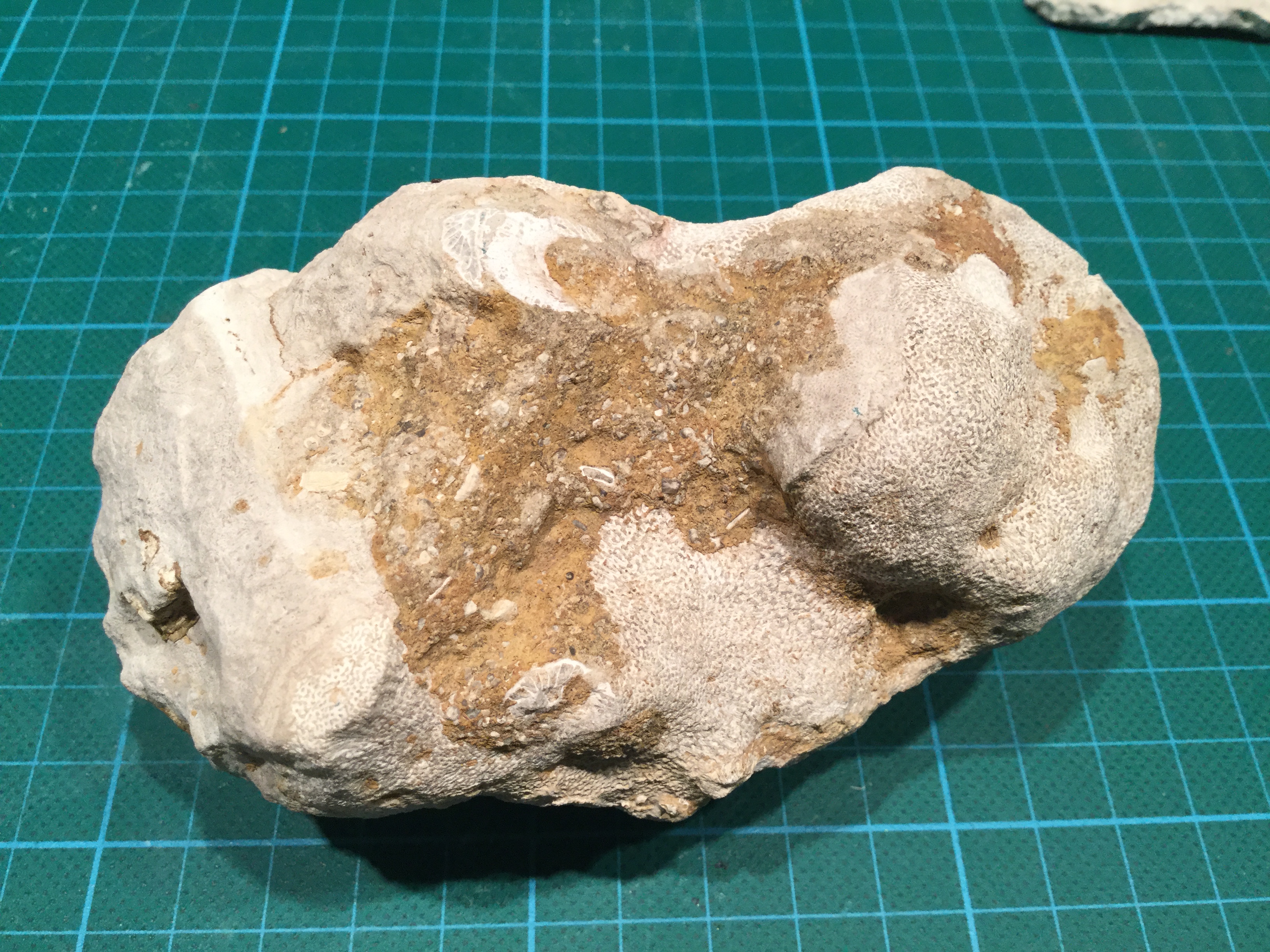 Hier denk ik ook aan subalveolites. Ik weet niet goed of het 1 geheel is of een overkorsting (misschien op een stromatopoor?)