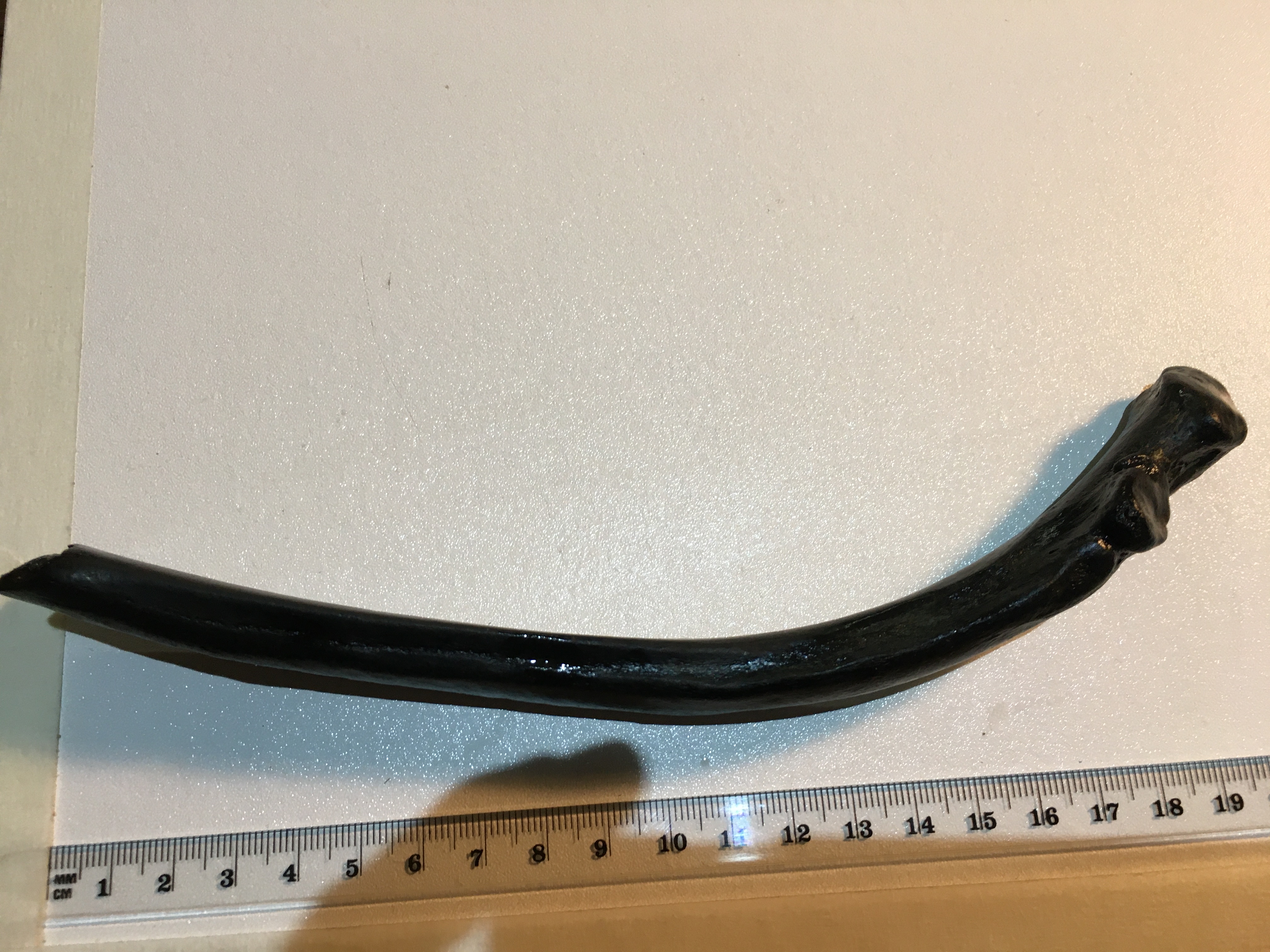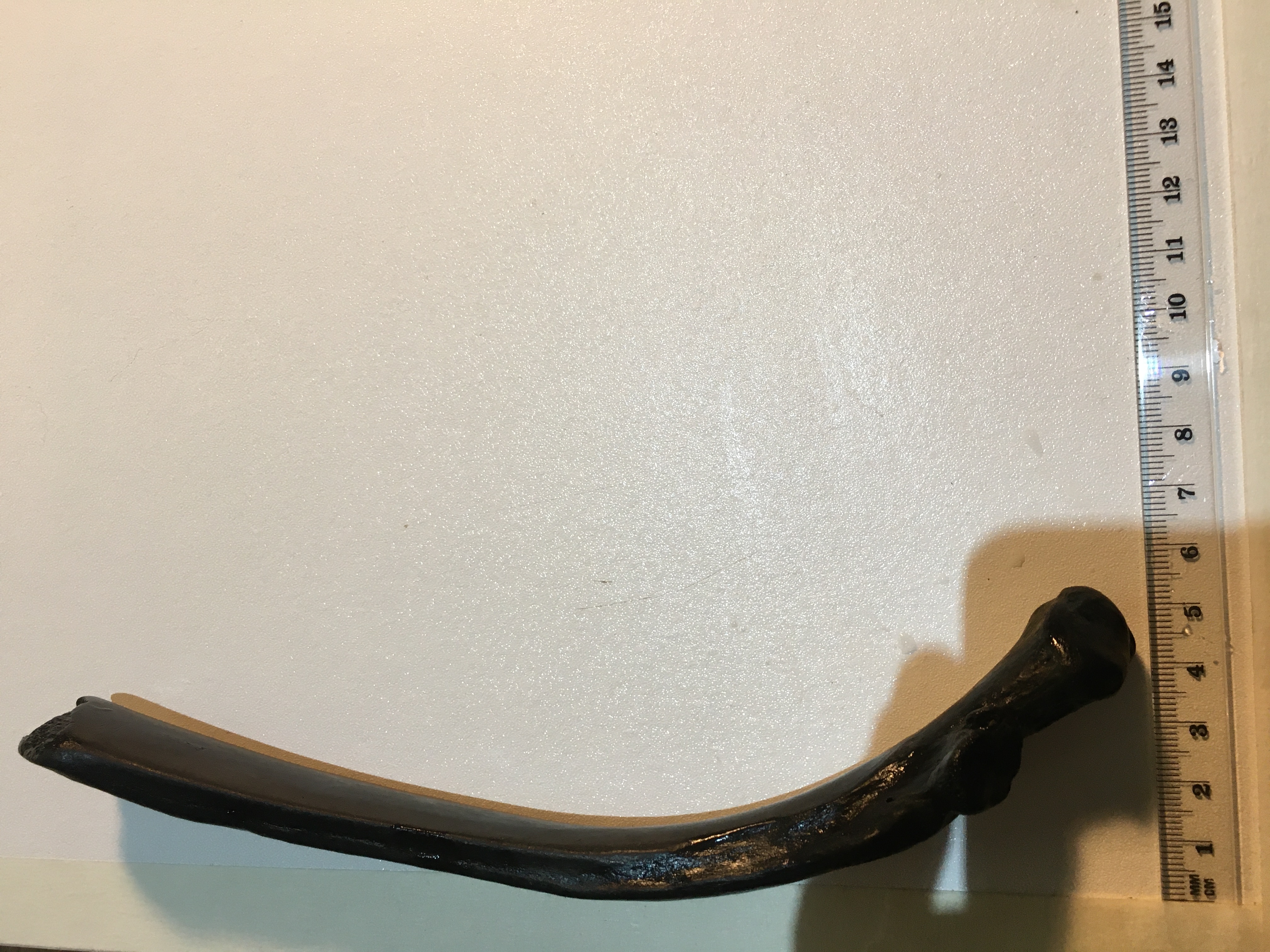 ik vond dit stuk van een rib met inkervingen aan de buitenkant, kan iemand bevestigen of deze door aaseters zijn aangebracht of ingekerfd werden tijdens het slachten?