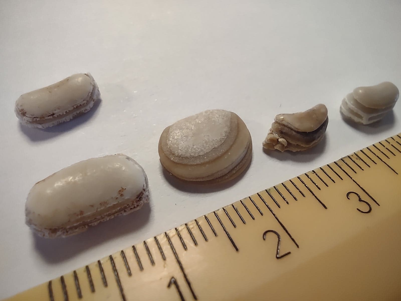 ik denk niet dat de objecten op de eerste twee foto's tanden zijn. Wat het wel is zou