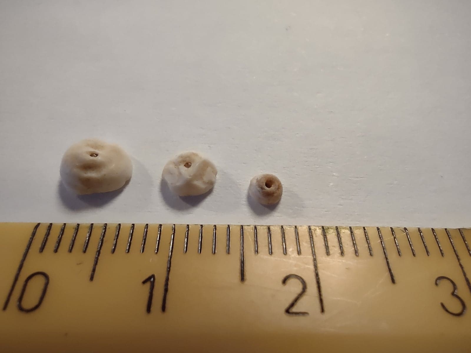 De objecten op de laatste foto zouden tanden van Phyllodus, een beenvis, kunnen zijn.
