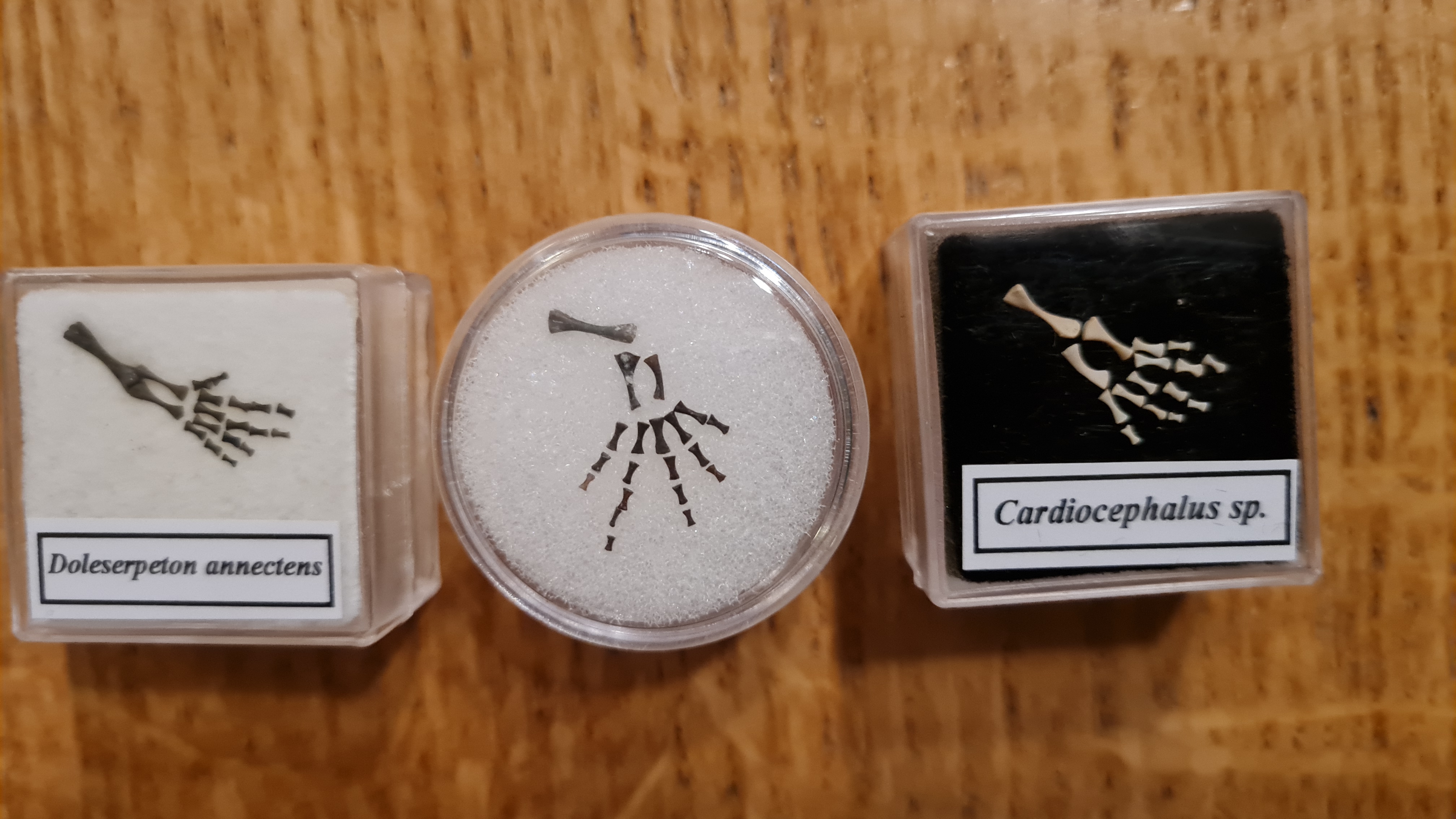 Re: 3x voet met onderbeen van Cardiocephalus en Doleserpeton annectens