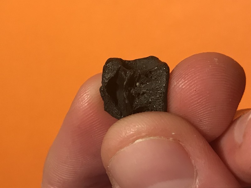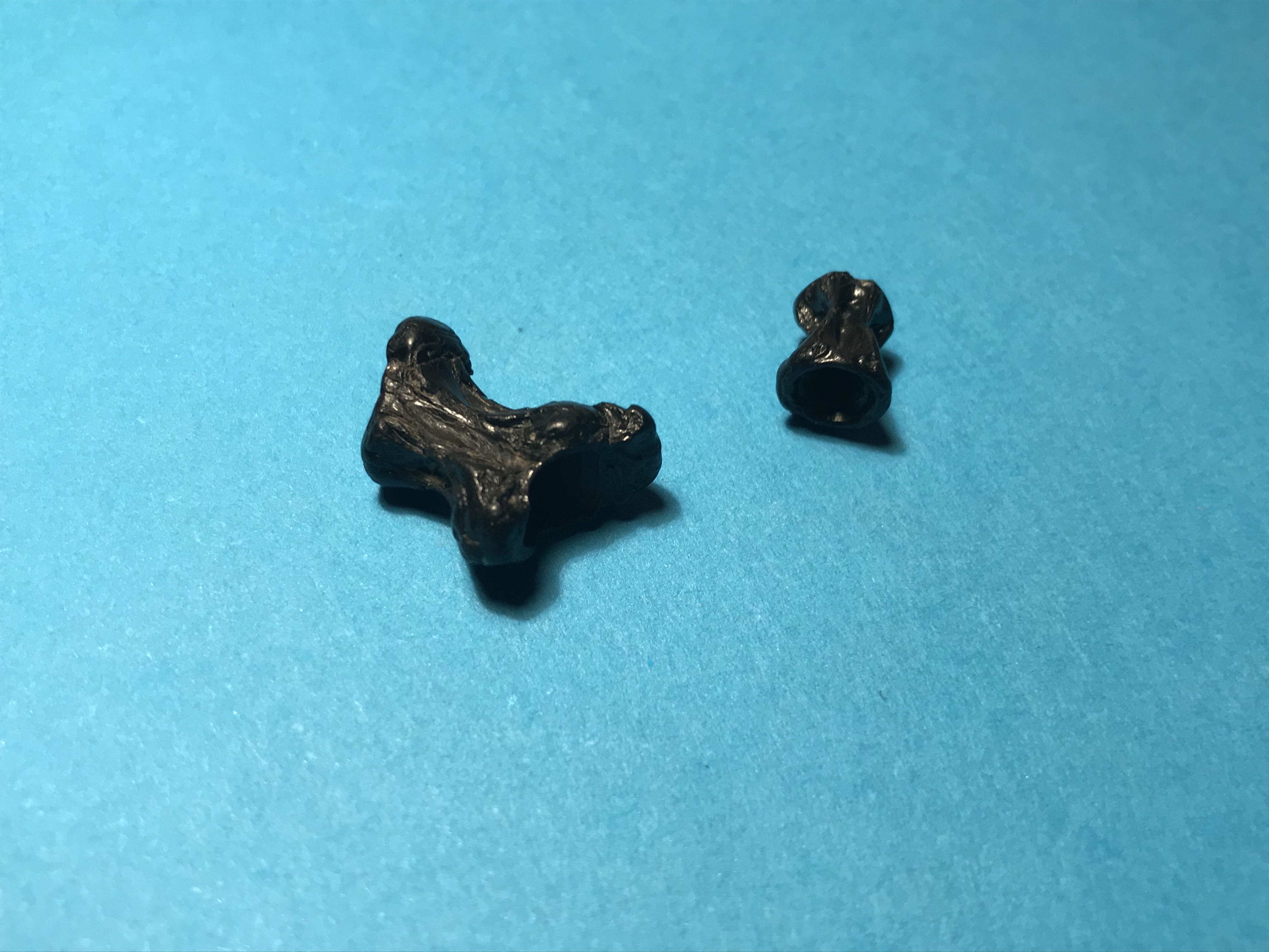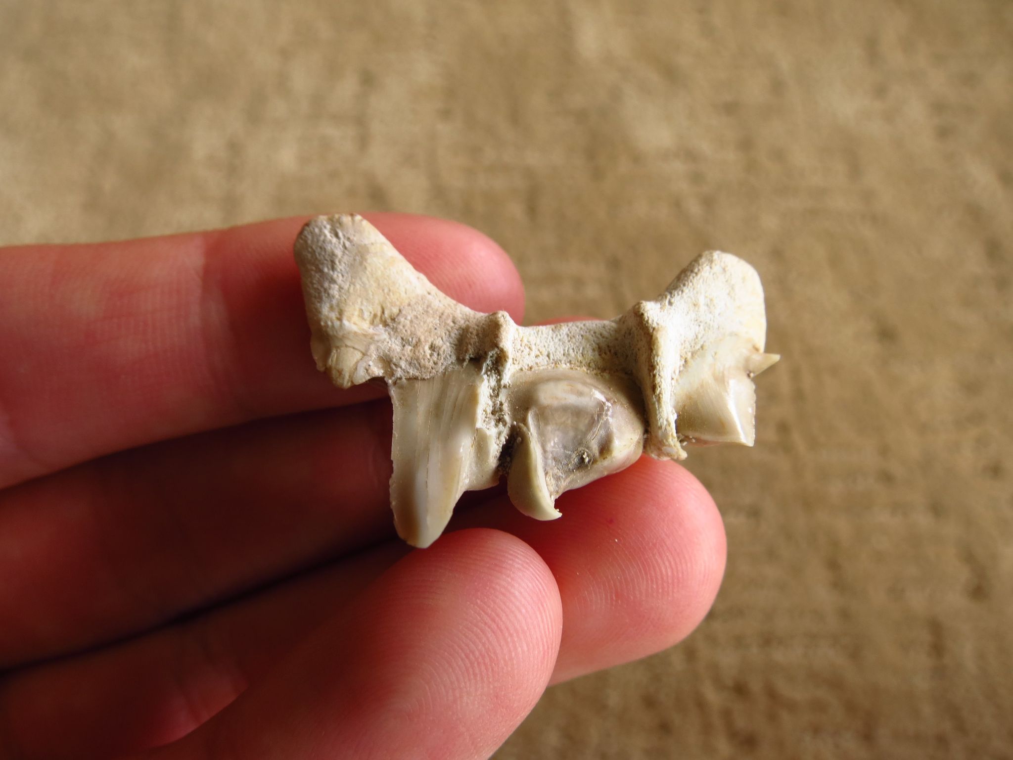 Hierbij m’n andere viswervel. Deze is vervormd en er is een andere wervel bij aangegroeid. Het leek me toch geen fijn leven als een van je wervels zo is vergroeid, ook omdat je bewegelijkheid dan wordt beïnvloed lijkt me. Ik durf ook geen zekere uitspraken te doen over de soort omdat deze zo vervormd is maar ik vermoed een kabeljauwachtige.