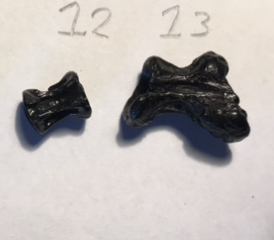Ik heb 2 melanogrammus aeglefinius werveltjes met hyperostose( extra veel botaangroei).deze zijn kenmerkend aan de zandloper vorm en dat ze heel erg gerold zijn. En nog een andere vissenwervel waar ik nog even goed naar moet kijken die vergroeid is( zal ik later dan ook hier posten).