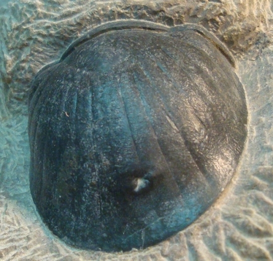 Zoals te zien is op de tweede foto, is het pygidium van dit specimen doorboord geweest, maar toch nadien geheeld.