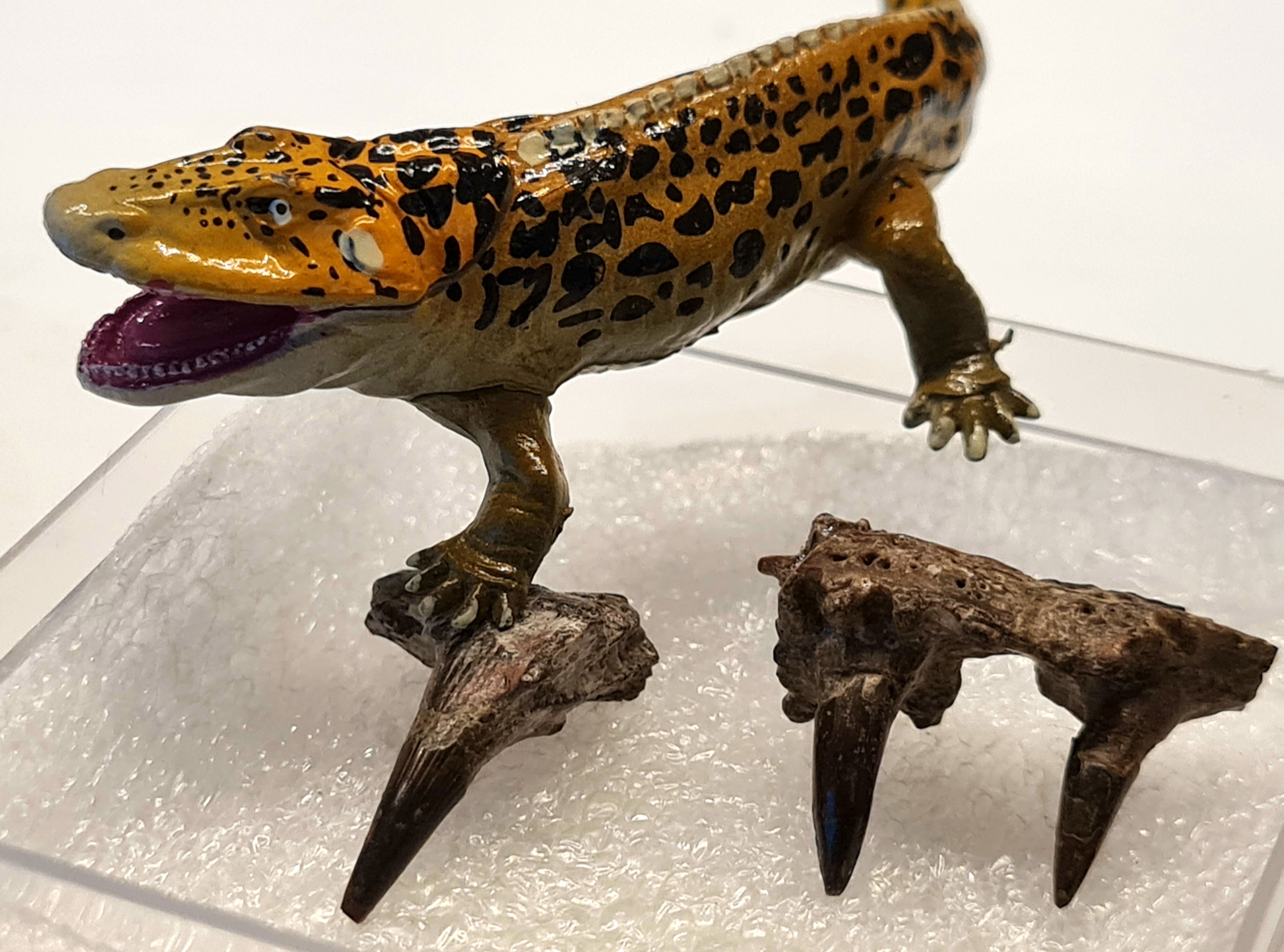 Leuk topic! Ik heb een aantal fossiele (kwastvinnige) vissen uit het Devoon van Schotland.Het is interessant te zien hoe visachtig die Apateon hierboven er nog uitziet.