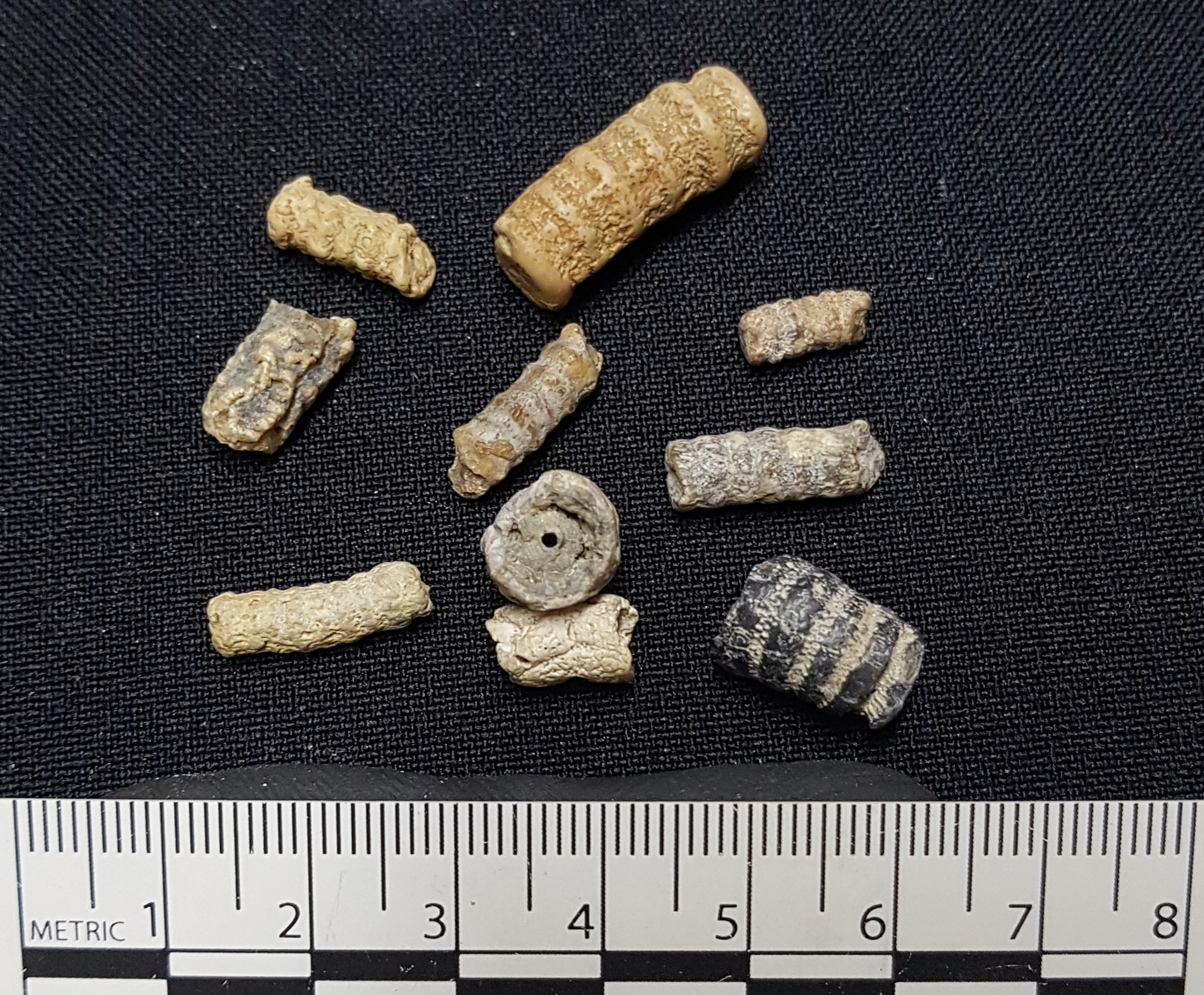 Deze verkiezelde (chalcedoon) stengelleden houd ik op Boven-Krijt.