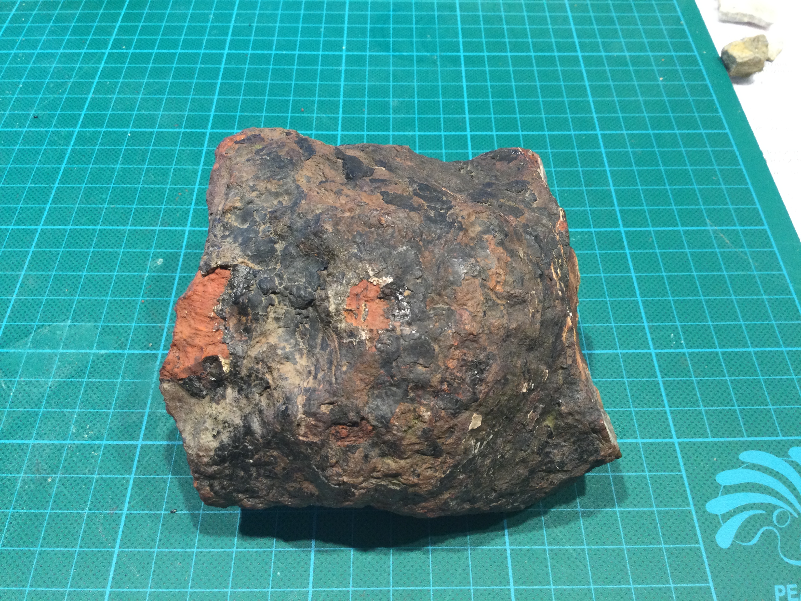 Ook heb ik een vraag over de bruine lijnen die op 2 exemplaren te zien zijn. Zijn deze lijnen typisch bij stigmaria? Of betreft het slechts een natuurverschijnsel dat bij gesteenten voorkomt? Het lijkt steeds bij die rode voor te komen. Bij 1 stukje kan je zien (inzoomen) dat er precies een spleetje tussen de lijntjes ontstaat met iets tussen.