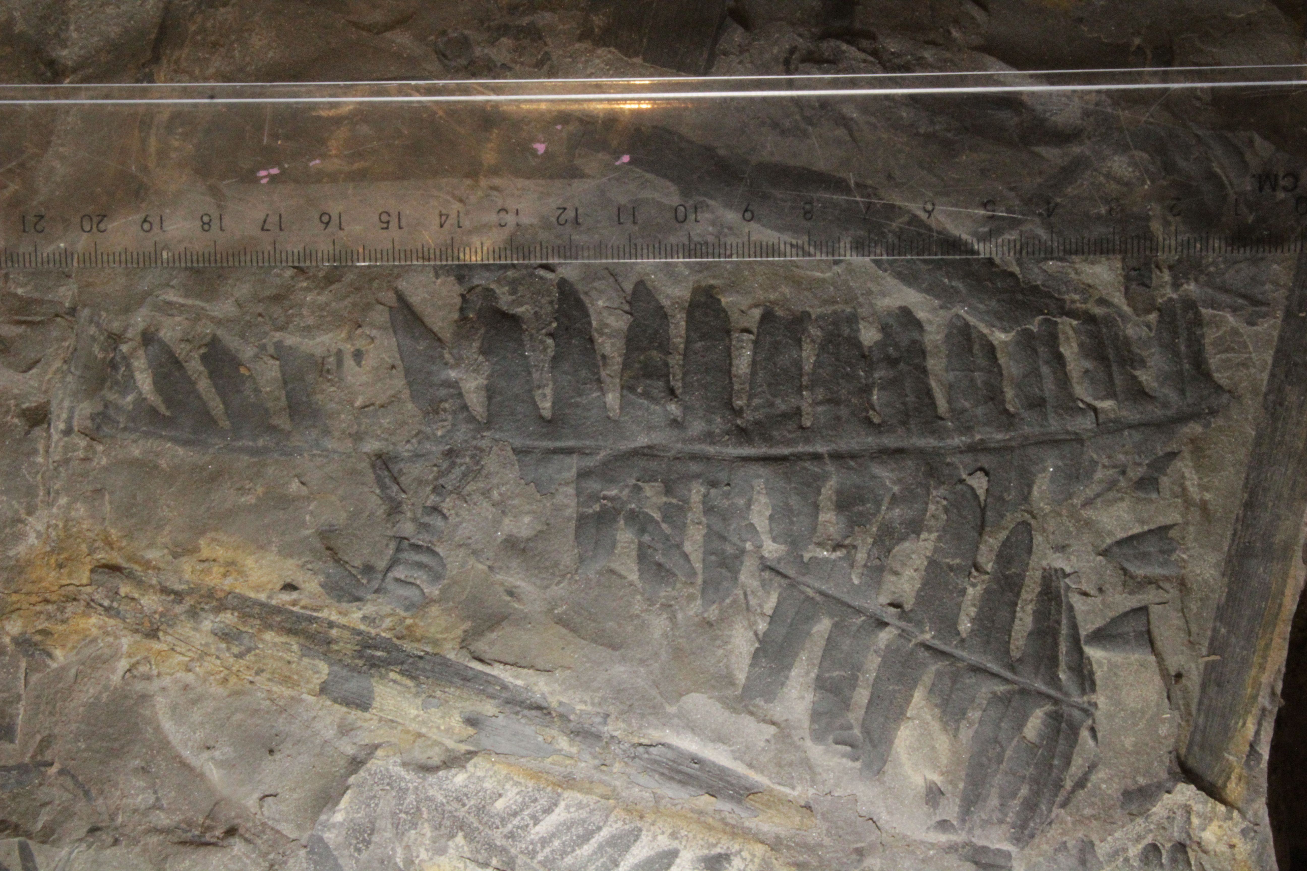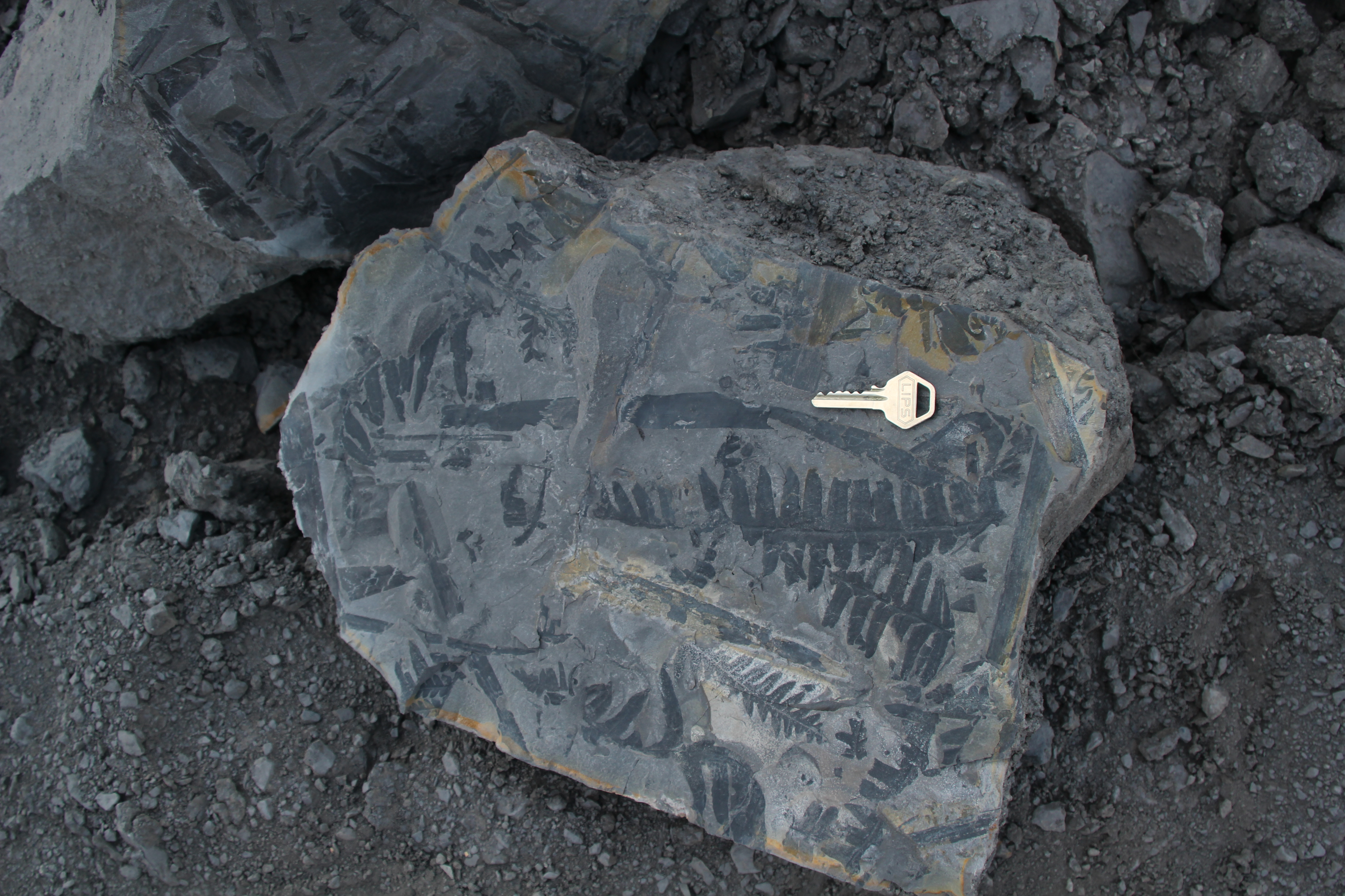 Op foto 4 zie een helft van een bijna-hernia-steen met delen van een zeer grote lonchopteris rugosa. Normaal worden de bladeren maximaal 3,5 cm hier zijn enkele 4 cm groot.